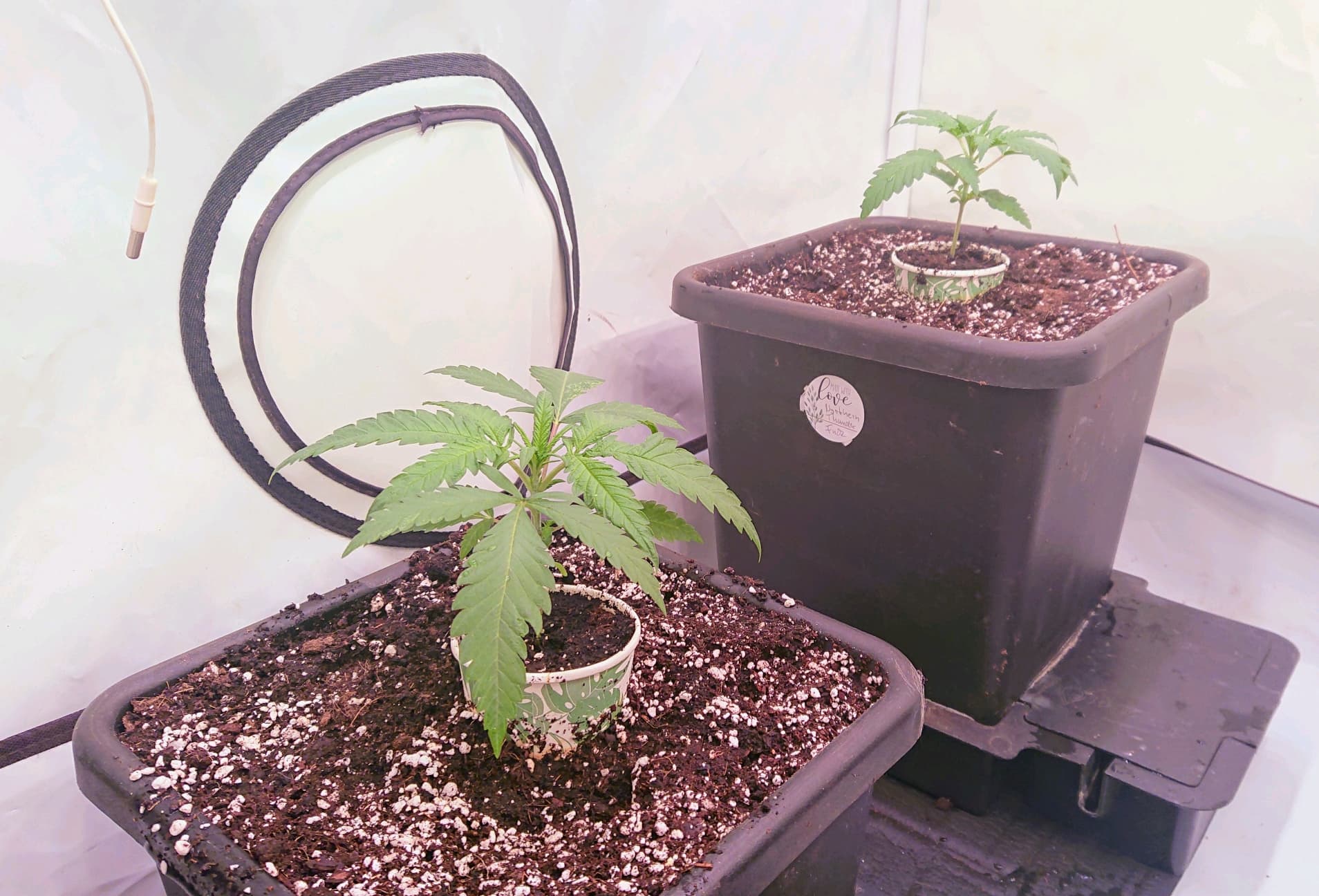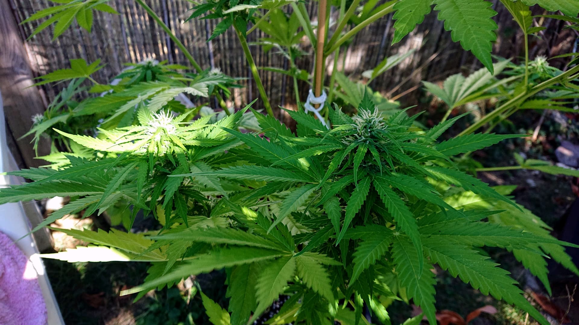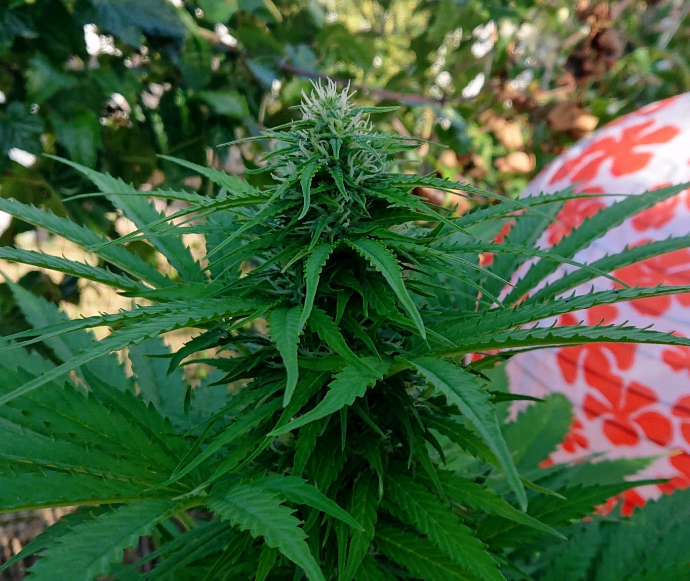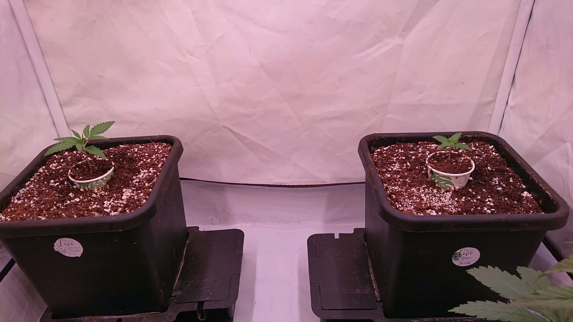 Hier die Mimosa Cake, ist noch gut in die höhe geschoĂen und beginnt nun fleisig an zu budden. Wie man sieht funktioniert die Topf- in Topf Methode ganz gut und erspart der Autoflower dass umtopfen.