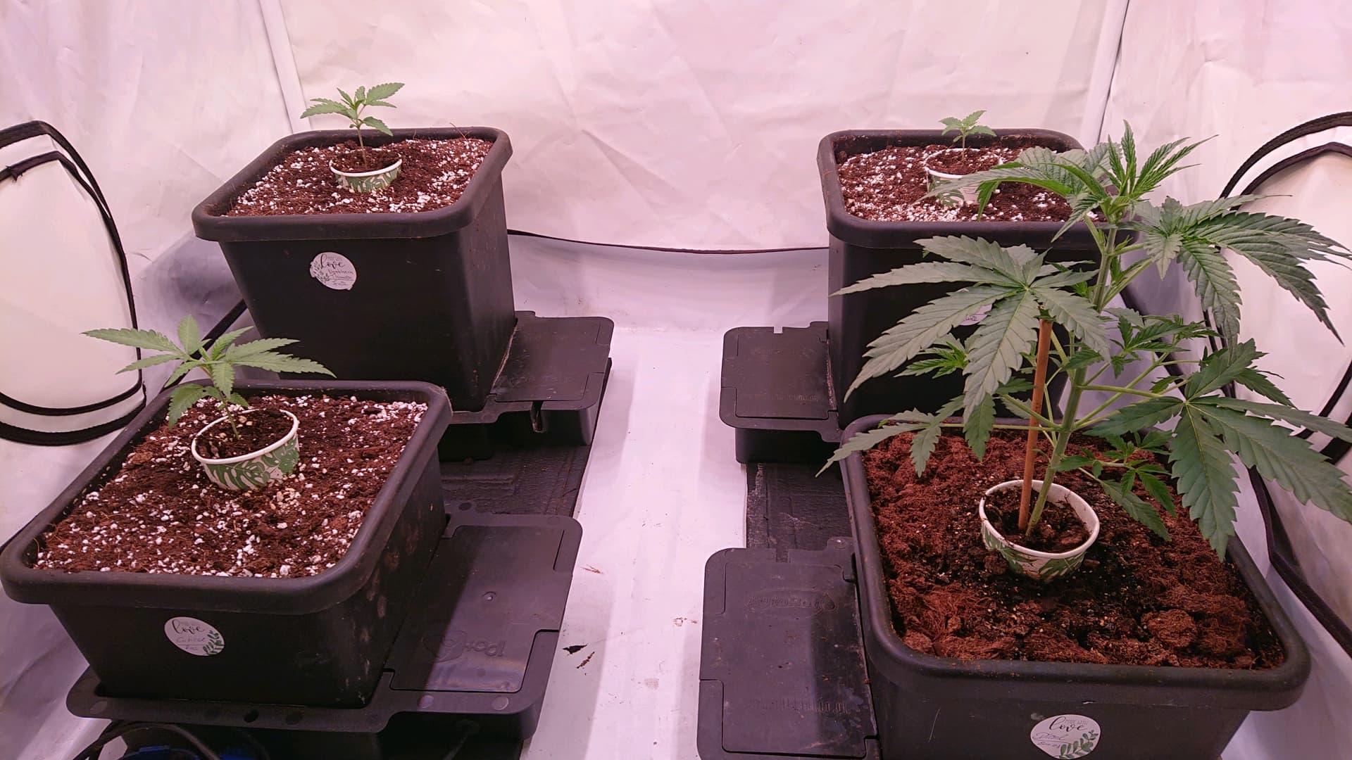 Kurzes Update. Die Pflanzen machen sich ganz gut. Die Diesel hat ordentlich Vorsprung vor ihren Schwestern aber ich beabsichtige sie zu toppen. Die anderen drei Pflanzen wachsen zufriedenstellend. Morgen werde ich die Schere an der Diesel schwingen, schnipp schnapp. Die Pflanzen werden morgen auch gewĂ€ssert und gedĂŒngt, innen wie auĂen. Die Outdoor Pflanzen gedeihen auch prĂ€chtig. Die Mimosa Cake von 420Fastbuds ist richtig steil gegangen in den letzten Wochen. Die Banana von Zamnesia steht auch ordentlich da. Fazinierend was aus dem totgegalubten, angeknabberten und zerzausten SĂ€mling geworden ist.