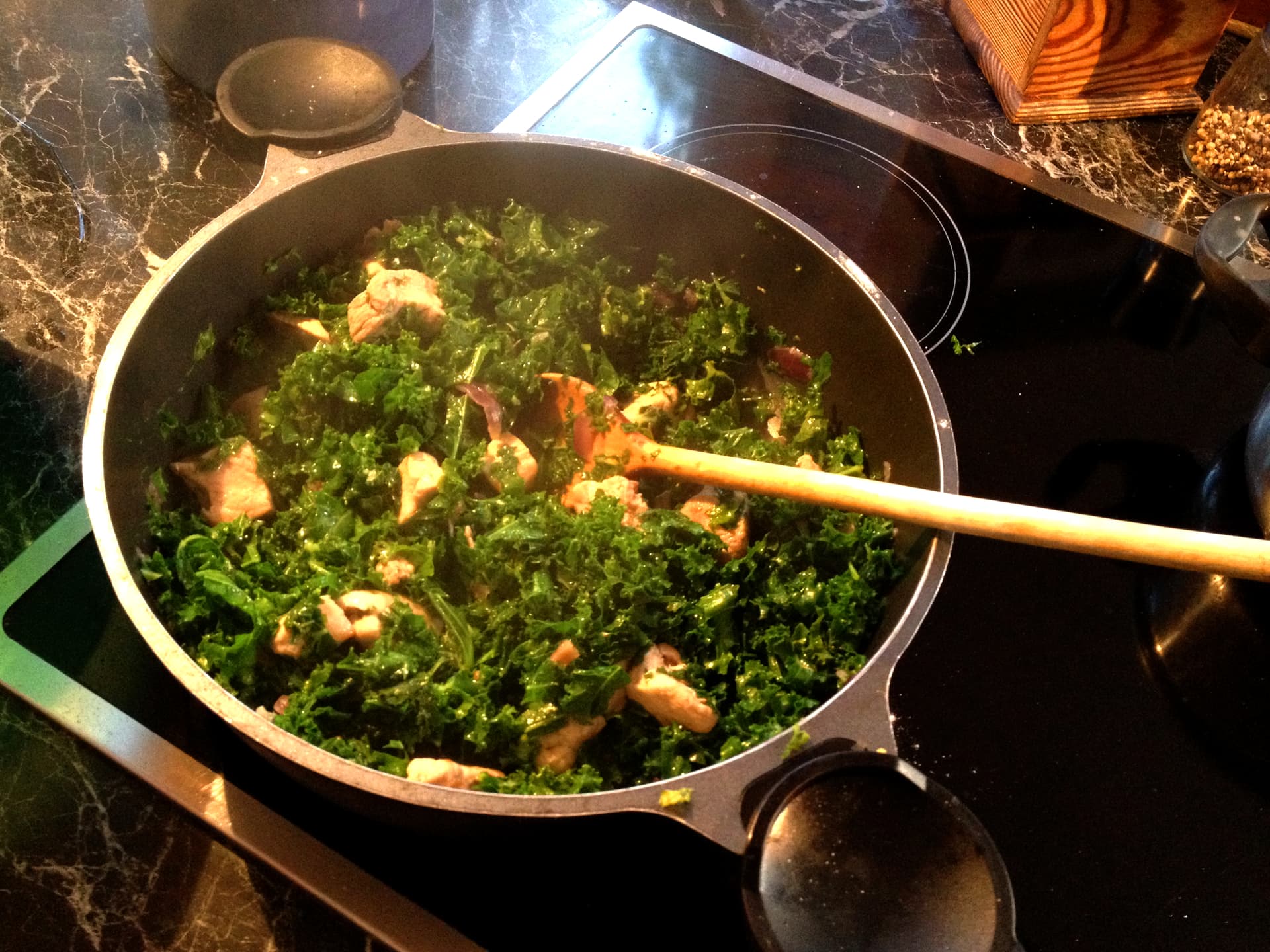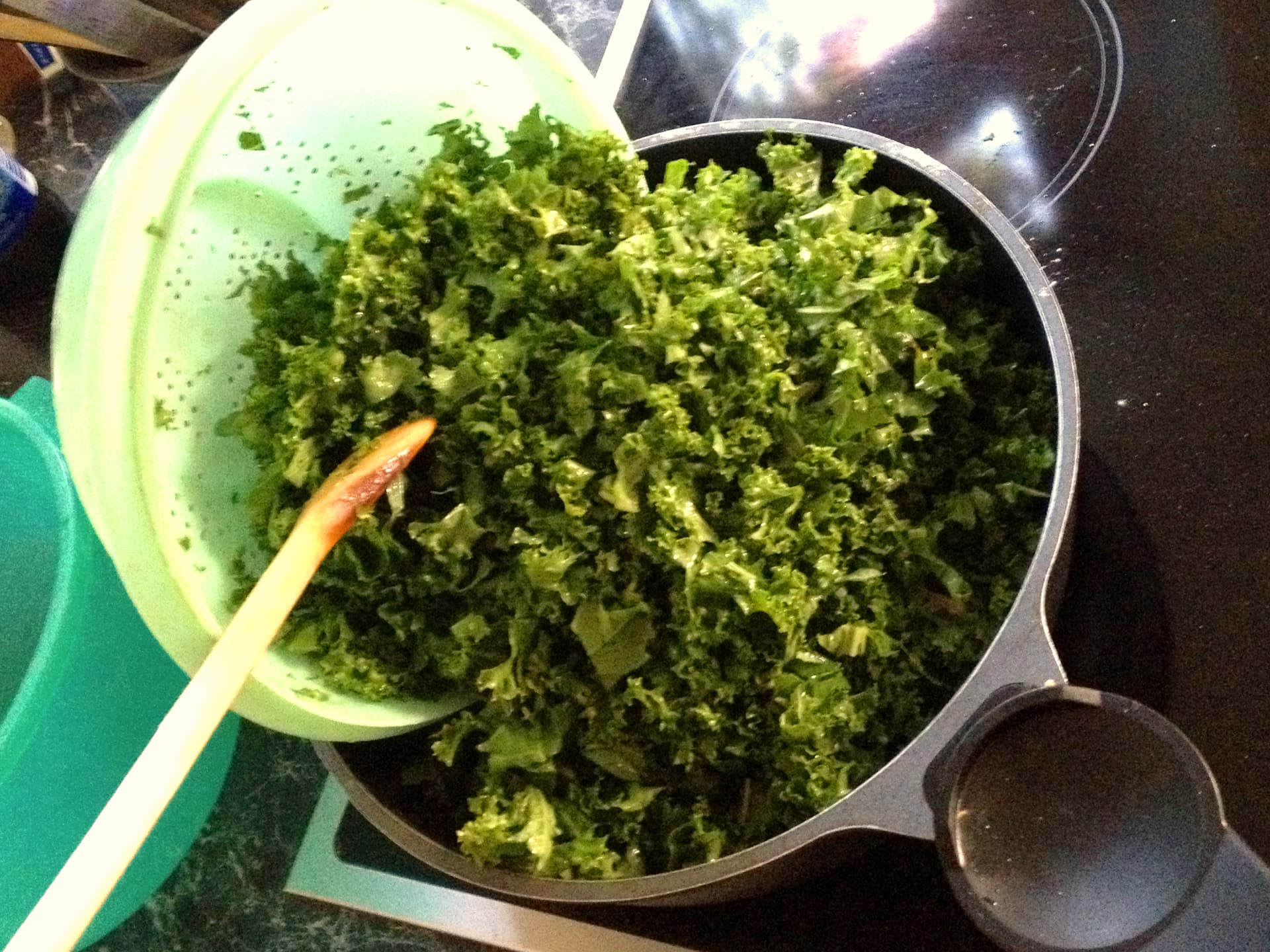 Beachtet, dass der Kohl am Anfang sehr voluminös ist – hab das mal wieder unterschätzt, hat gerade so gepasst. Man kann natürlich auch nen richtigen Topf nehmen.