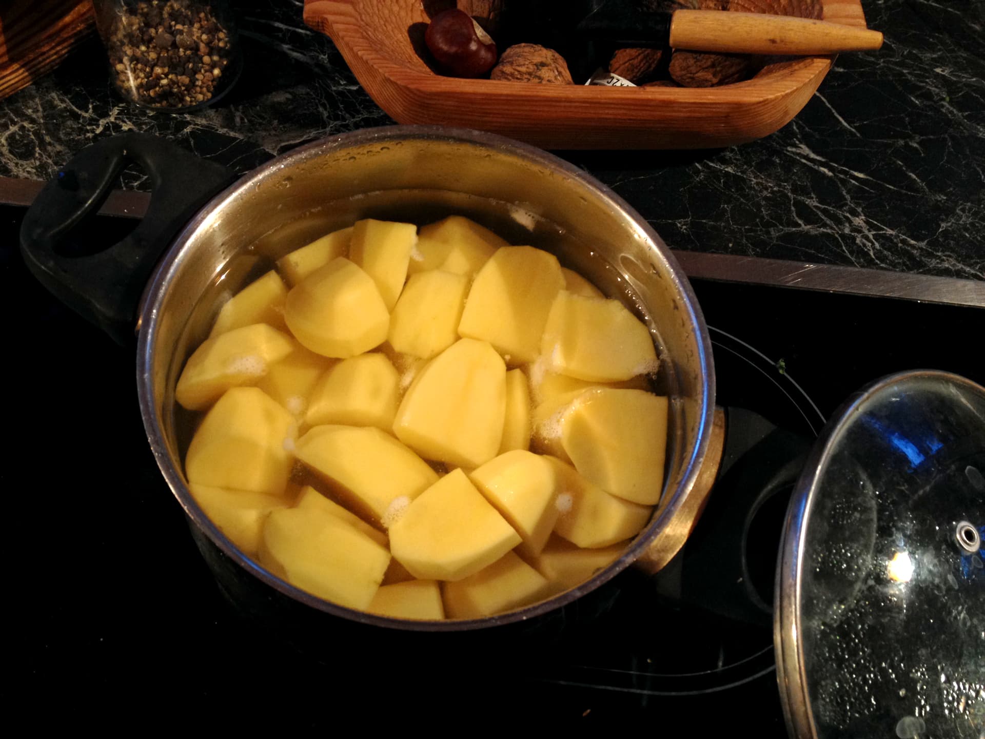 ca. 20 Minuten vor Ende der geplanten Garzeit die Salzkartoffeln kochen.