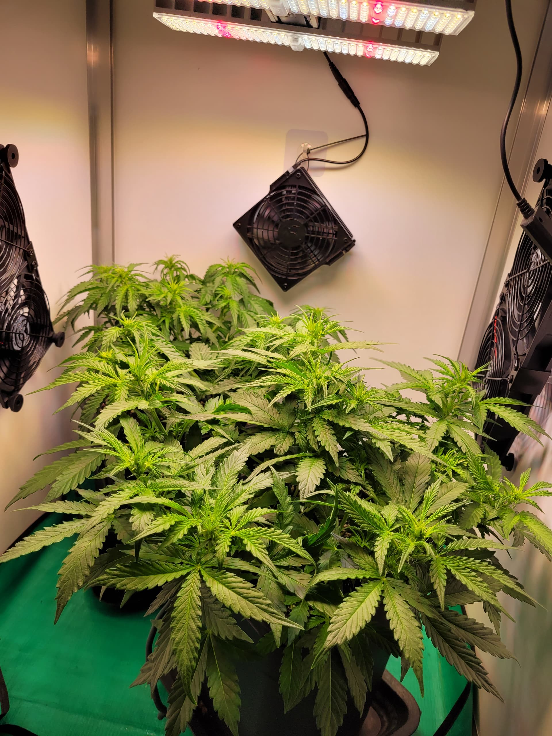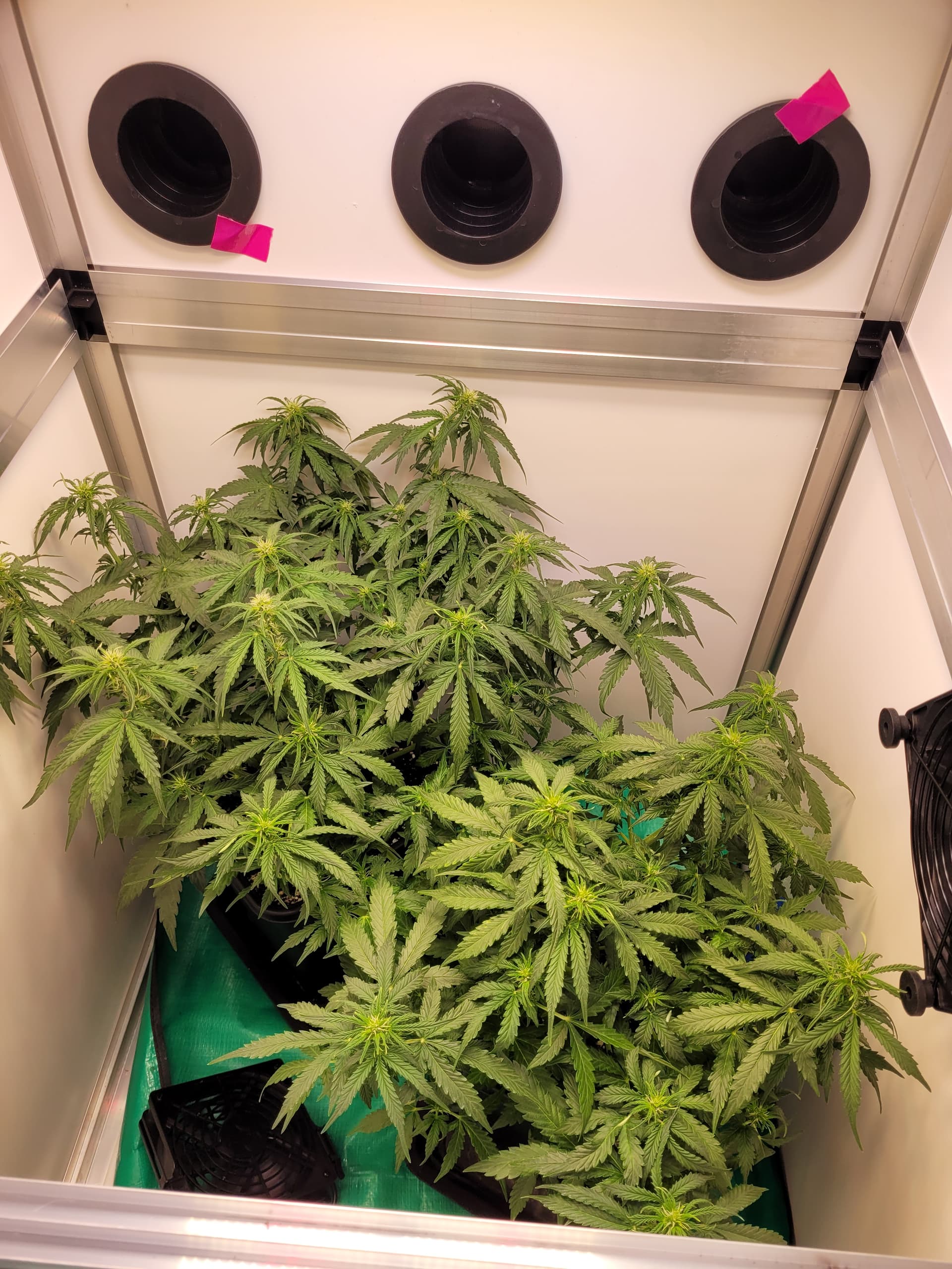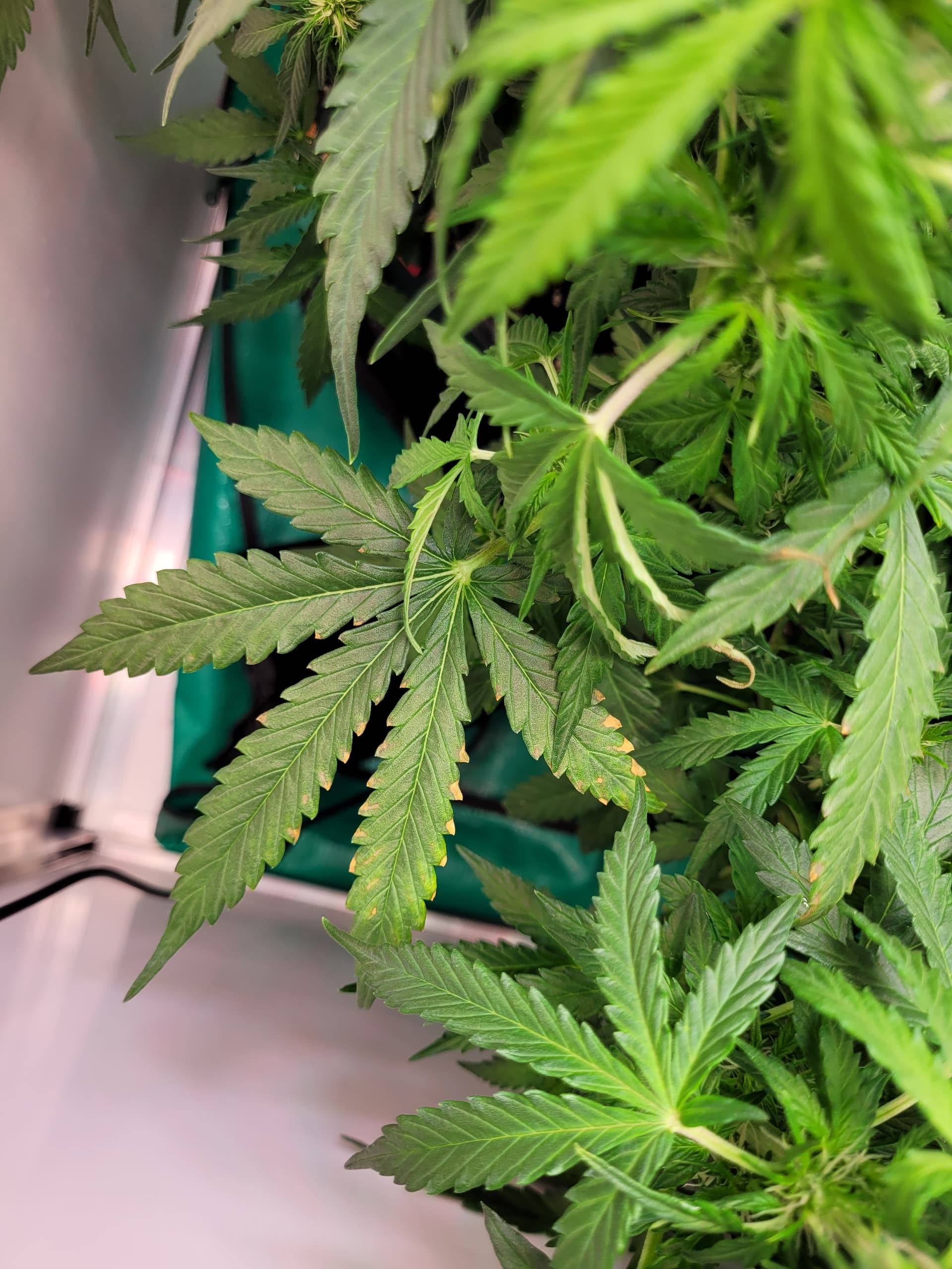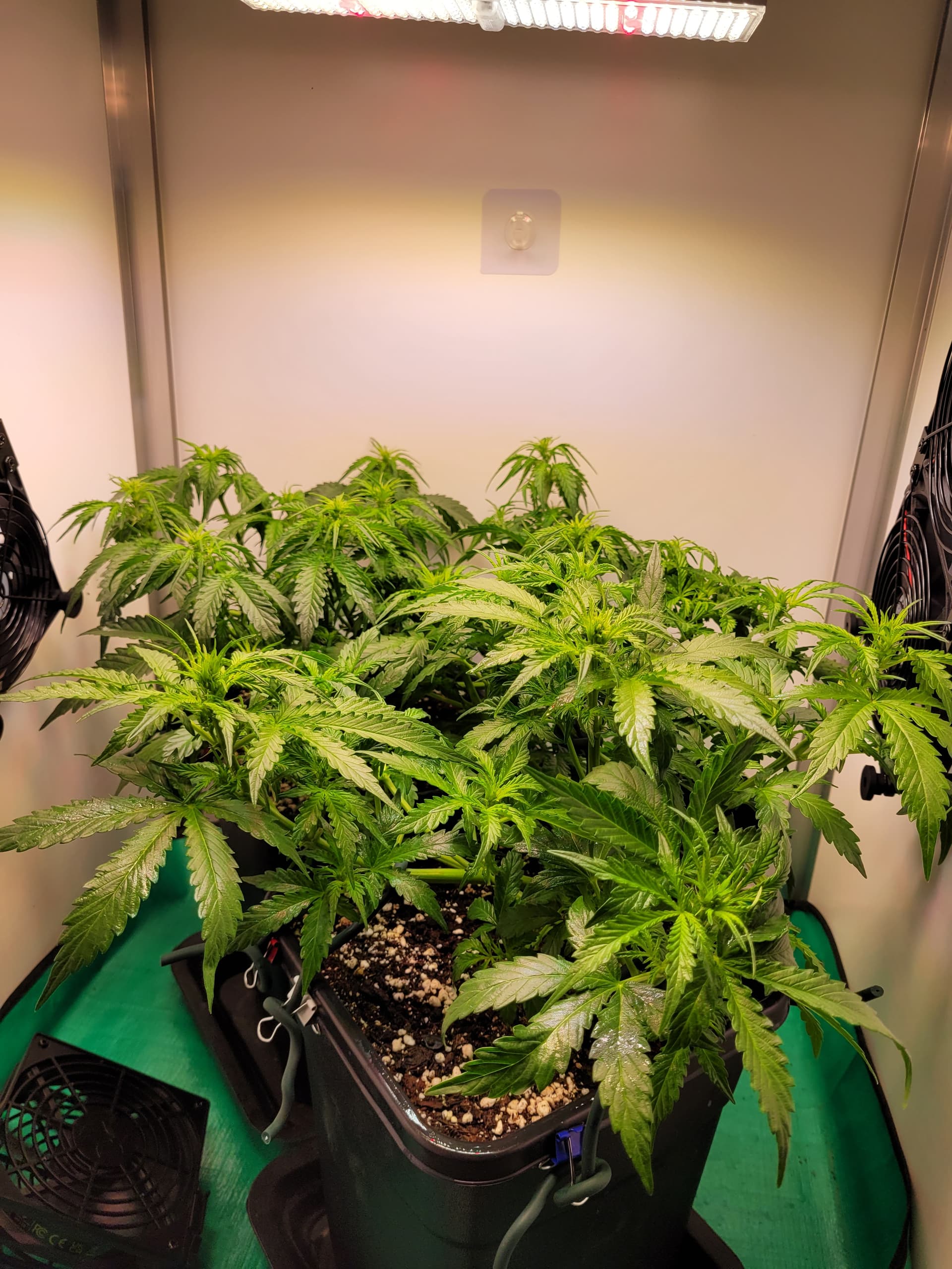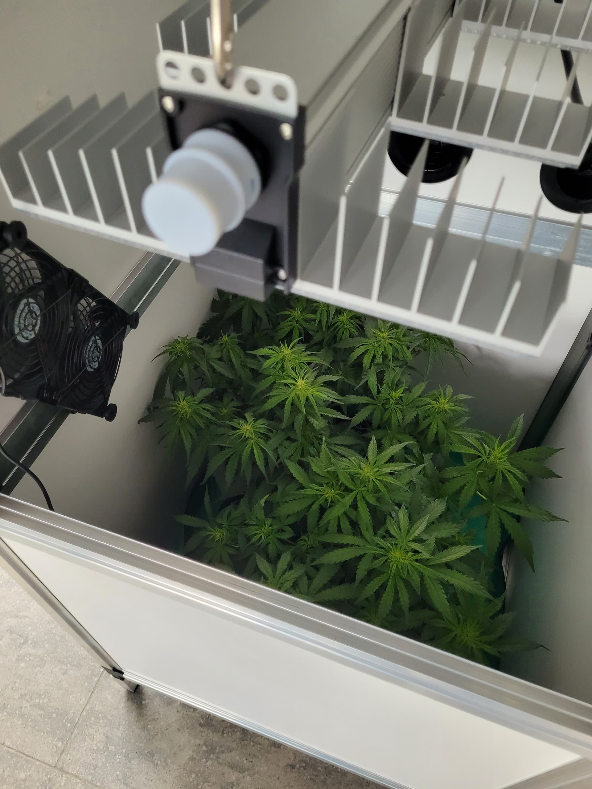 Weitere gelbe Blätter entfernen müssen. Die sommerliche Temperaturen machen sich in der Box bemerkbar, ist schwer unter 30C zu kommen.