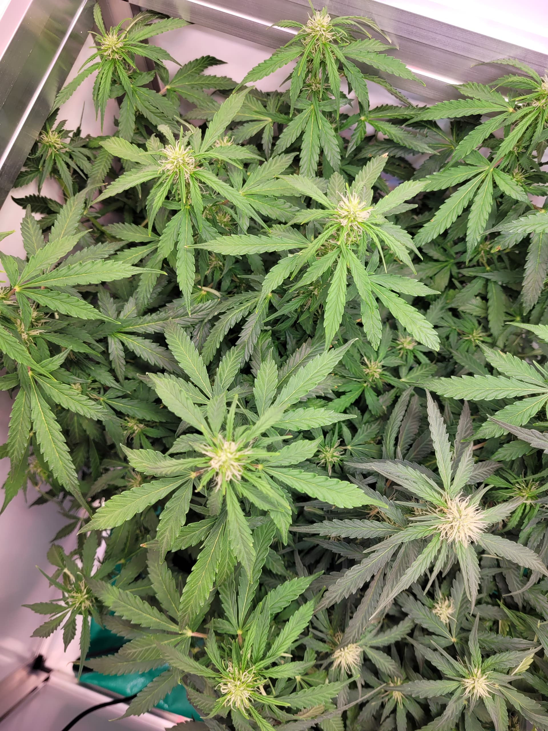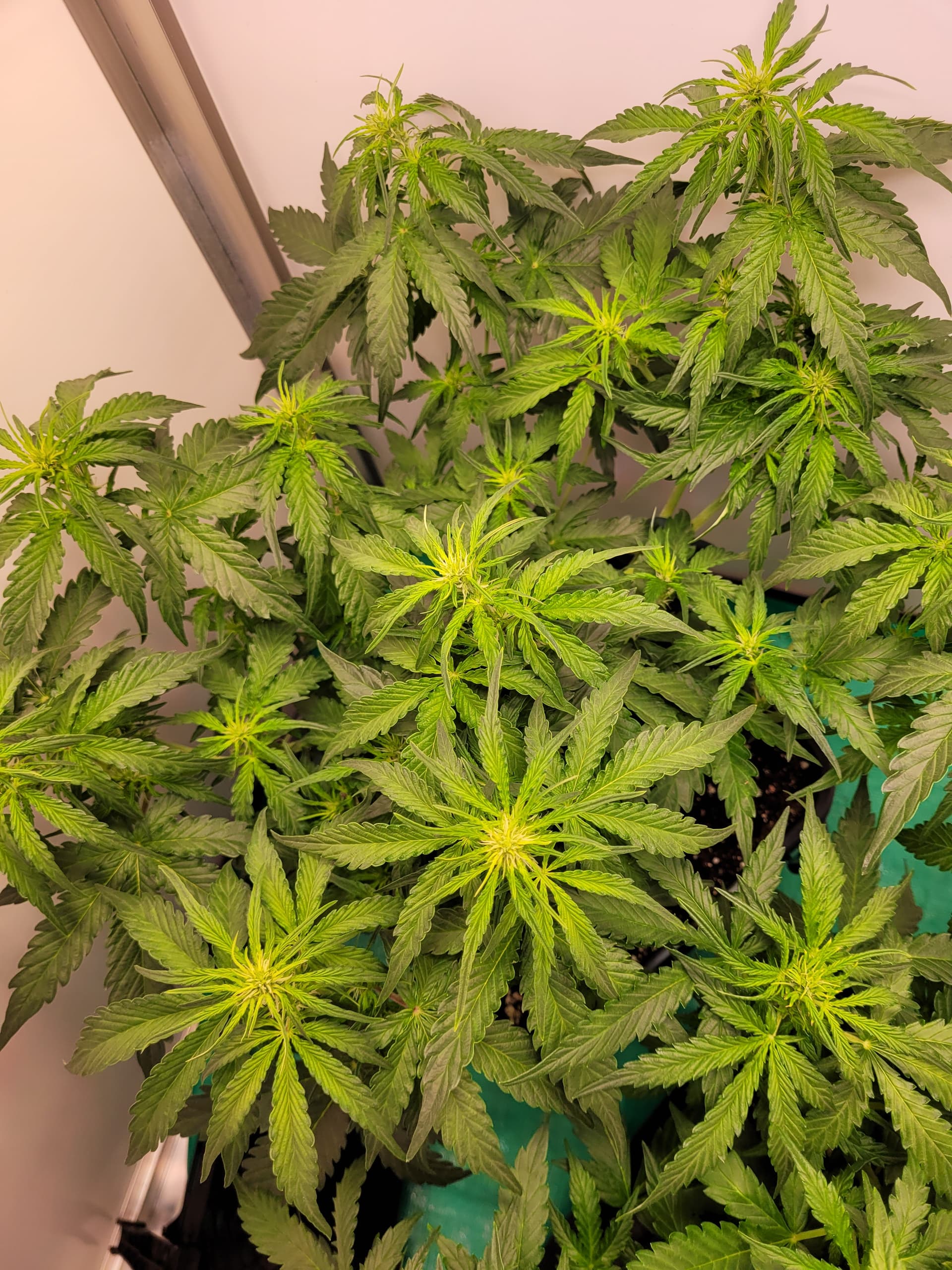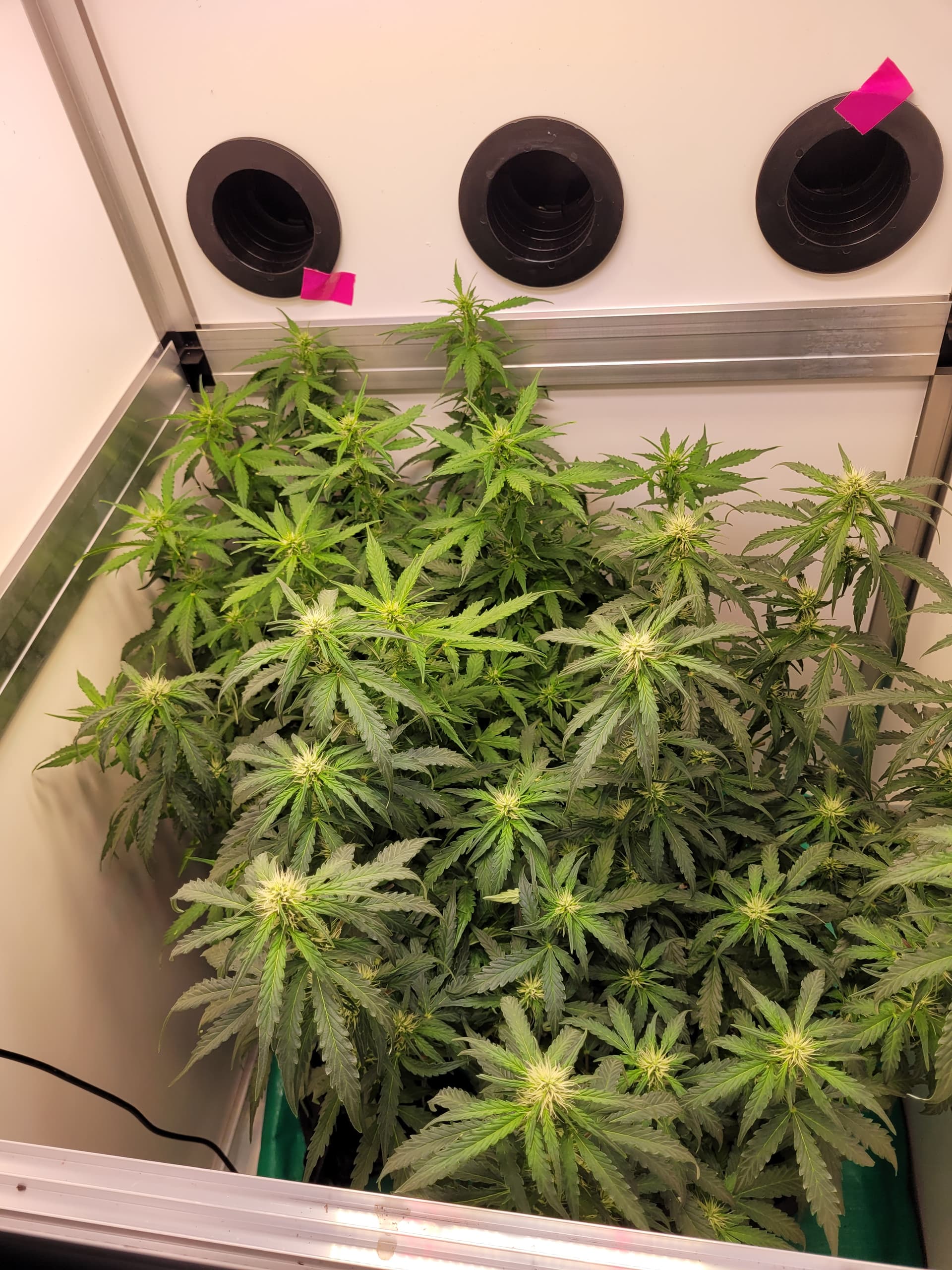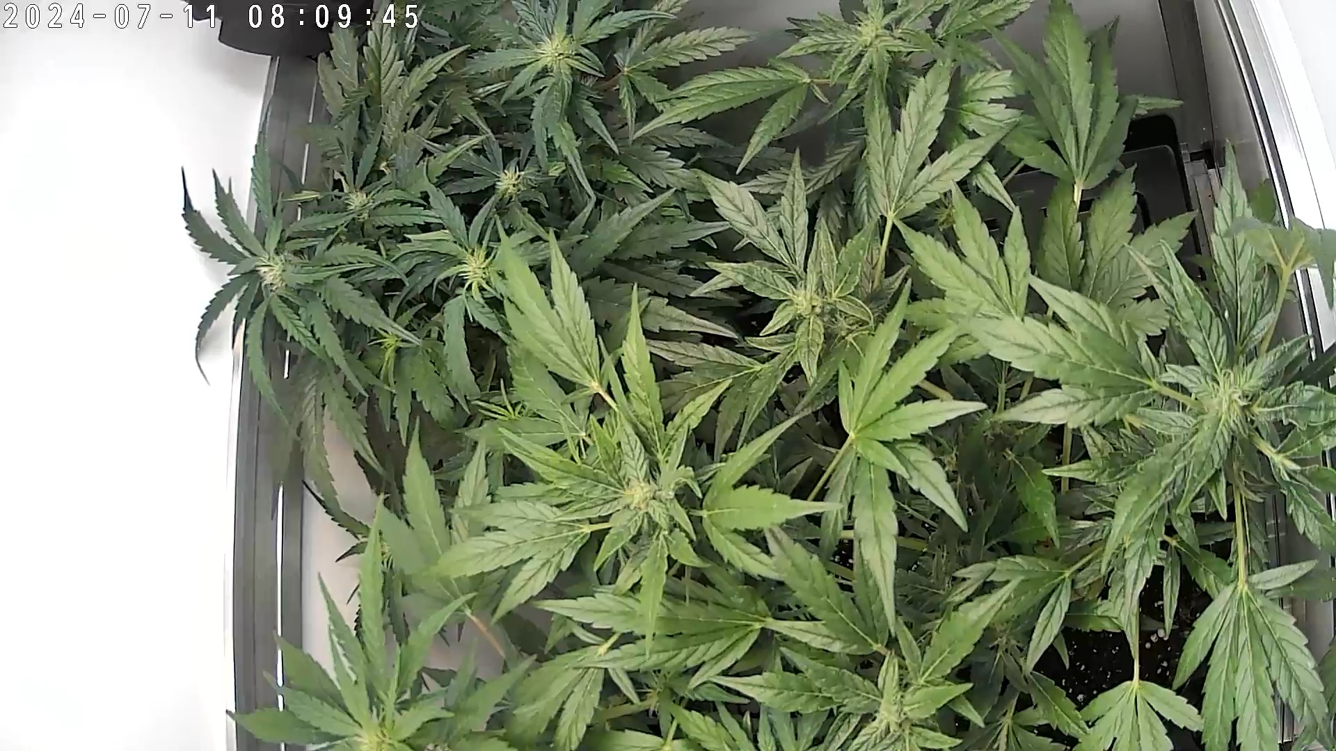 Weitere gelbe Blätter entfernen müssen. Die sommerliche Temperaturen machen sich in der Box bemerkbar, ist schwer unter 30C zu kommen.