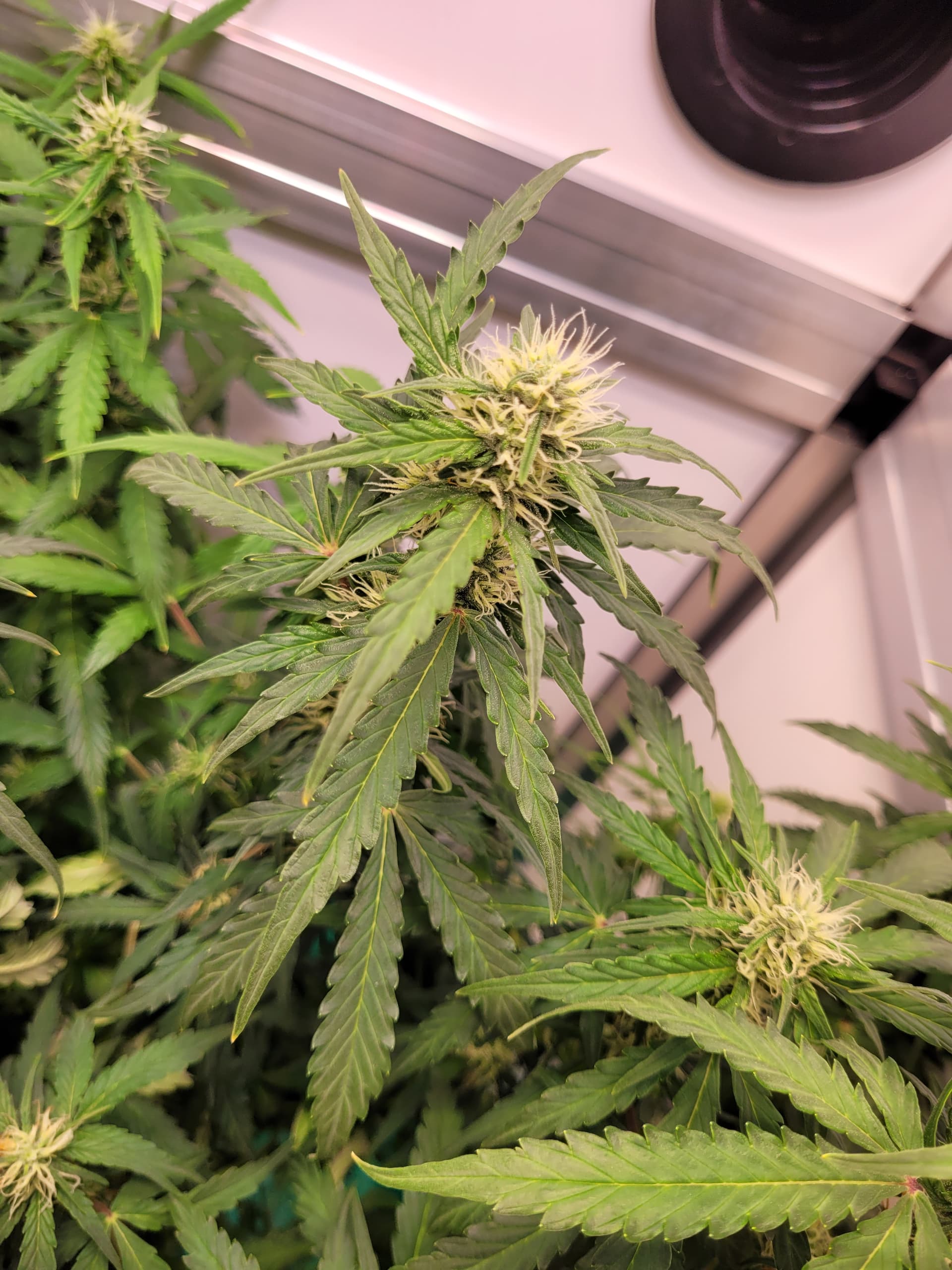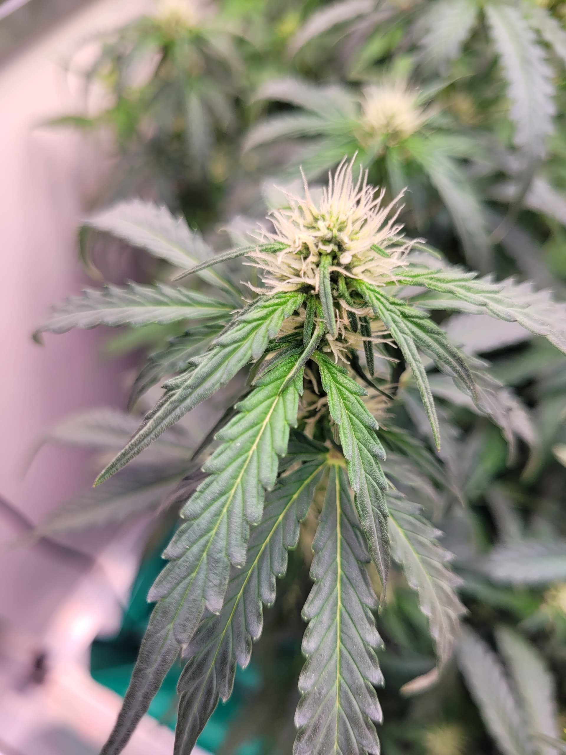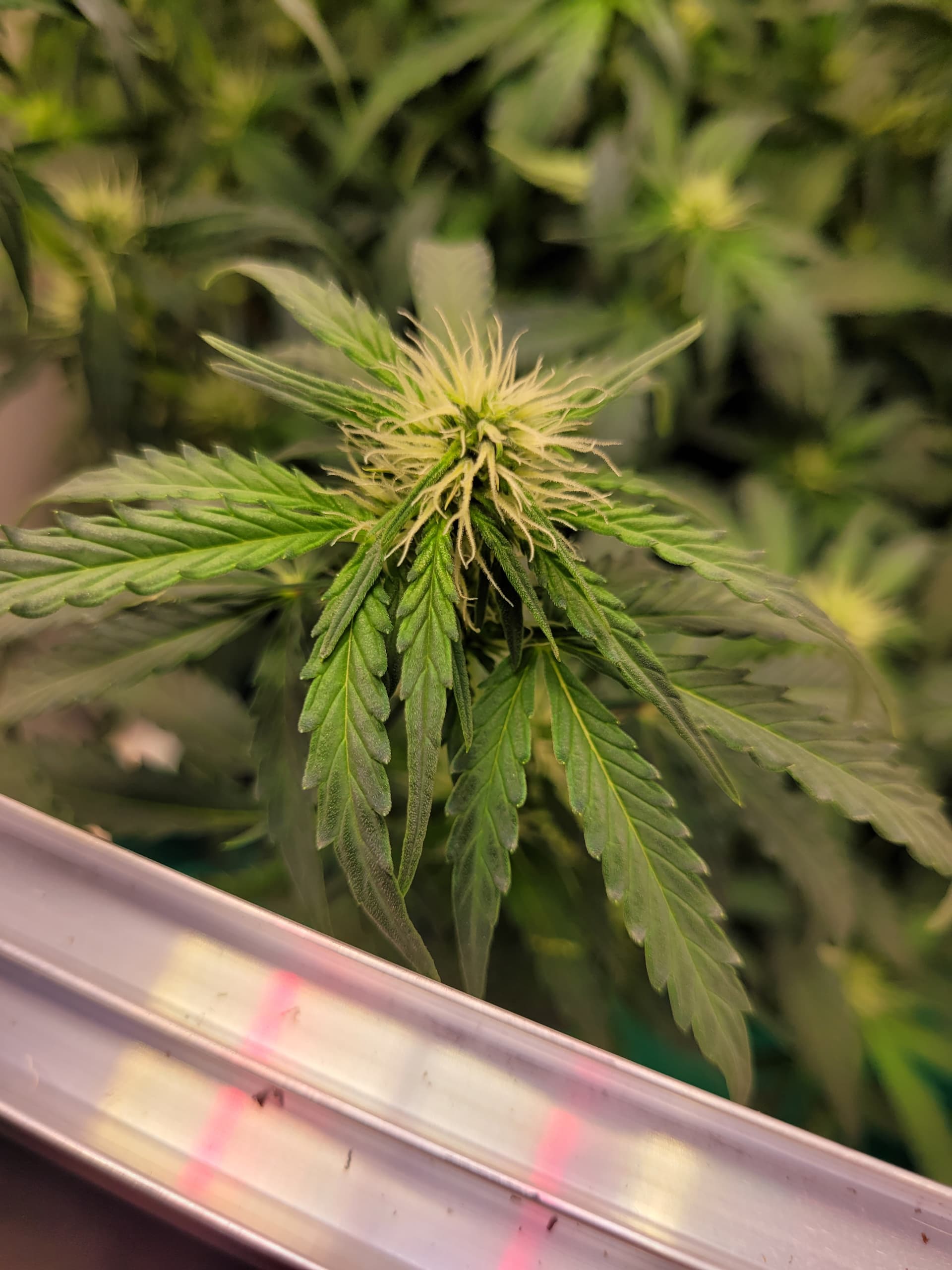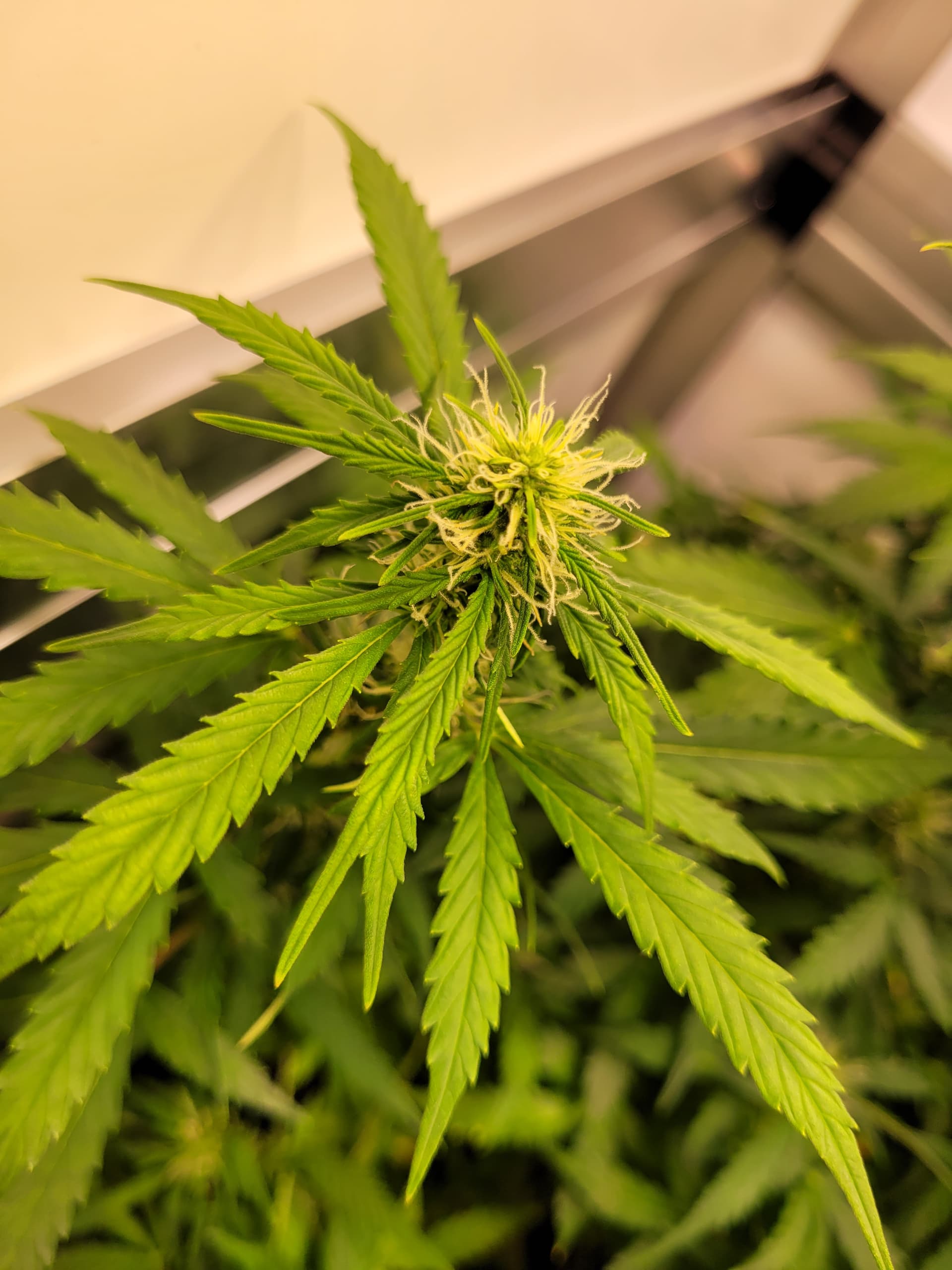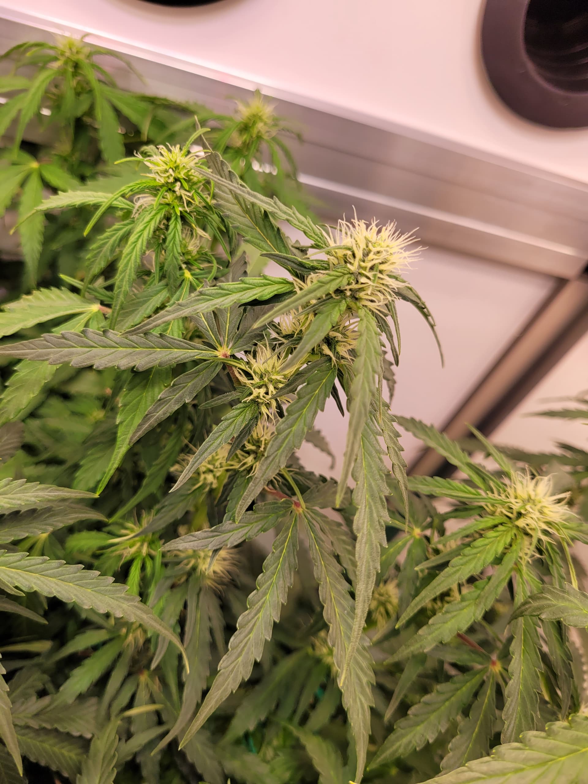 Weitere gelbe Blätter entfernen müssen. Die sommerliche Temperaturen machen sich in der Box bemerkbar, ist schwer unter 30C zu kommen.