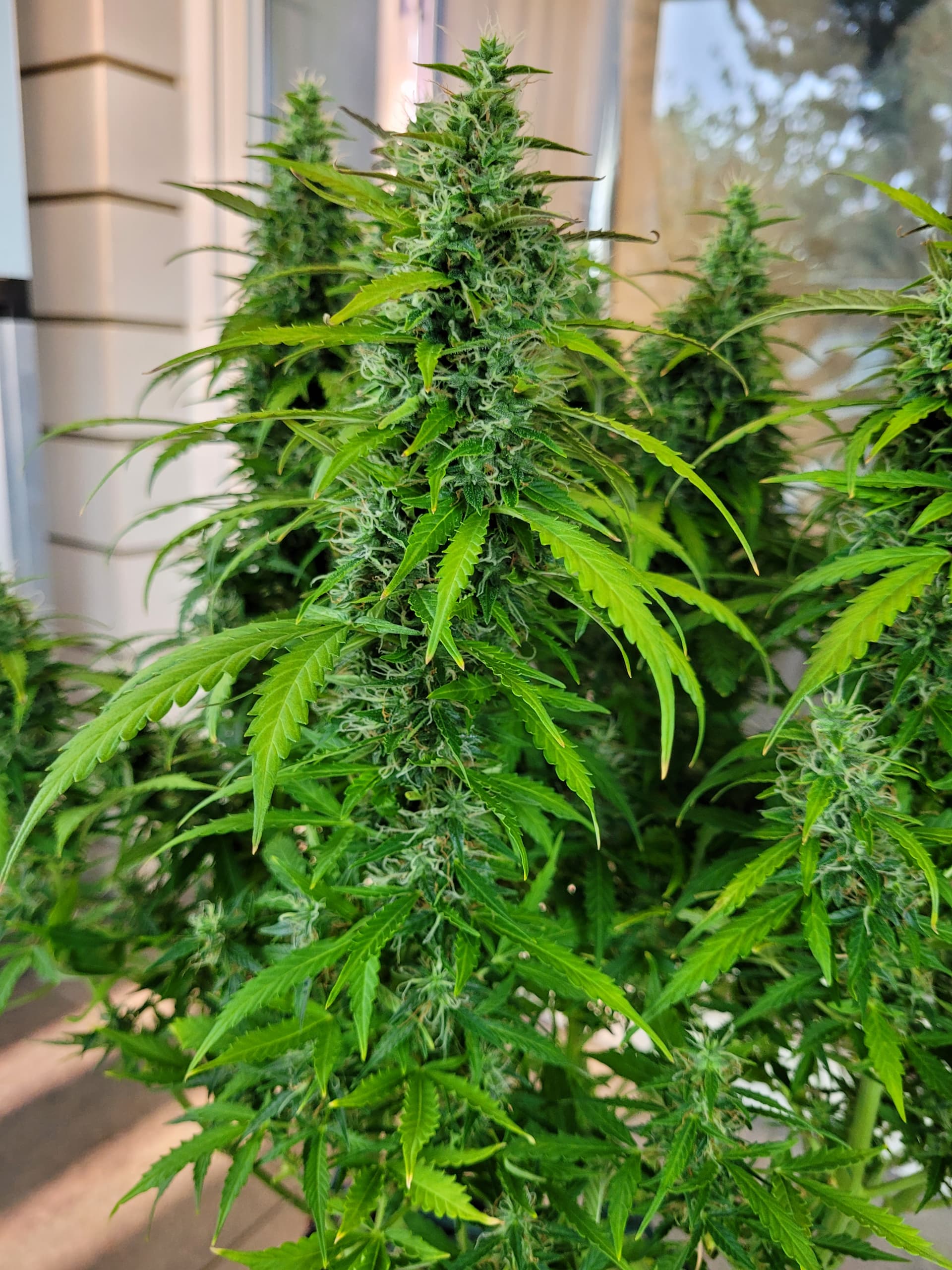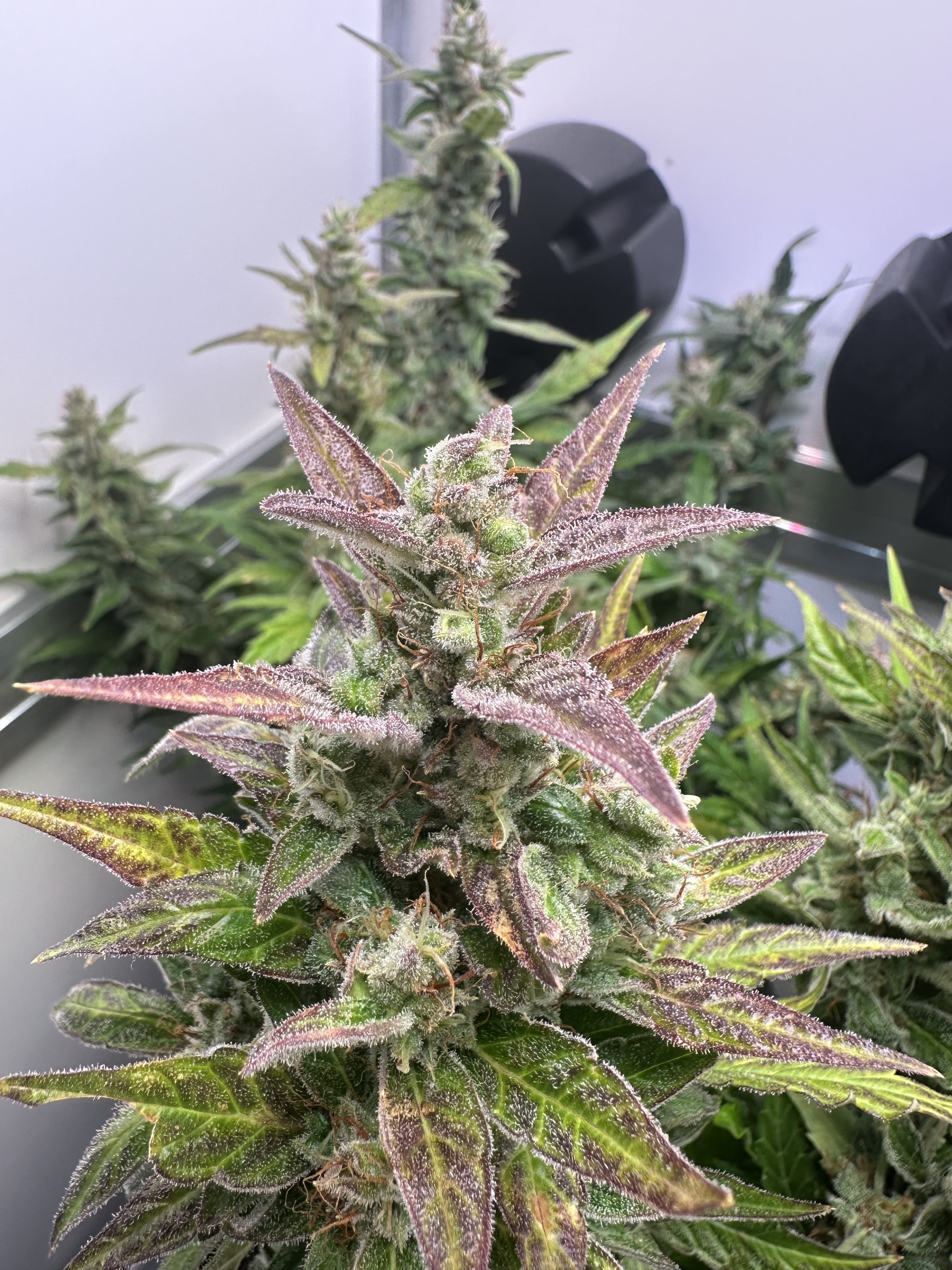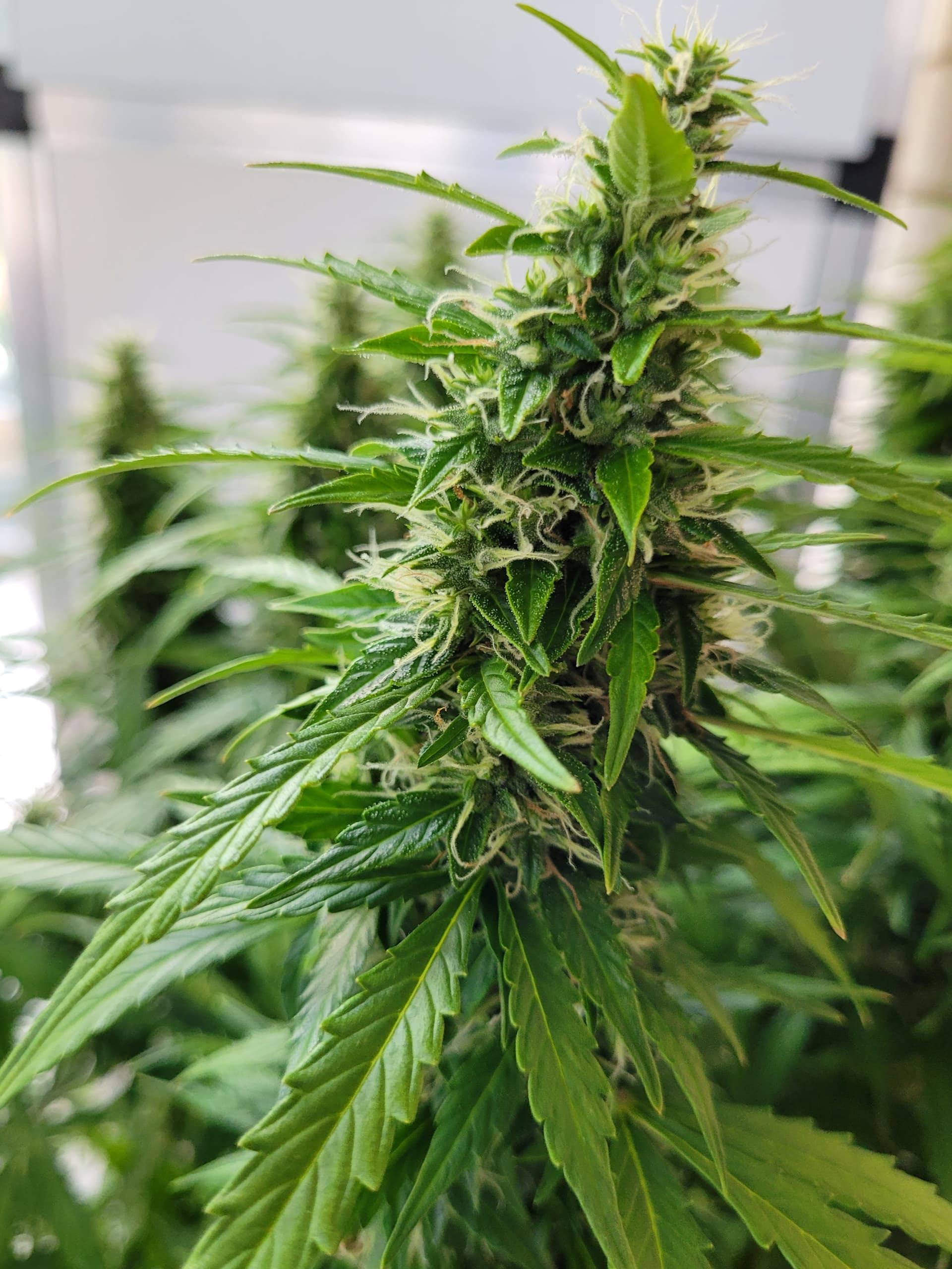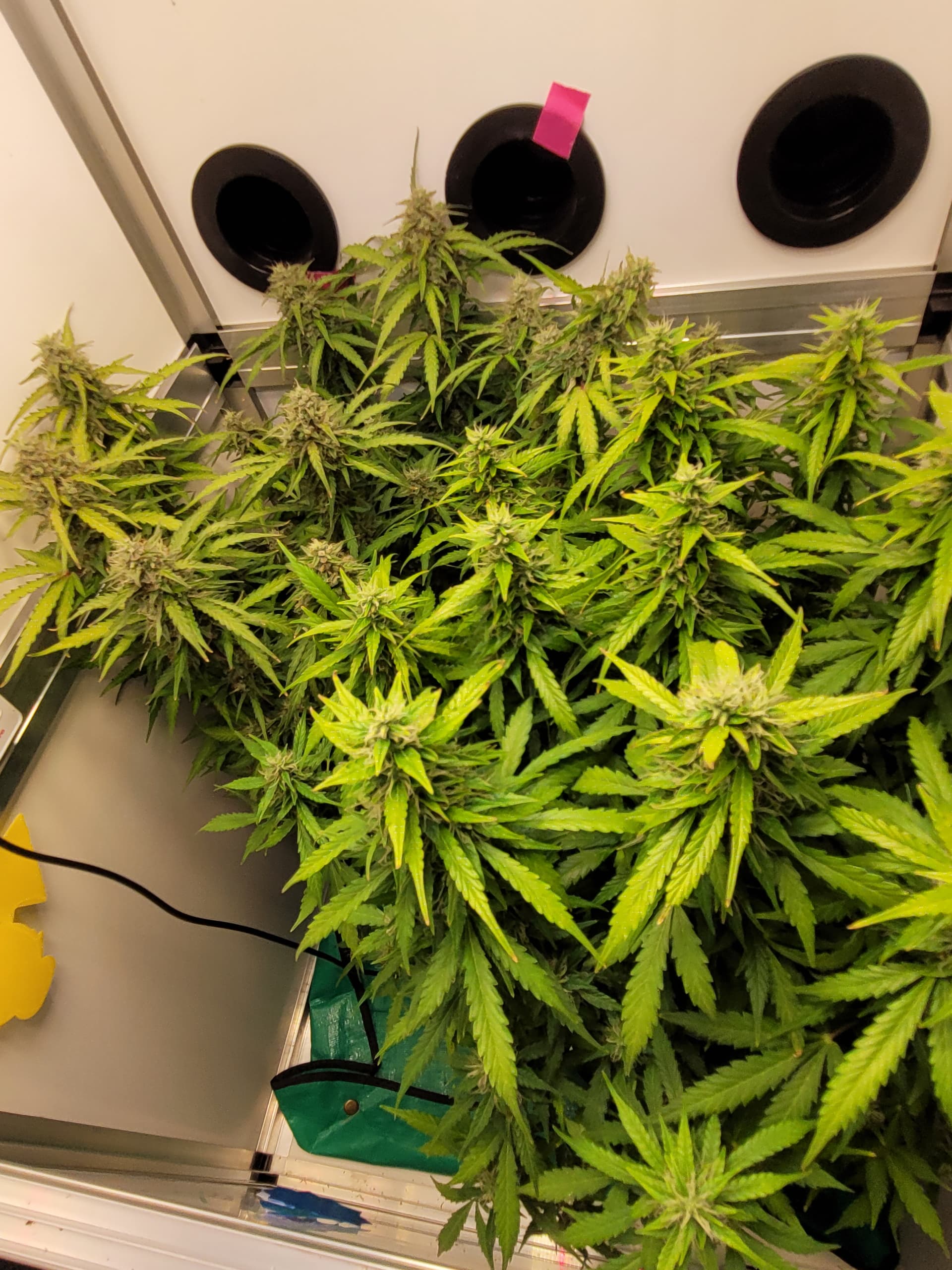 Die Mädels sind nun fast 50cm hoch, ich hatte in der vegphase teilweise 20-25cm Abstand zur Lampe, Wachstum wurde schon gehemmt. Blüten entwickeln sich prächtig.