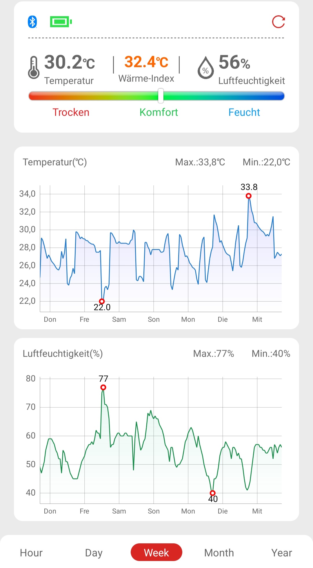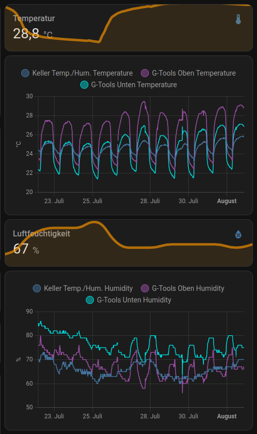 Ansonsten weiterhin Probleme aufgrund der Hitze. Morgendliches Lüften hilft bedingt, war aber die ganze Nacht >32C… Kann ich kaum verhindern leider.