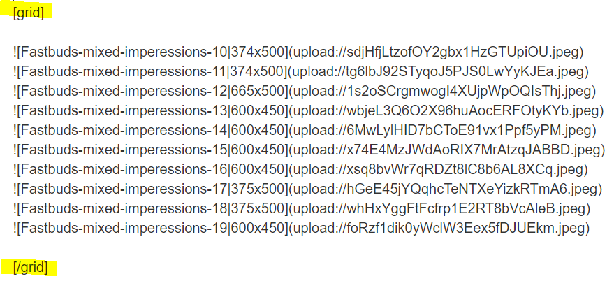 Einfach nach dem Bildupload im Editor vor den Bildern [grid] und nach den Bildern [/grid] einfügen. Schon ist die Ansicht umgestellt.