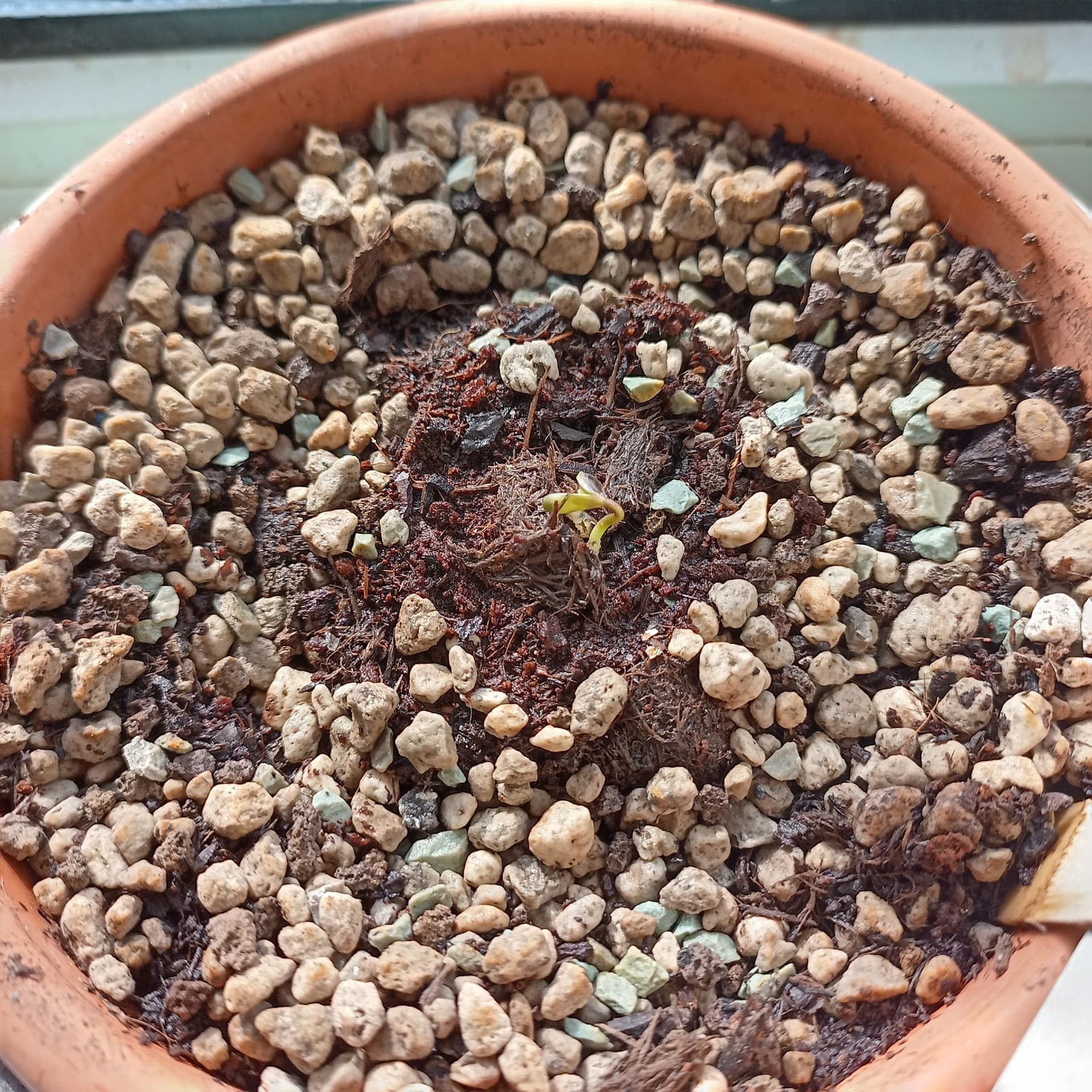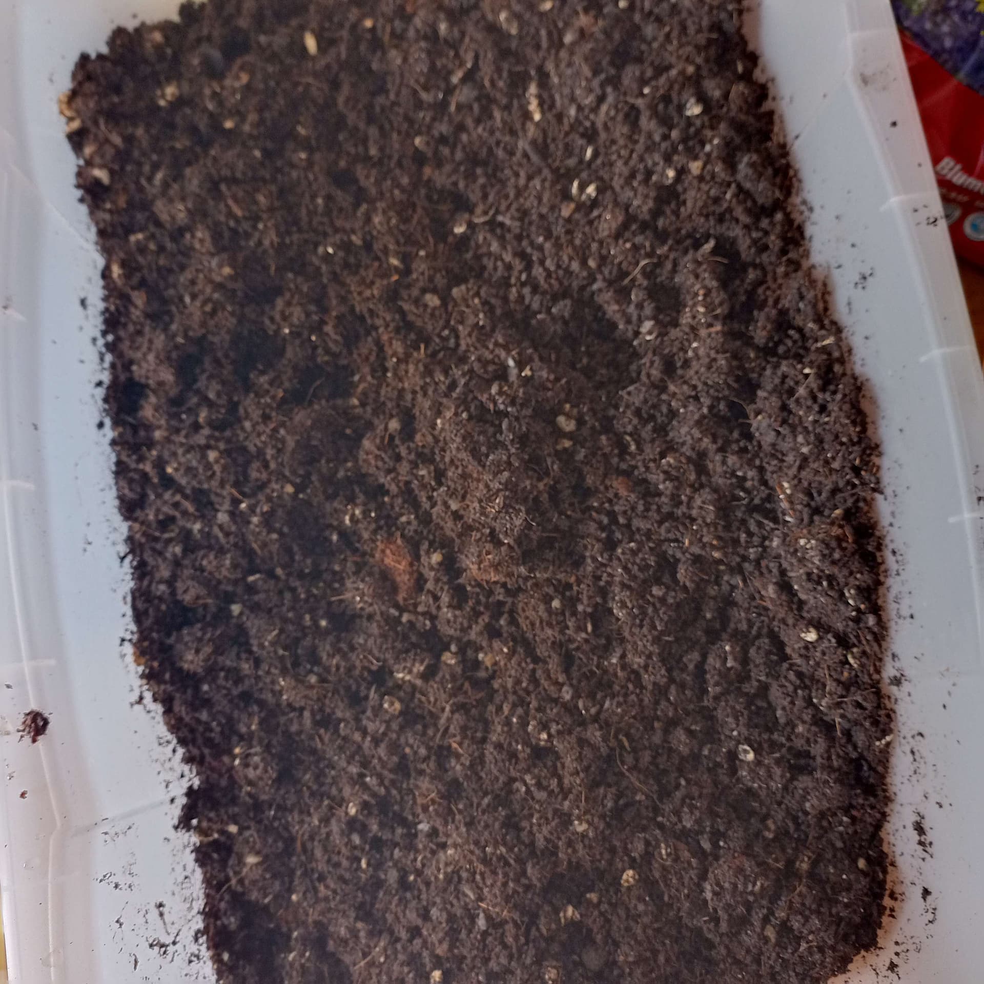 Bei dem kleinen Topf nir die Drainageschicht ein bisschen in der Erde gemischt und oben abgedeckt, ist was mit Bims und Co. Ansonsten in der Großen Kiste ist halt noch Nahrung für die Mikroorganismen drin, also Kokoserde und Haferflocken.