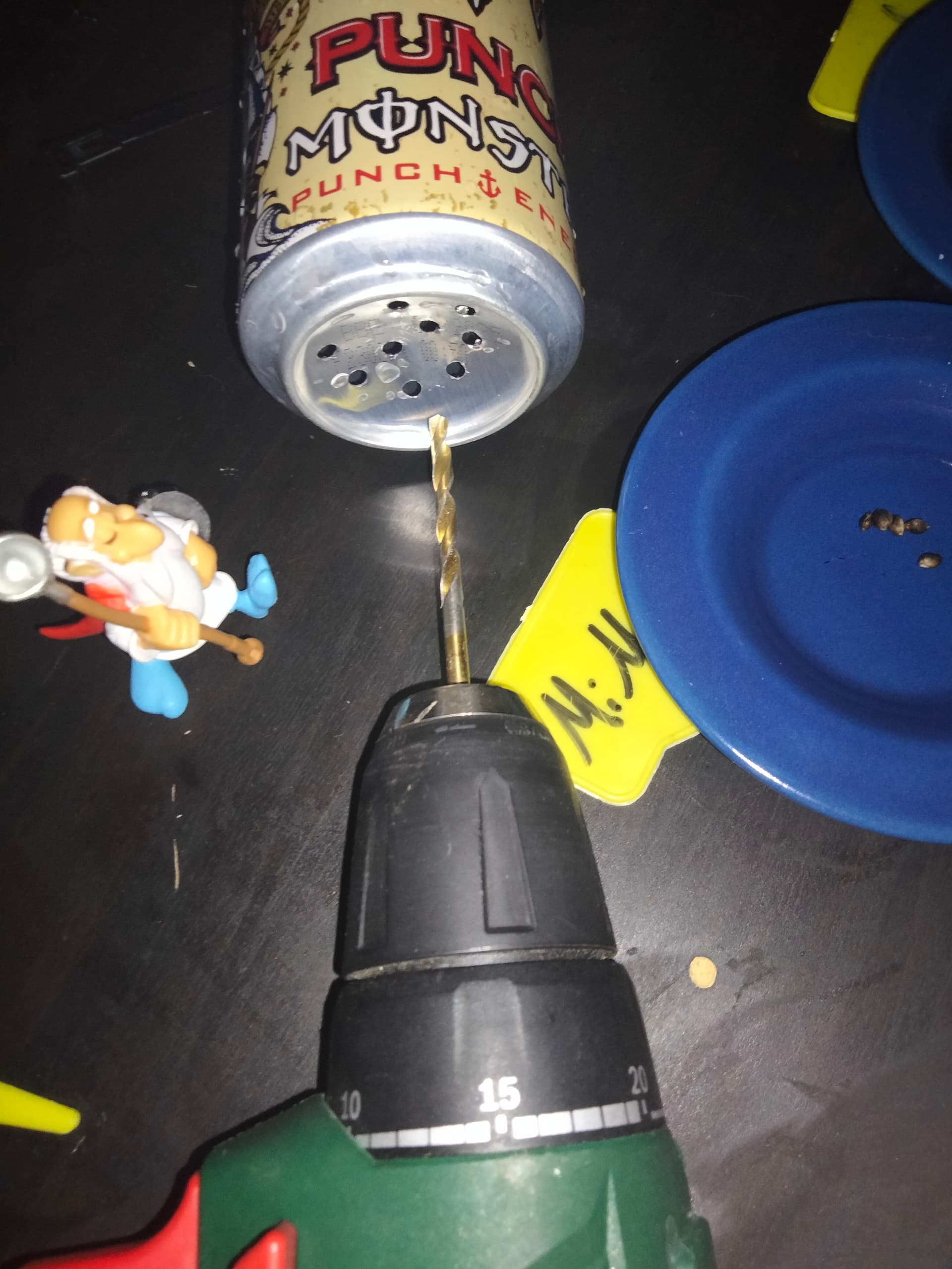 Ich weiß nicht ob das eine Rolle spielt, ich habe die Löcher außerhalb vom unteren Ring gebohrt um den Abfluss ohne zusätzliche Erhöhung zu ermöglichen. Und kleiner Tipp: schau mal ob du noch alte Tassen hast wo die Dose evtl. reinpasst. Top zur Bewässerung geeignet!