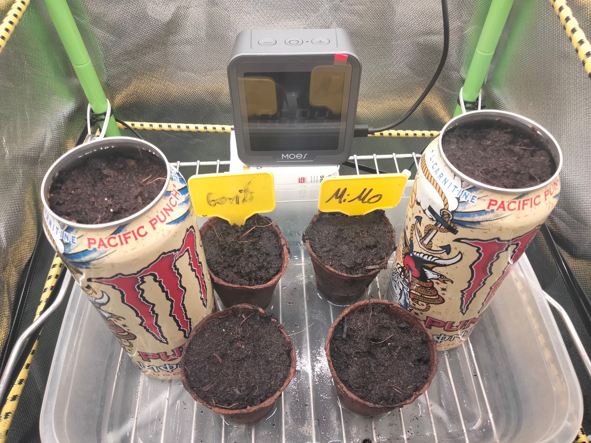Aber ich denk mal wir fangen mit 13cm Tontöpfen an und dann machen wir 4 auf 40x 40x 40cm Kübel mit Blumart !