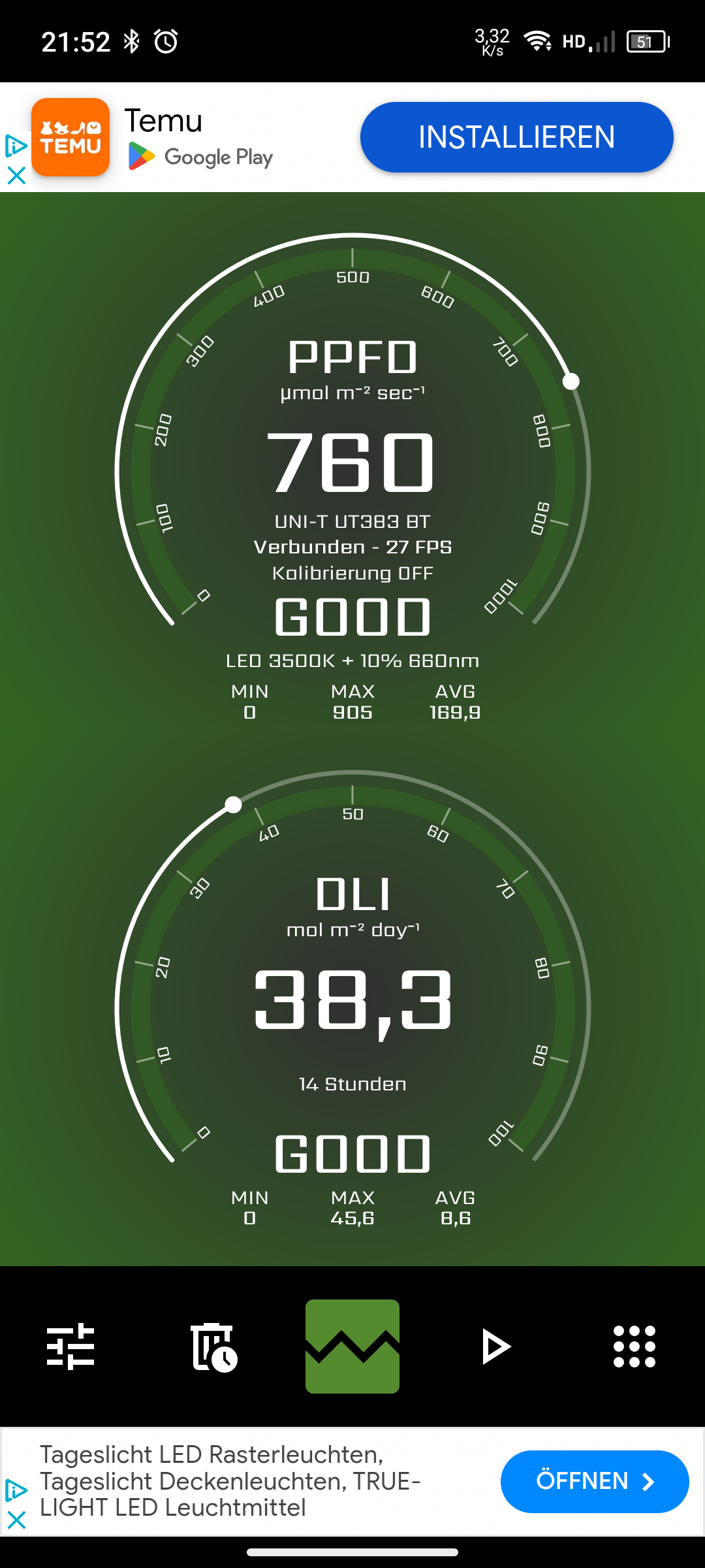 So Abstand zur Lampe neu justiert hier die eingestellten Werte