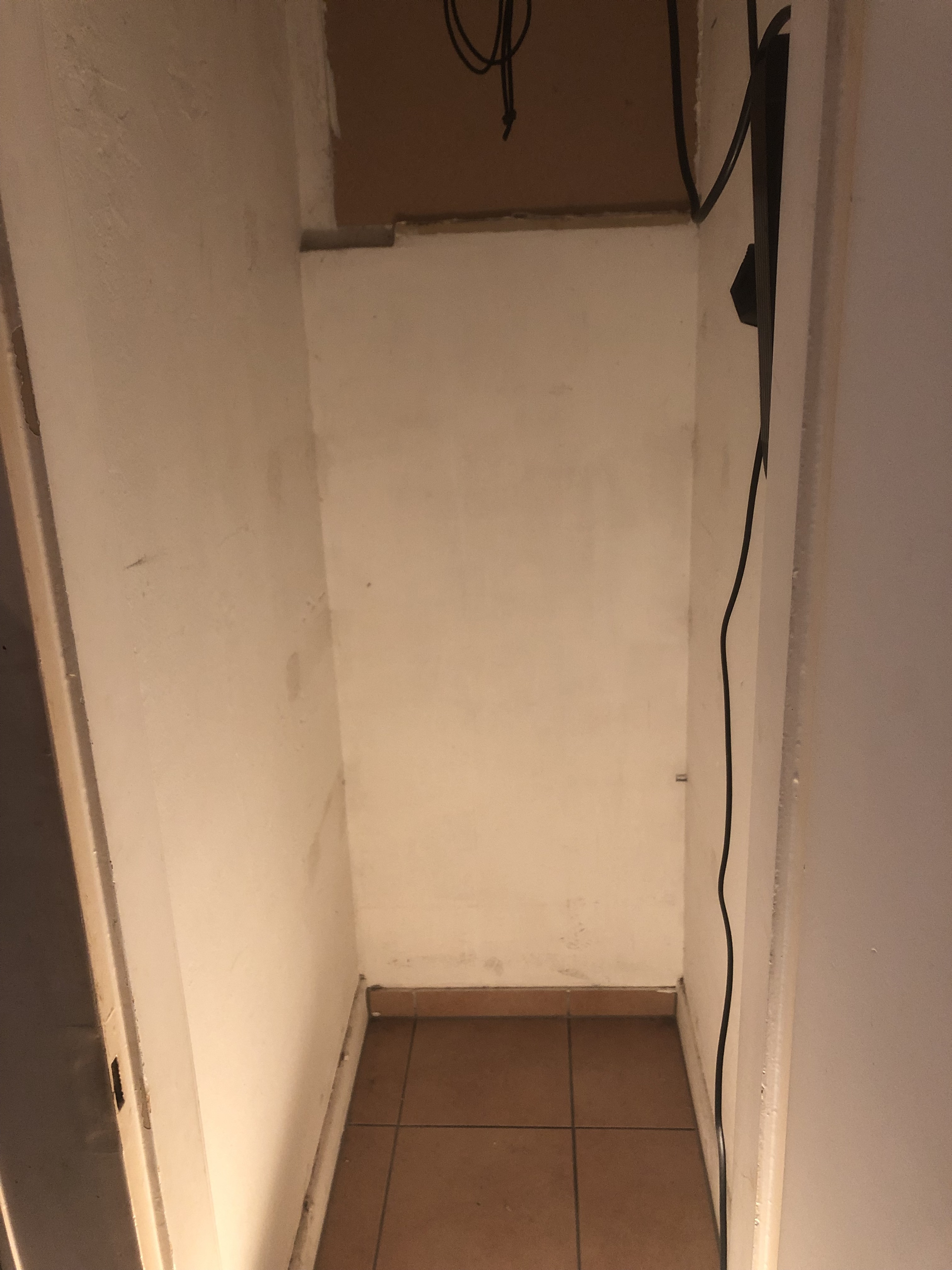 Vor einigen Tagen habe ich die Kammer komplett ausgeräumt und die Wände (bis zu einer Höhe von ca. 140cm) neu weiss gestrichen mit Polarweiss Wandfarbe von OBI.