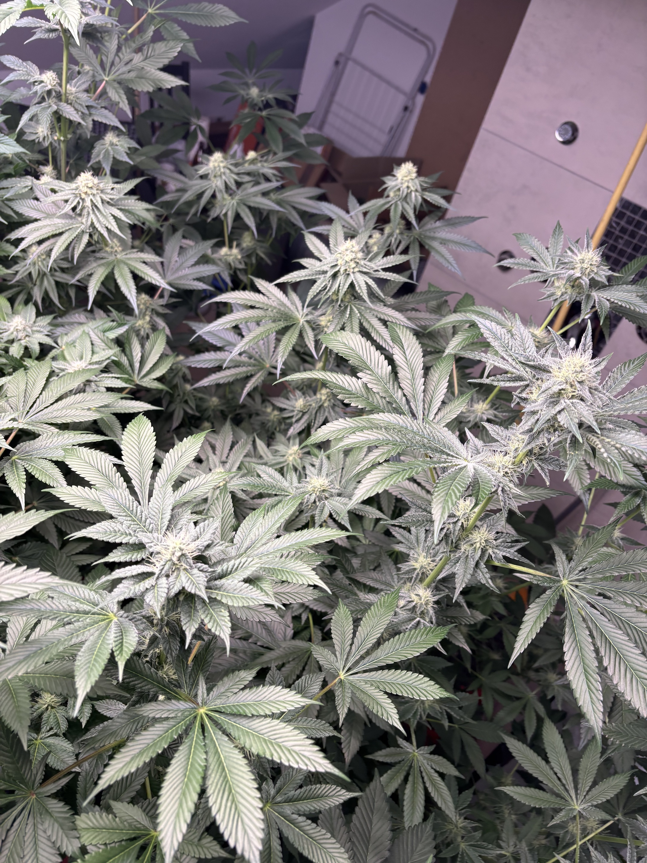 Die Abluft wurde auch eine Stufe höher gestellt, es wird langsam warm draußen und wenn die Sonne den ganzen Tag auf die Dachschrägen scheint heizt es sich etwas auf, 25, mal 26 grad. Mal schauen was heute das Max. wird nachdem hochfahren. RLF ist konstant bei 45/50%.