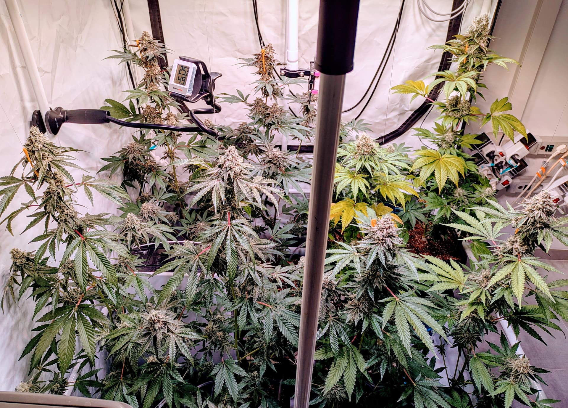 So jetzt heißt es sich auf den nächsten Grow vorzubereiten. Die Strains stehen schon fest, doch vorher muss ich noch ein paar Umbauarbeiten am Equipment durchführen. Ein neuer AKF ist fällig, für einen besseren Einsatz der Jojo’s werde ich noch ein paar Poles einsetzen und aktuell plane ich seitliche Beleuchtung im unteren Bereich zu installieren.
