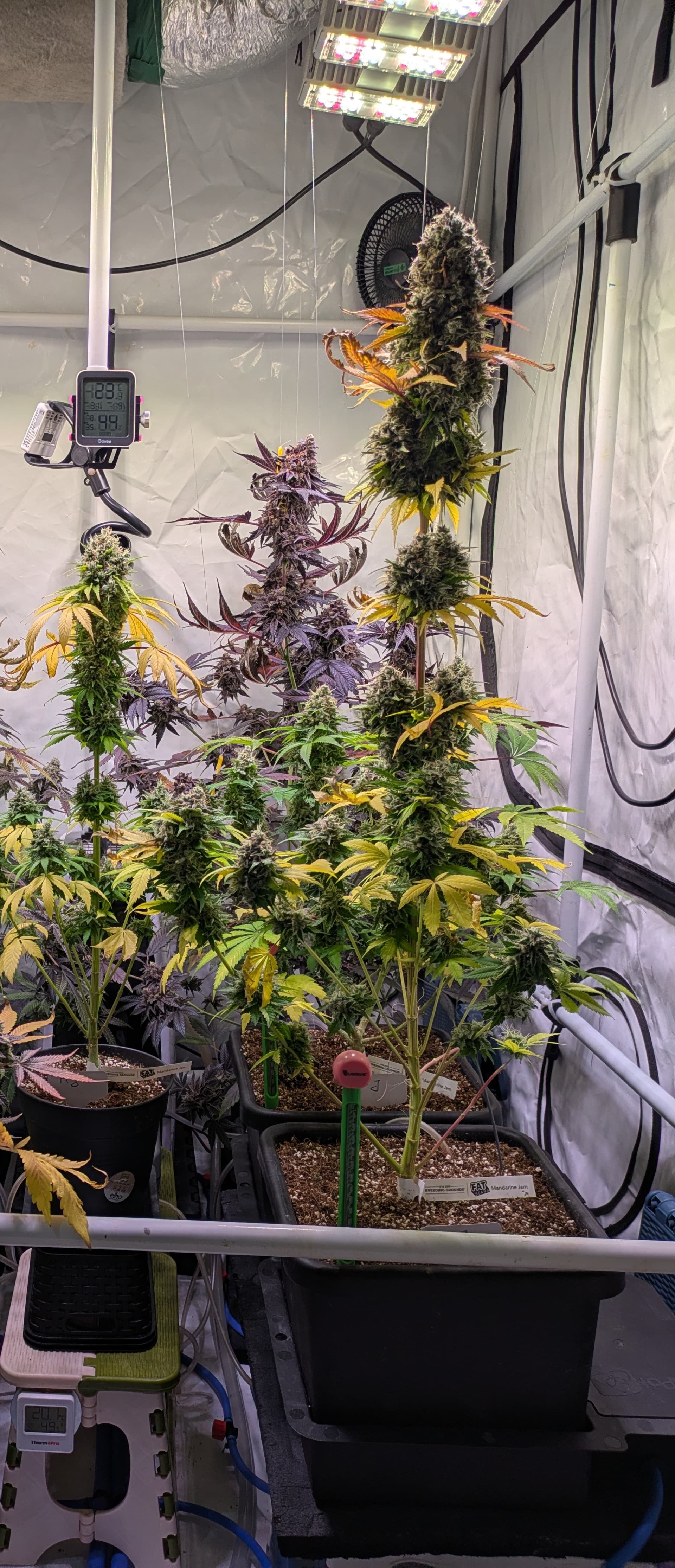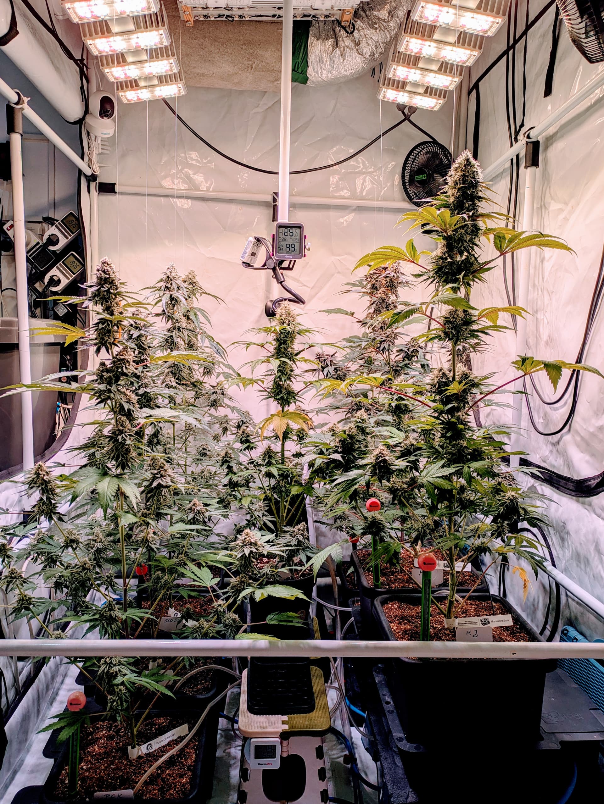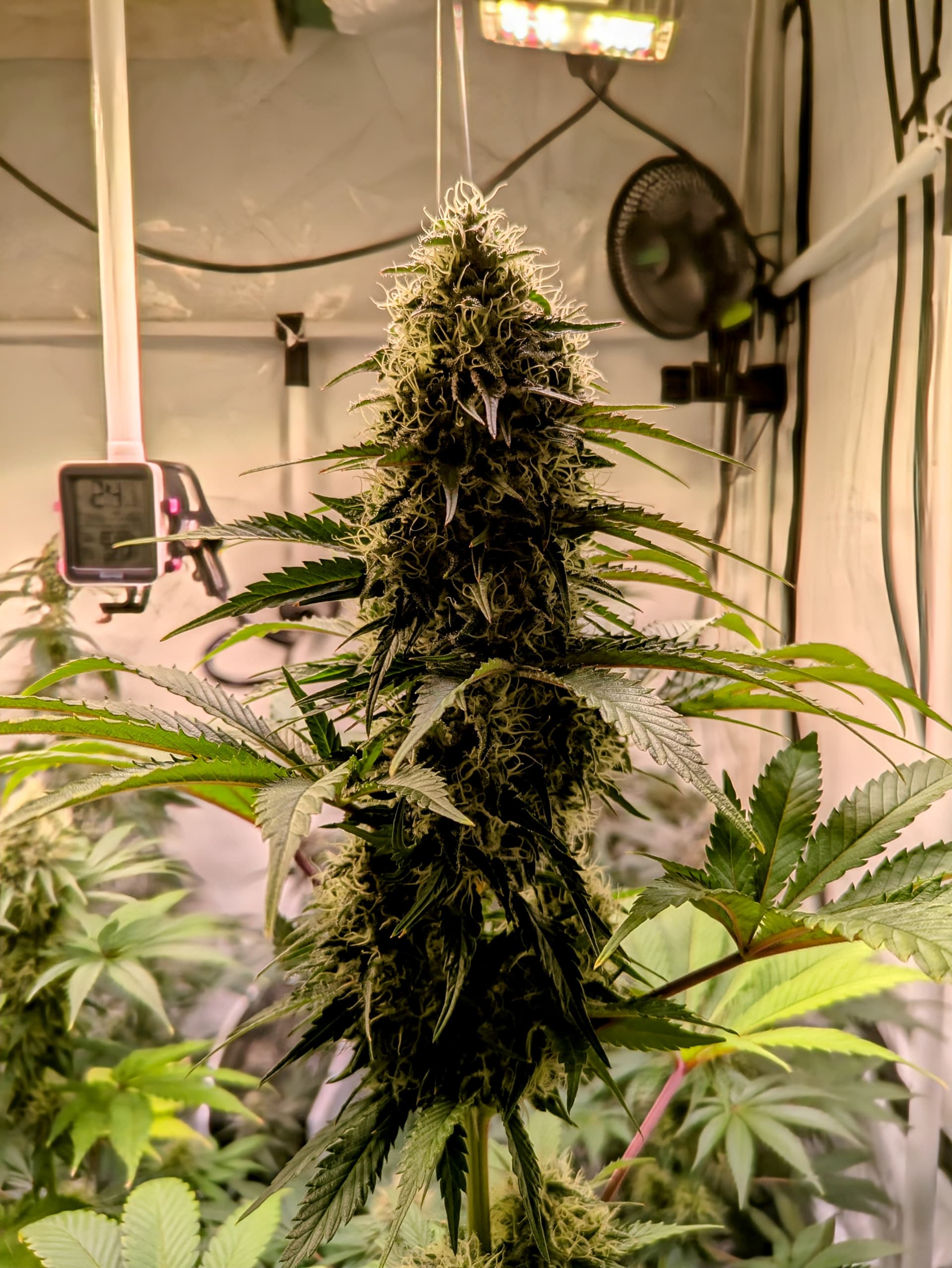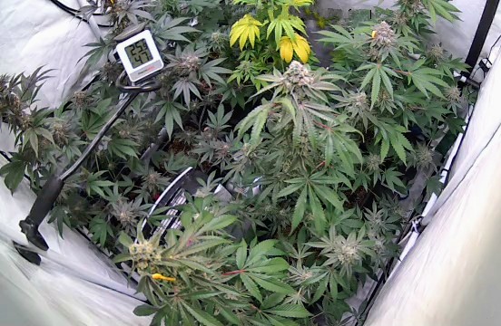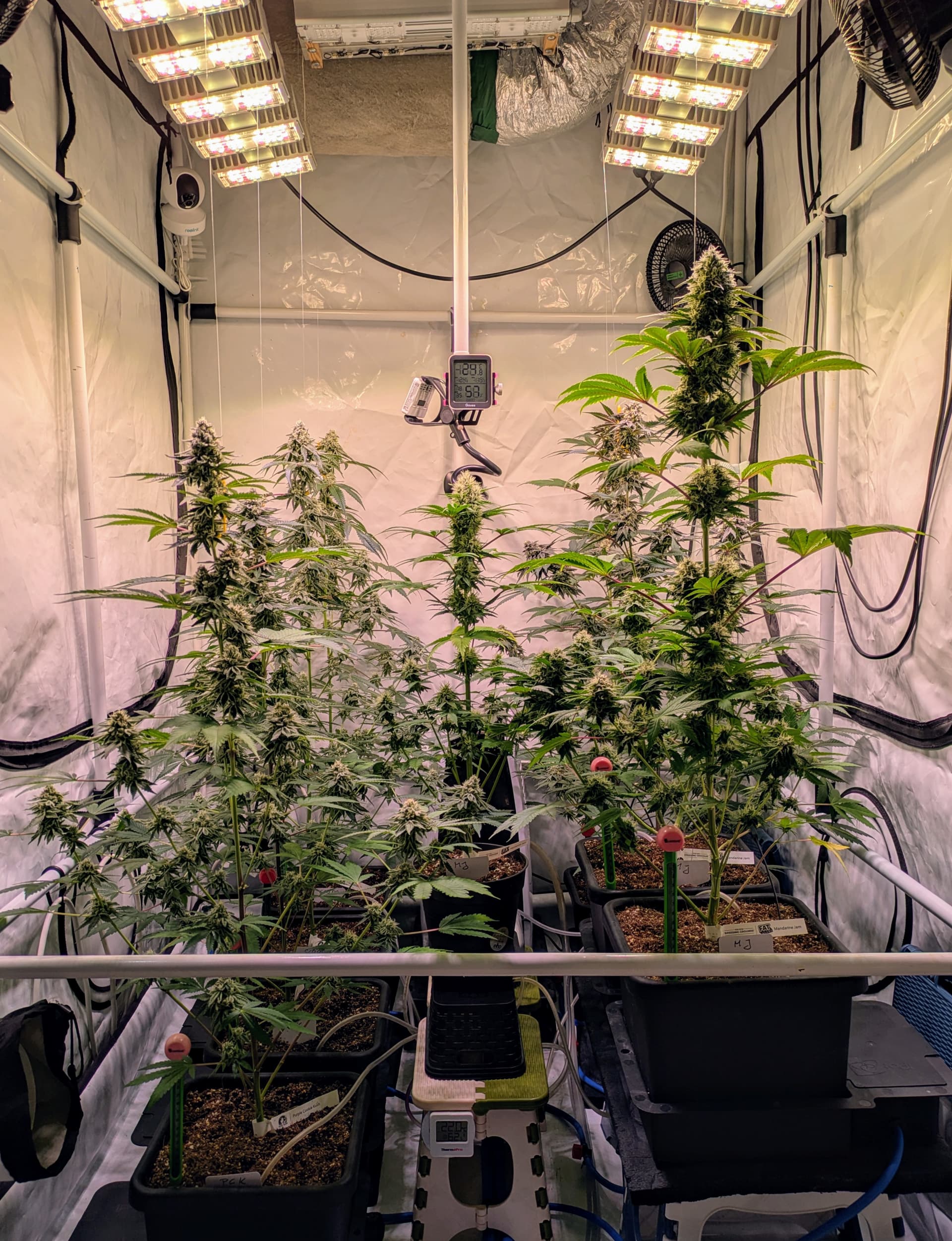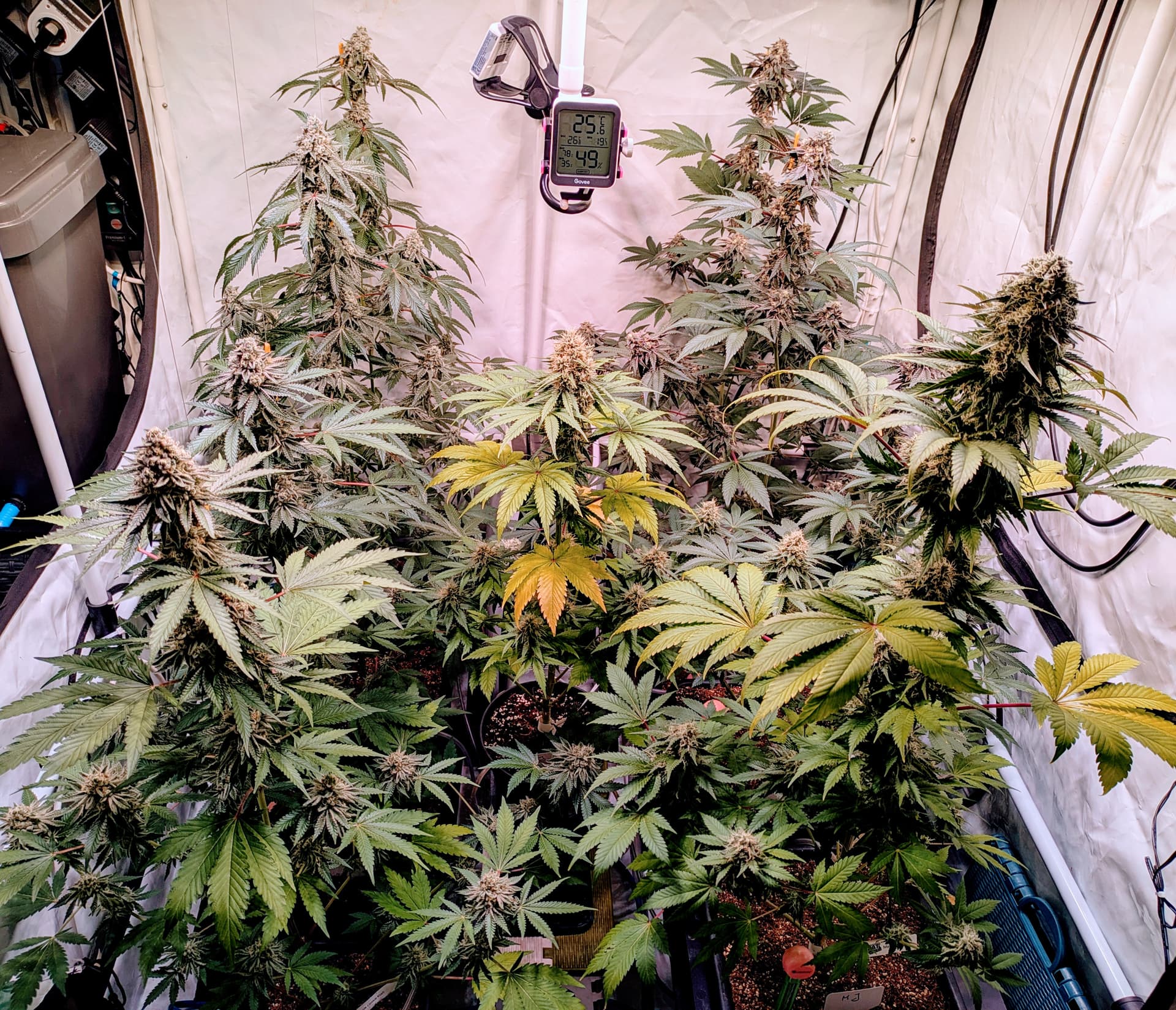 Alle Buds sind nun fein säuberlich im Trockentent, im Tent befindet sich ein Inkbird Sensor welcher einen kleinen Entfeuchter steuert. Die RLF soll während der Trocknung um die 62% liegen