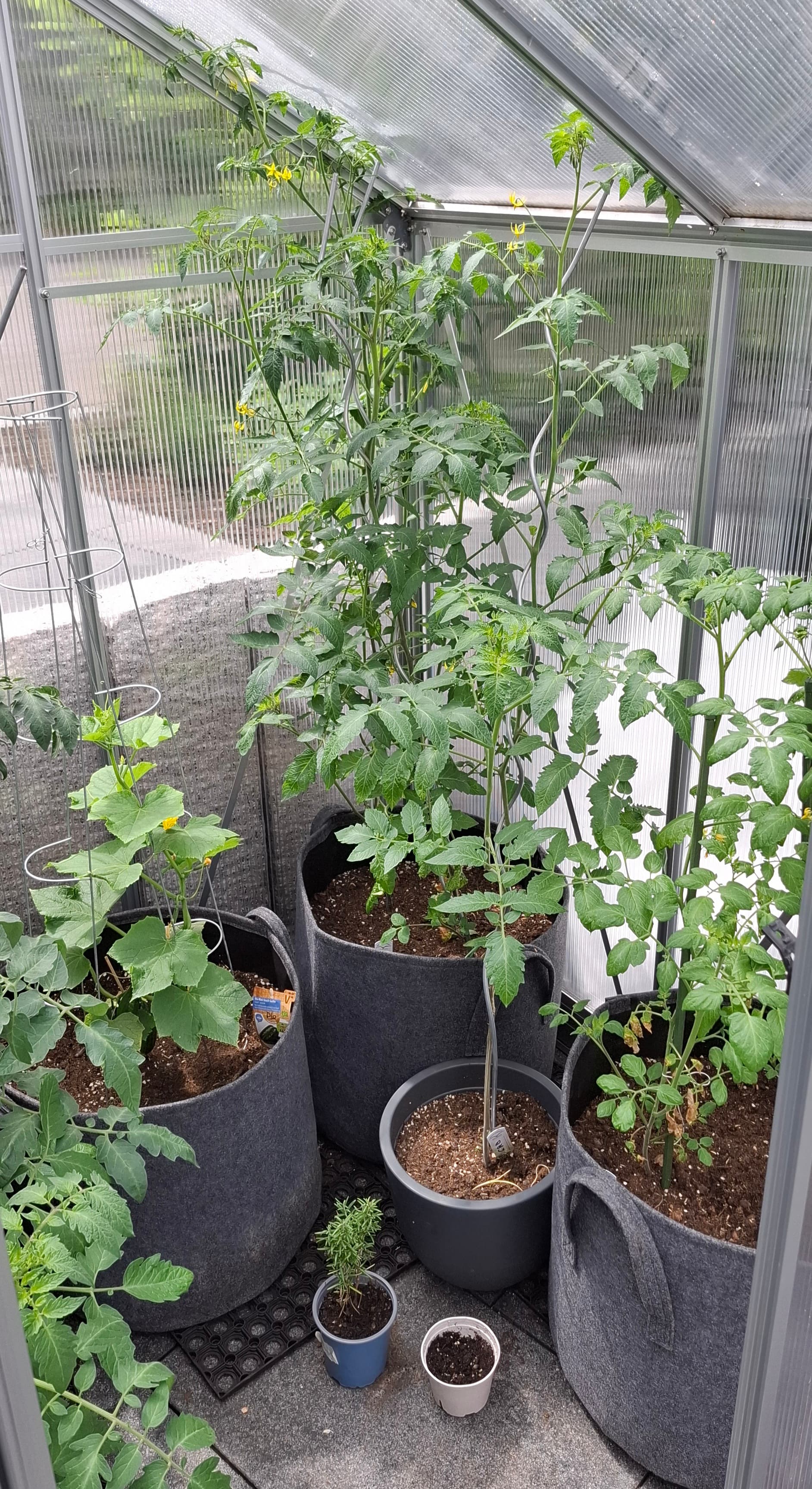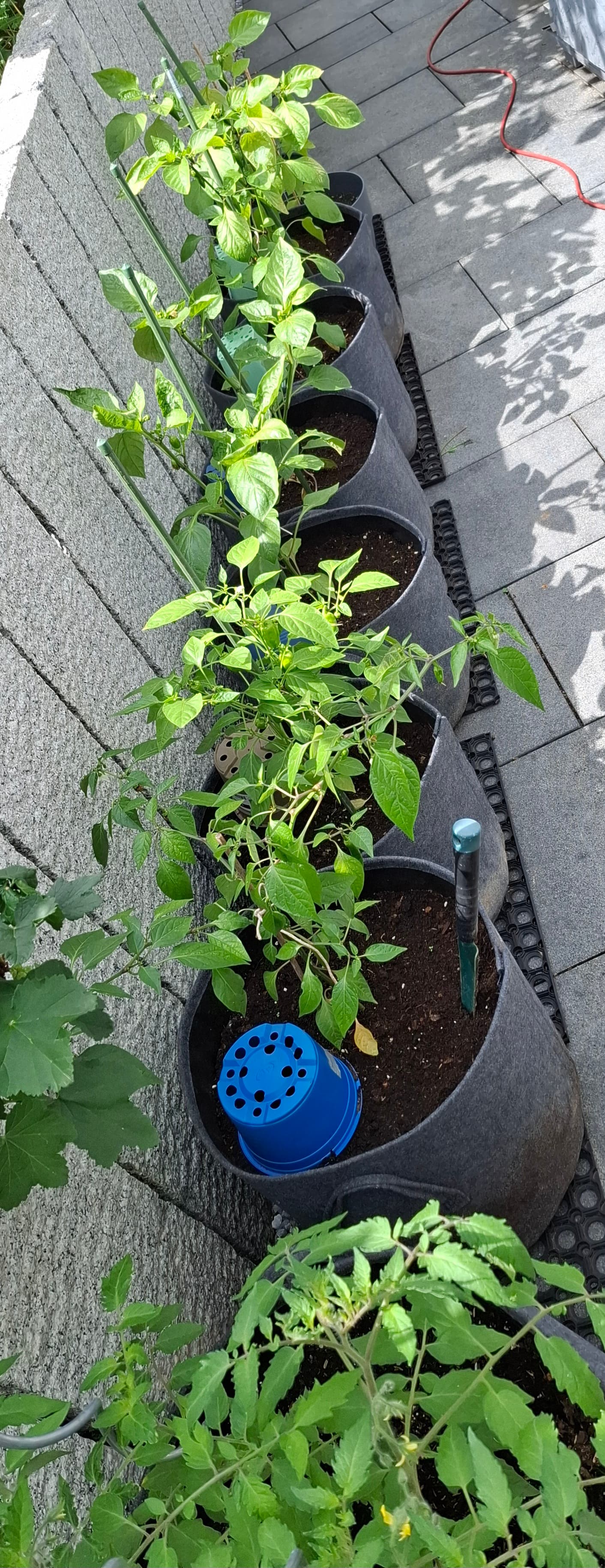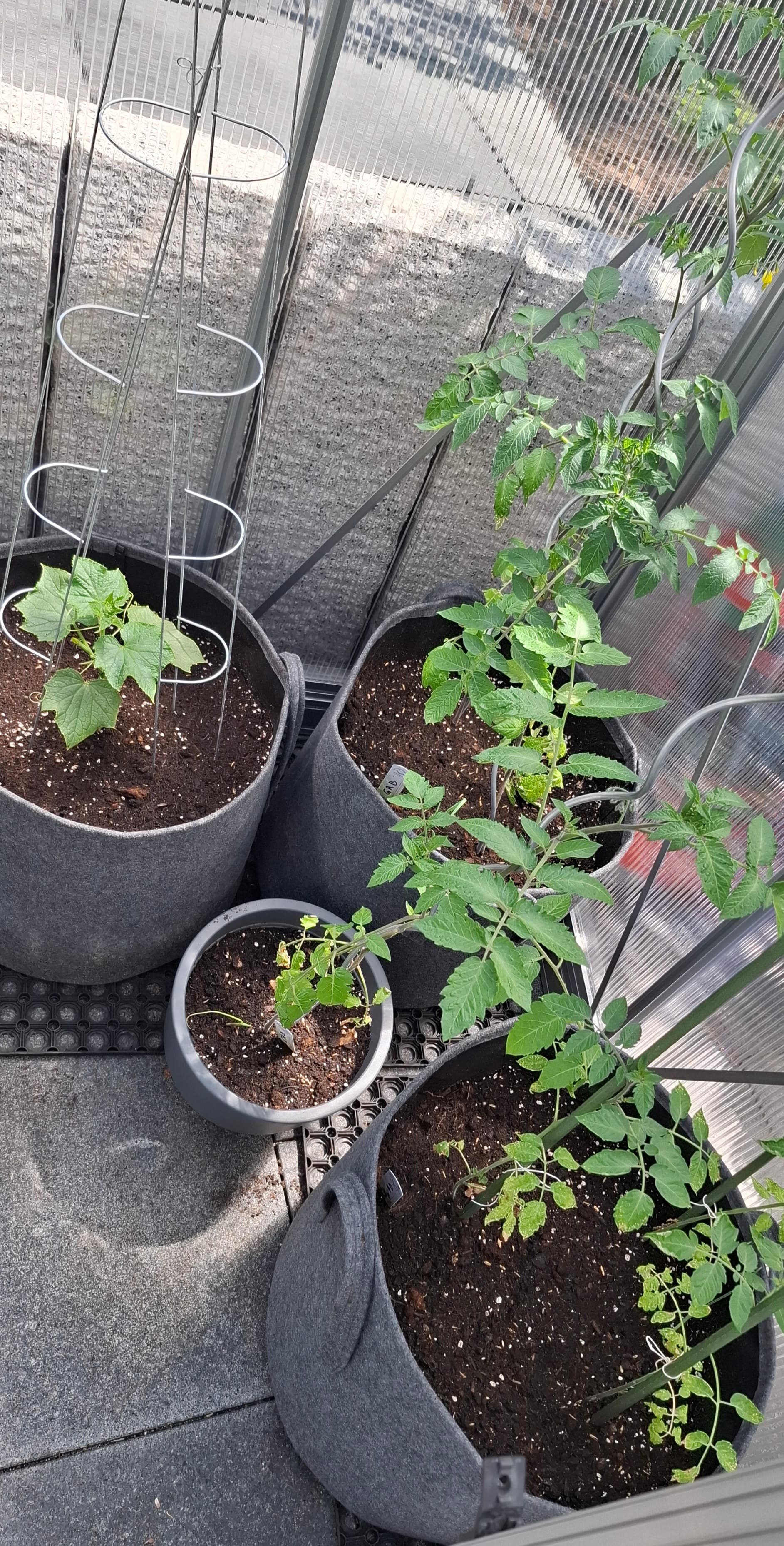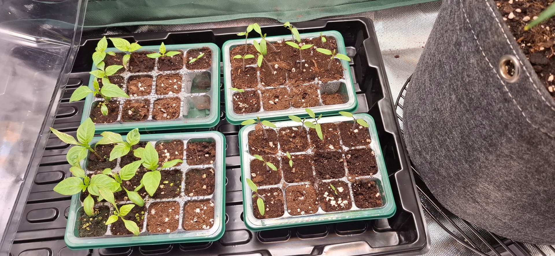 Die Paprika und Chilli haben es gestern nach drauĂen geschafft, die Tomaten stehen schon eine gute woche im GewĂ€chshaus.