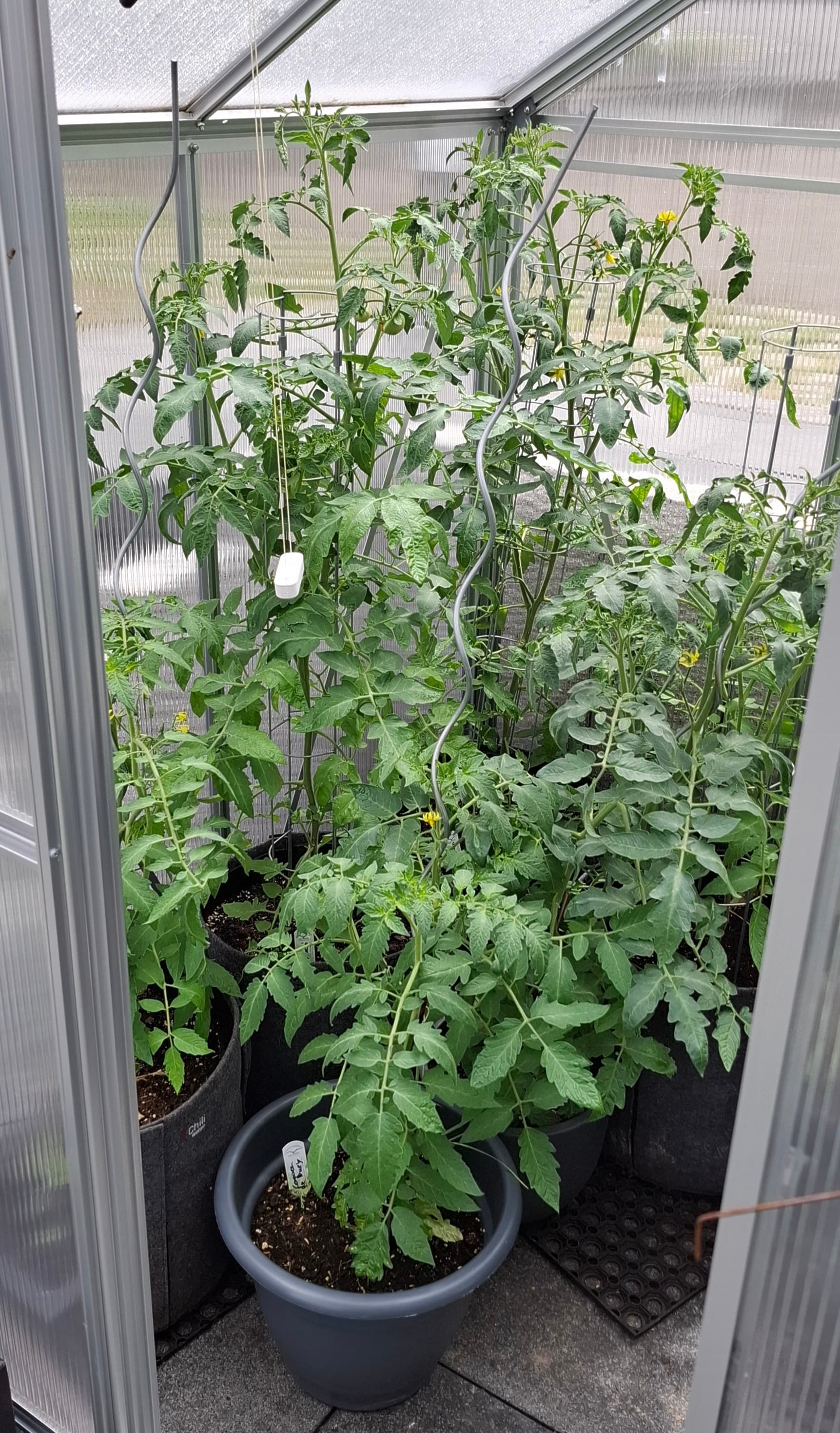 Die Tomaten sind zu lange in ihren kleinen Töpfchen gewesen, die sind mir persönlich zu stark nach oben geschossen. NĂ€chstes Jahr fange ich mit denen mal gute 3-4 Wochen spĂ€ter anâŠ