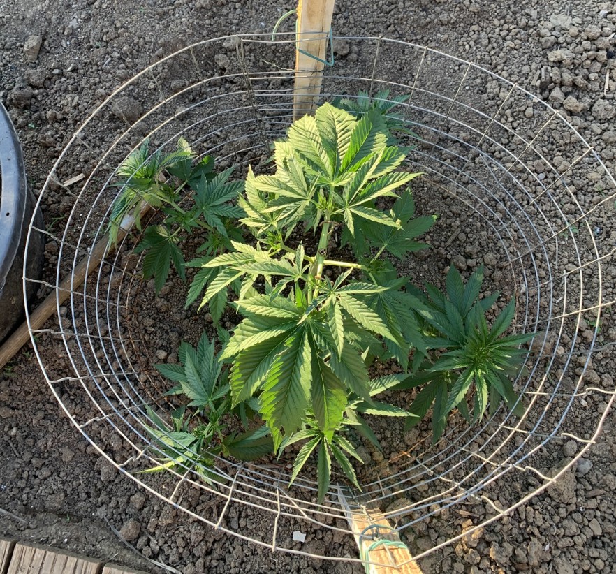 Keimung Ende April und am 09.06.25 ins Beet ausgesetzt. Leider habe ich in diesem Jahr spät mit den ersten Toppings begonnen. Deshalb verteilen sich die Haupttriebe auf 3 Ebenen. Optisch nicht ganz so schön, aber im Wachstum keine merkbaren Einbußen zu erkennen. Unterstützt durch ein “Cage”, welches das regelmäßige Trimming einfacher macht und der Pflanze insgesamt eine bessere Stabilität gibt. Ab Mitte September schützt ein Pavillion die Pflanzen gegen die aufkommende Nachtfeuchte und garantiert am Ende eine weitestgehend trockene Ernte.