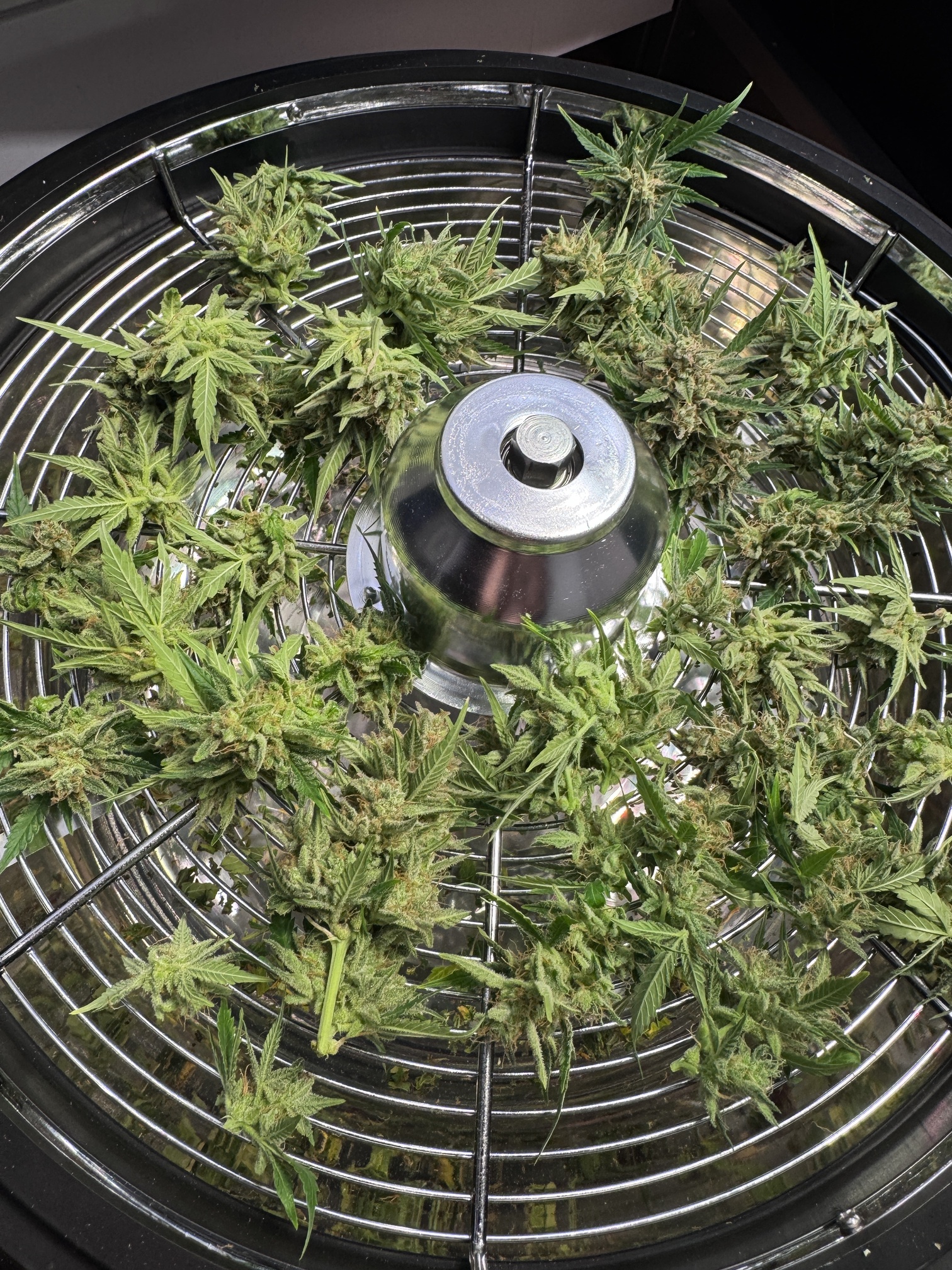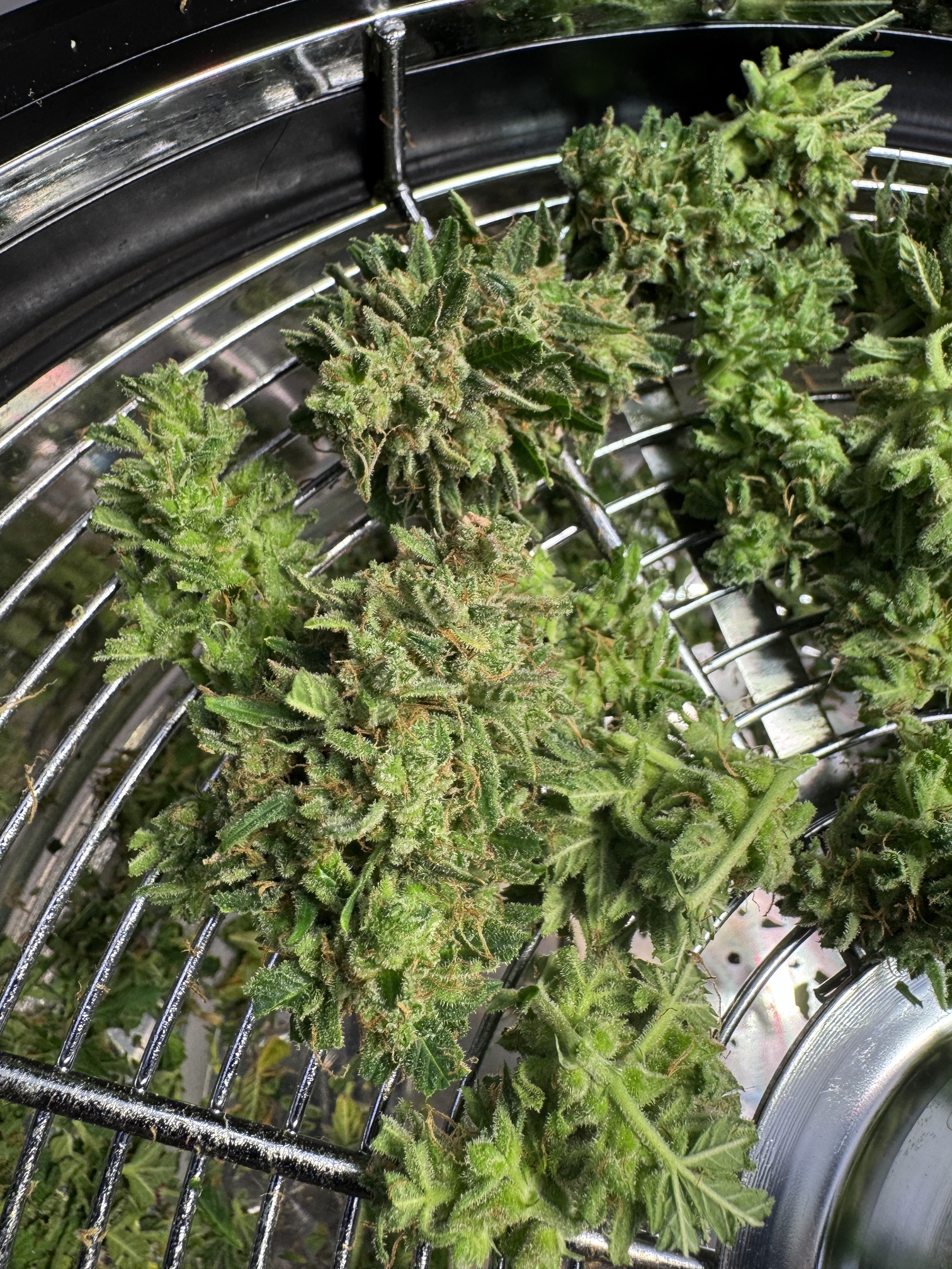 Wenig Trimm finde ich. Die Bowl macht ein super Job. Was mir aufgefallen ist. Es werden bestimmt einige Trichome zerstört. Beim öfnnen nach dem drehen richt es richtig stark. Zudem sind die Buds aussen leicht feucht. Bin gespannt ob ich später einen unterschied merke. ![]()