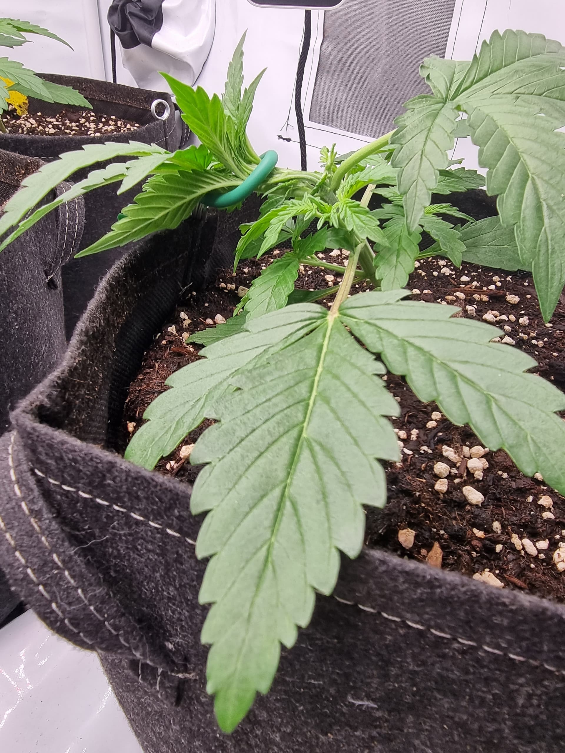 Das gefällt mir nicht so, sieh mal ob du den Draht mehr Richtung Trieb bekommst und weg von den Blättern.