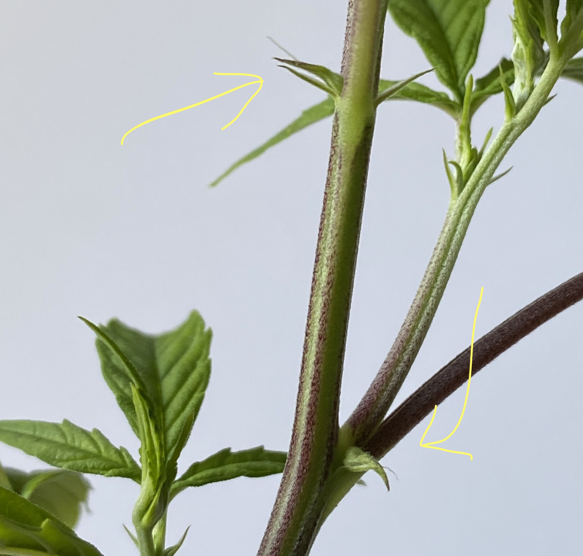 Nodien: G 9 bei 18,5 cm, H 7 am Hauptstamm, an den Seitentrieben ist die erste Nodie jeweils kurz vorm Rausploppen.