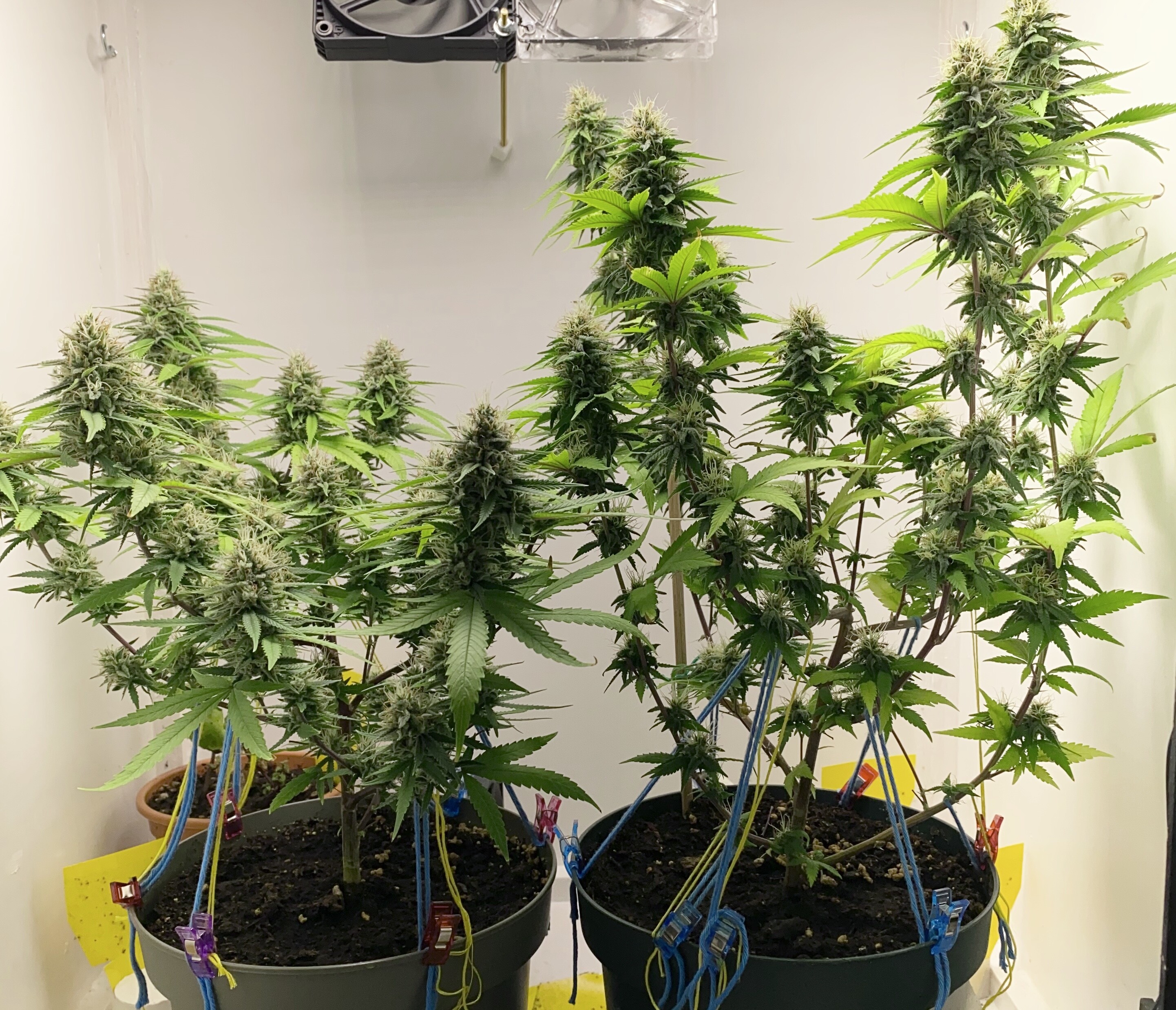 Später muss ich mal sicherheitshalber einen von Hazis Trieben ein Bisschen abstützen. Der ist total dünn geblieben, obwohl er die ganze Zeit in der Umluft tanzt, kommt von ganz unten, aber trägt die dickste Blüte. Mal sehen ob ich noch ne passende Stütze da habe.