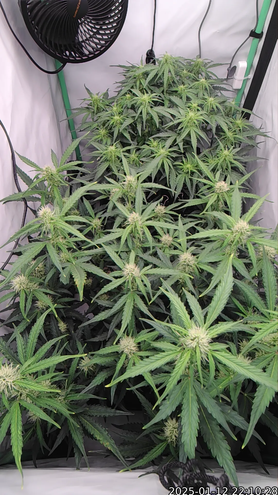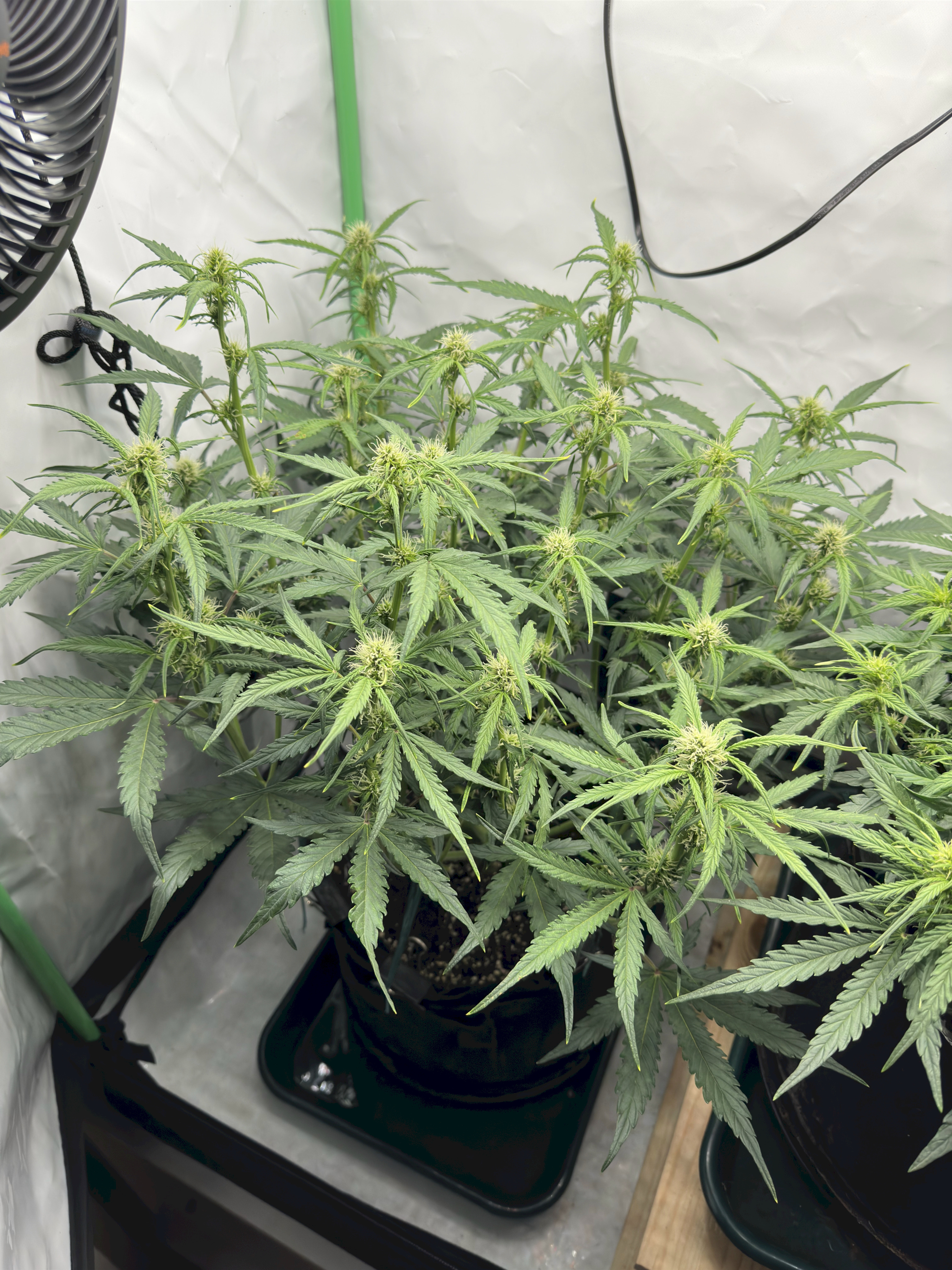 Die rechte Pflanze hat auch nochmal ganz gut gestretched und ist jetzt ein Meer aus recht nah beieinander liegenden Bud-Sites. Das könnte zum Ende der Flower-Phase noch ein Problem werden Da wird der Entfeuchter eventuell Überstunden machen müssen. Wir werden sehen.
