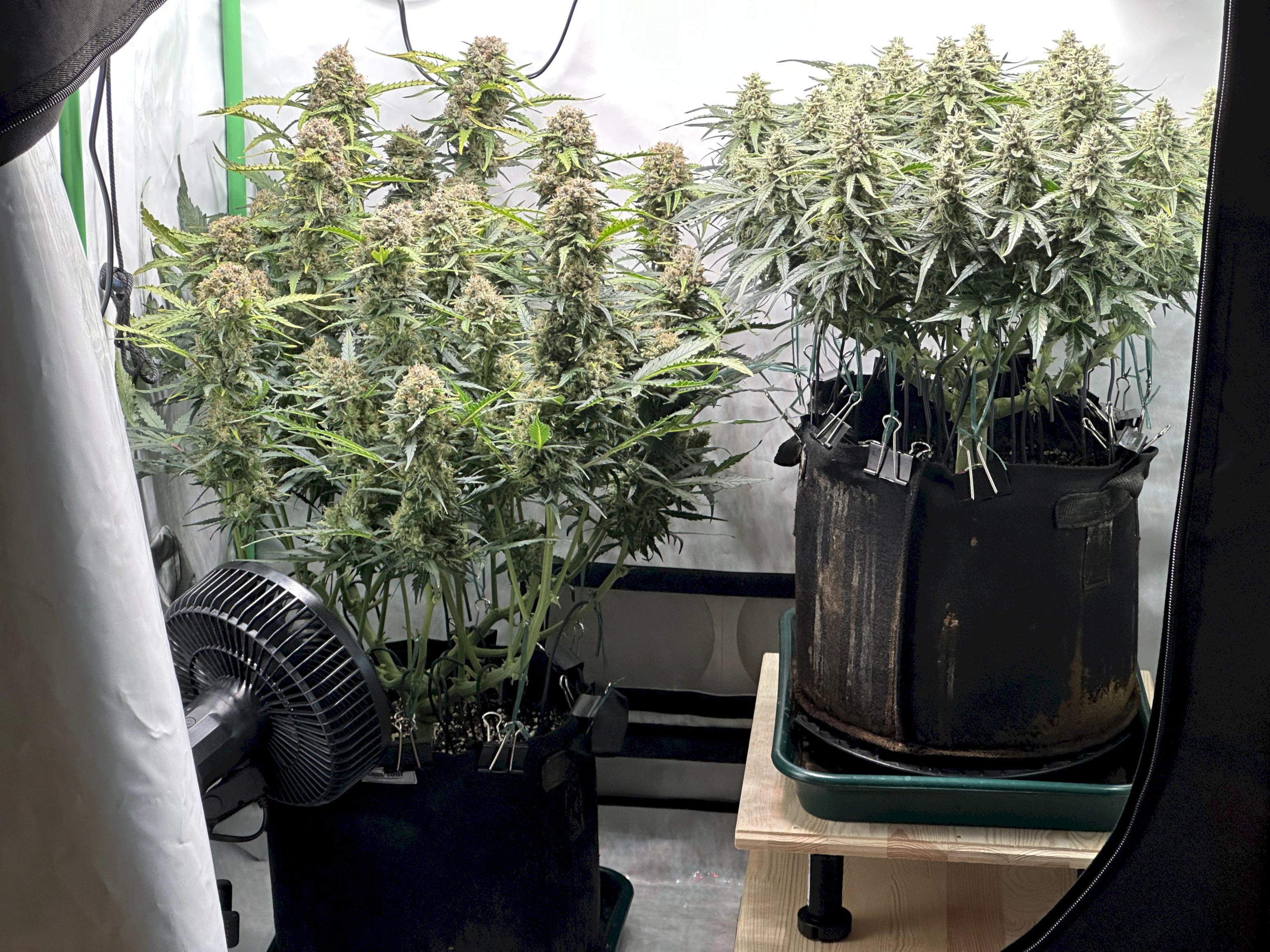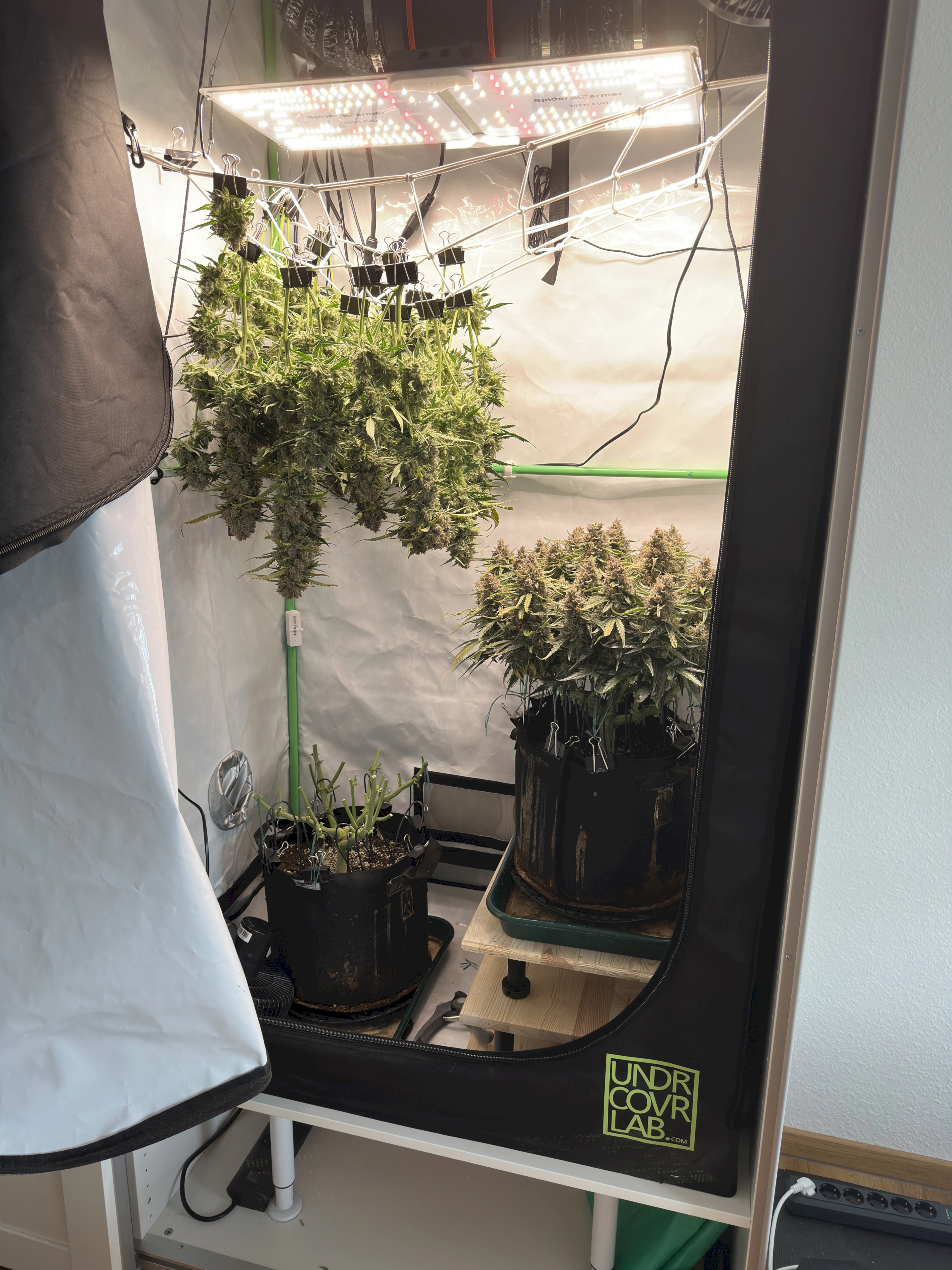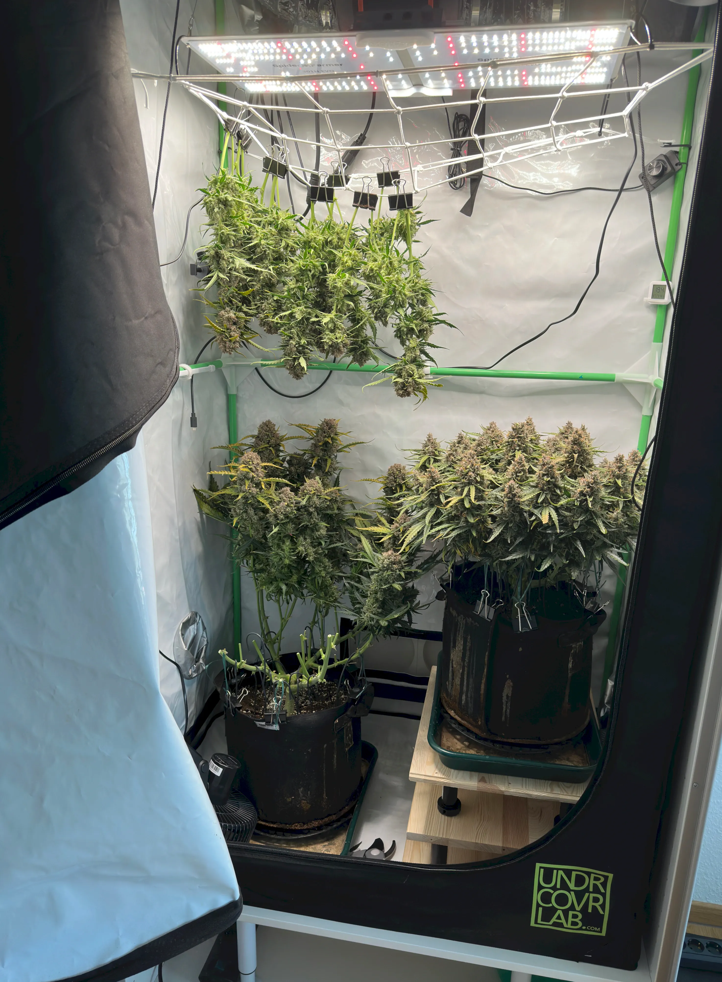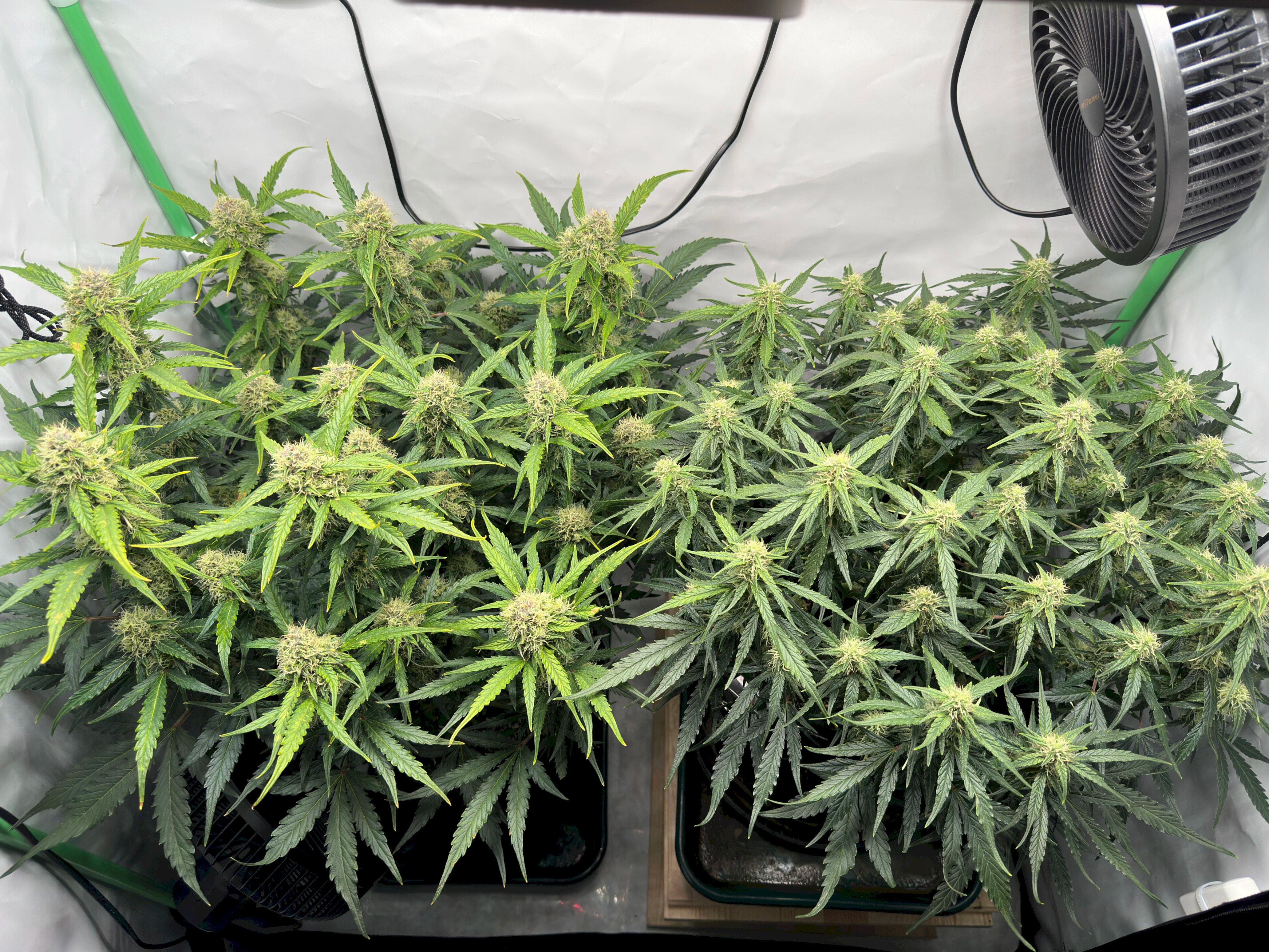 Ich hoffe, dass die rechte Pflanze bis dahin auch gut ausgereift ist, denn idealerweise wĂŒrde ich gerne eine gleichzeitige Ernte beider Pflanzen machen, um im Zelt trocknen zu können. Wir werden sehen