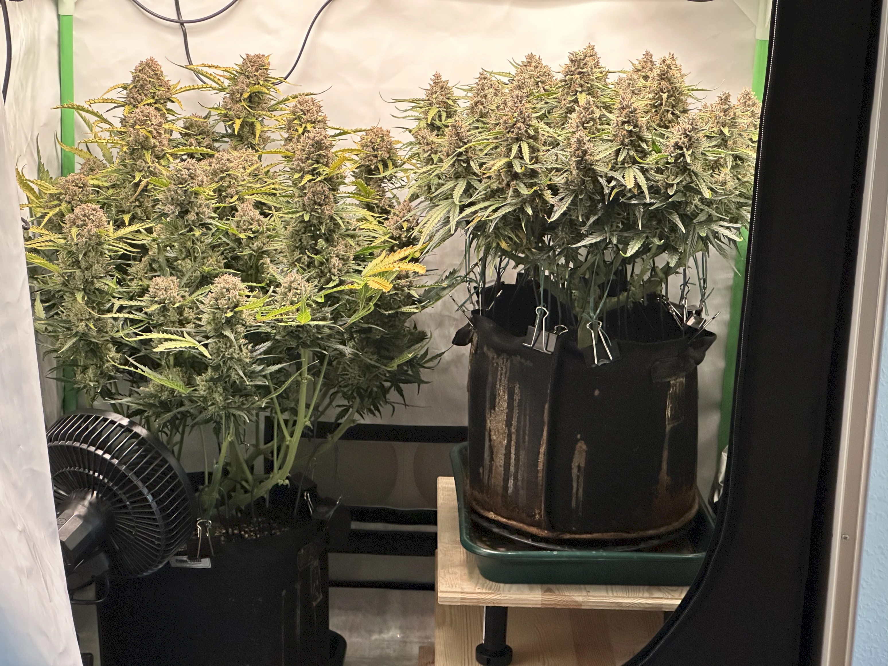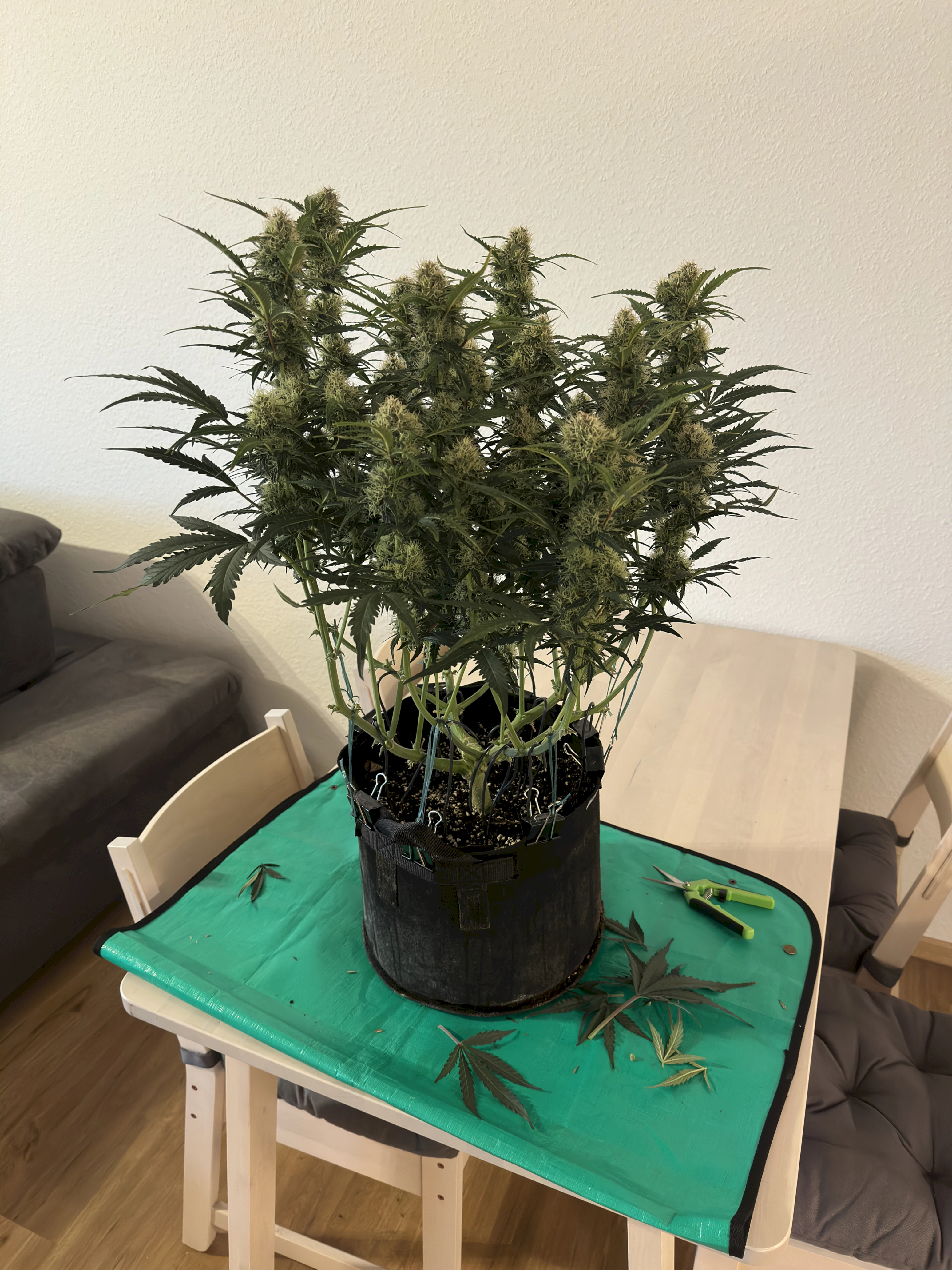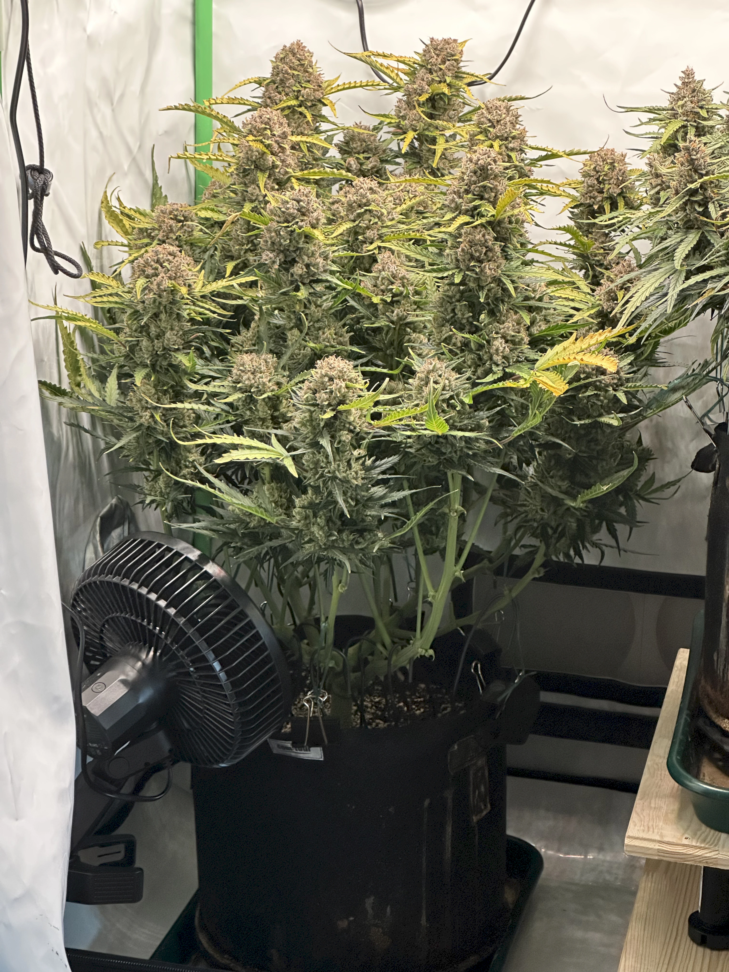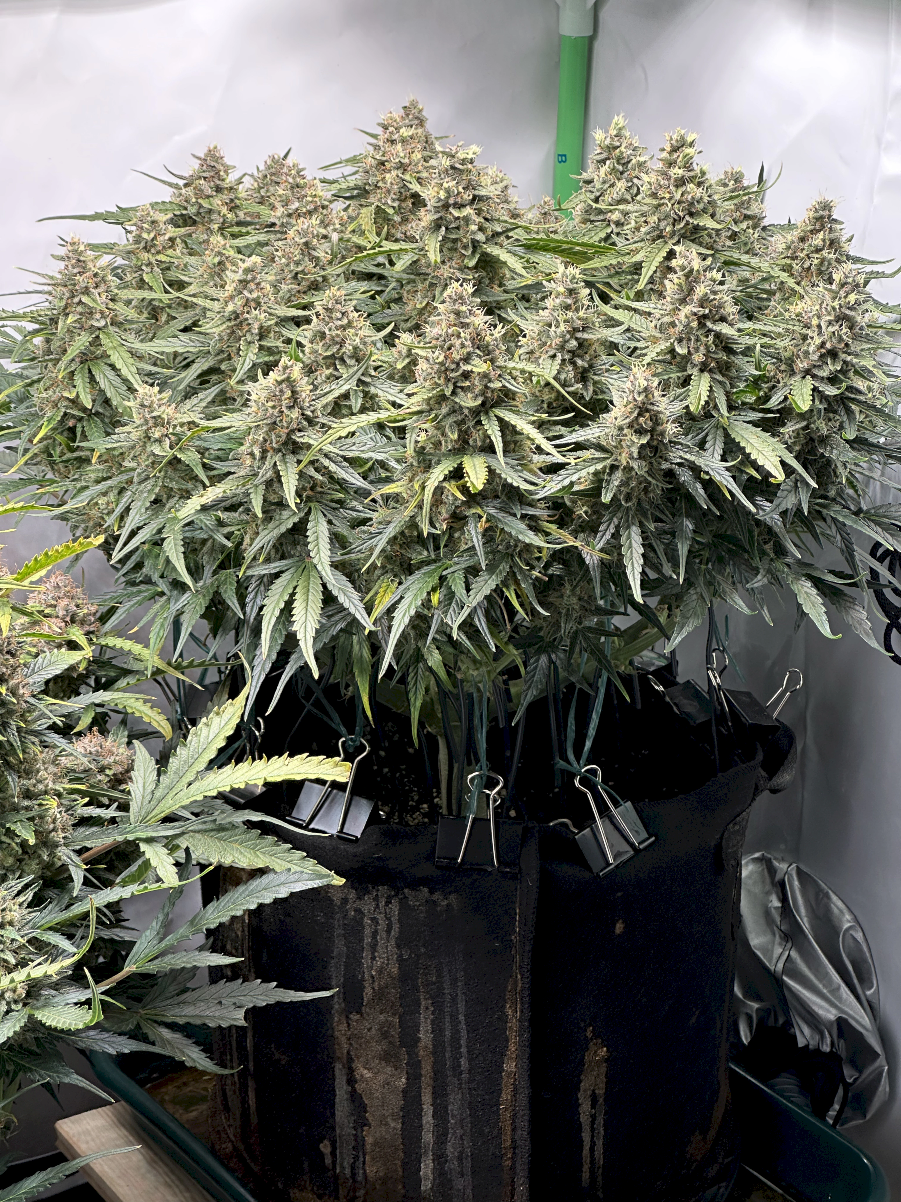 Ich hoffe, dass die rechte Pflanze bis dahin auch gut ausgereift ist, denn idealerweise wĂŒrde ich gerne eine gleichzeitige Ernte beider Pflanzen machen, um im Zelt trocknen zu können. Wir werden sehen
