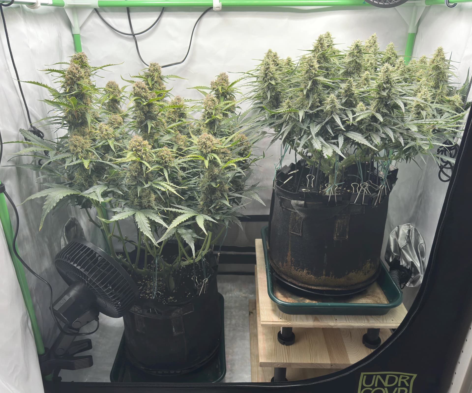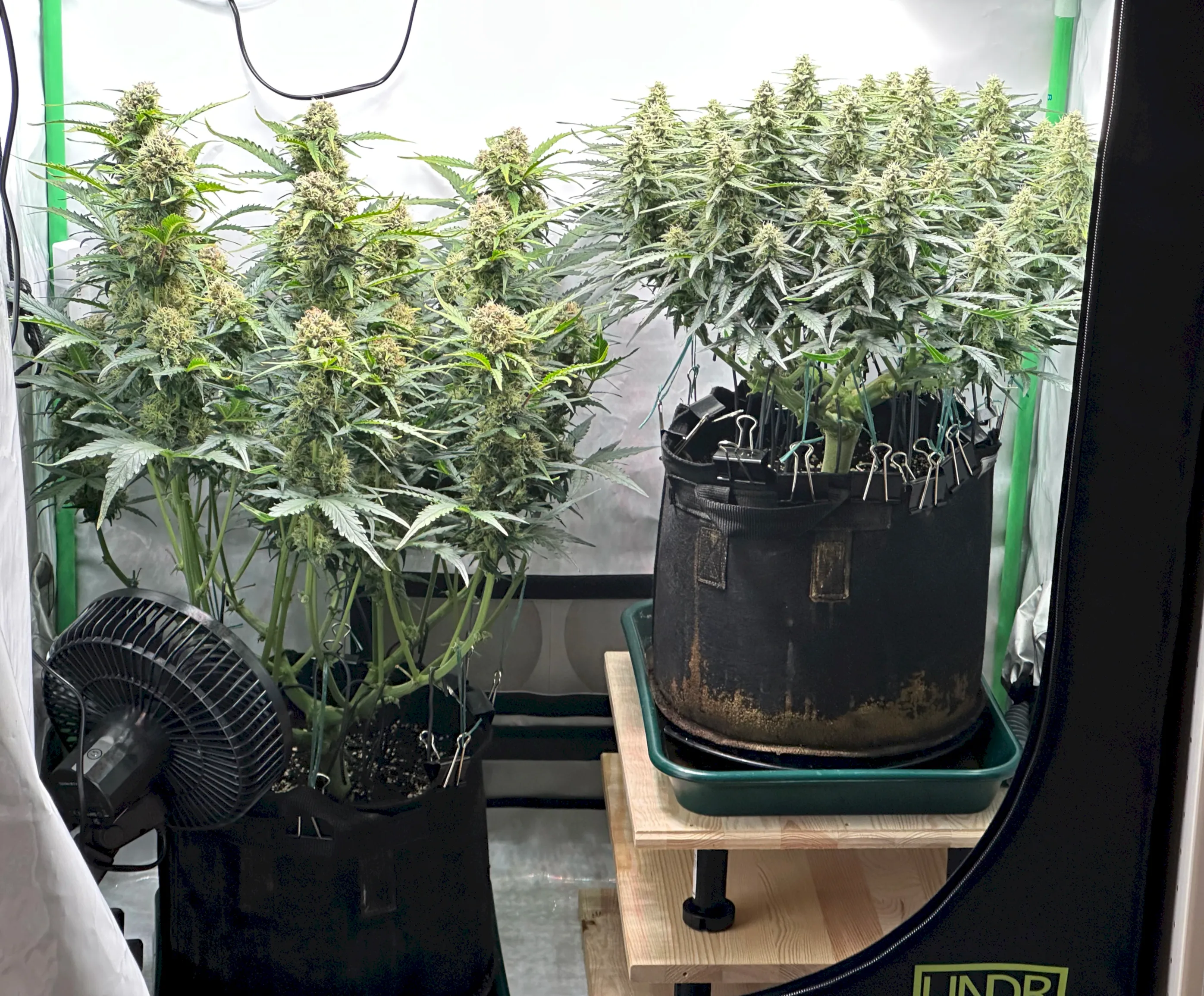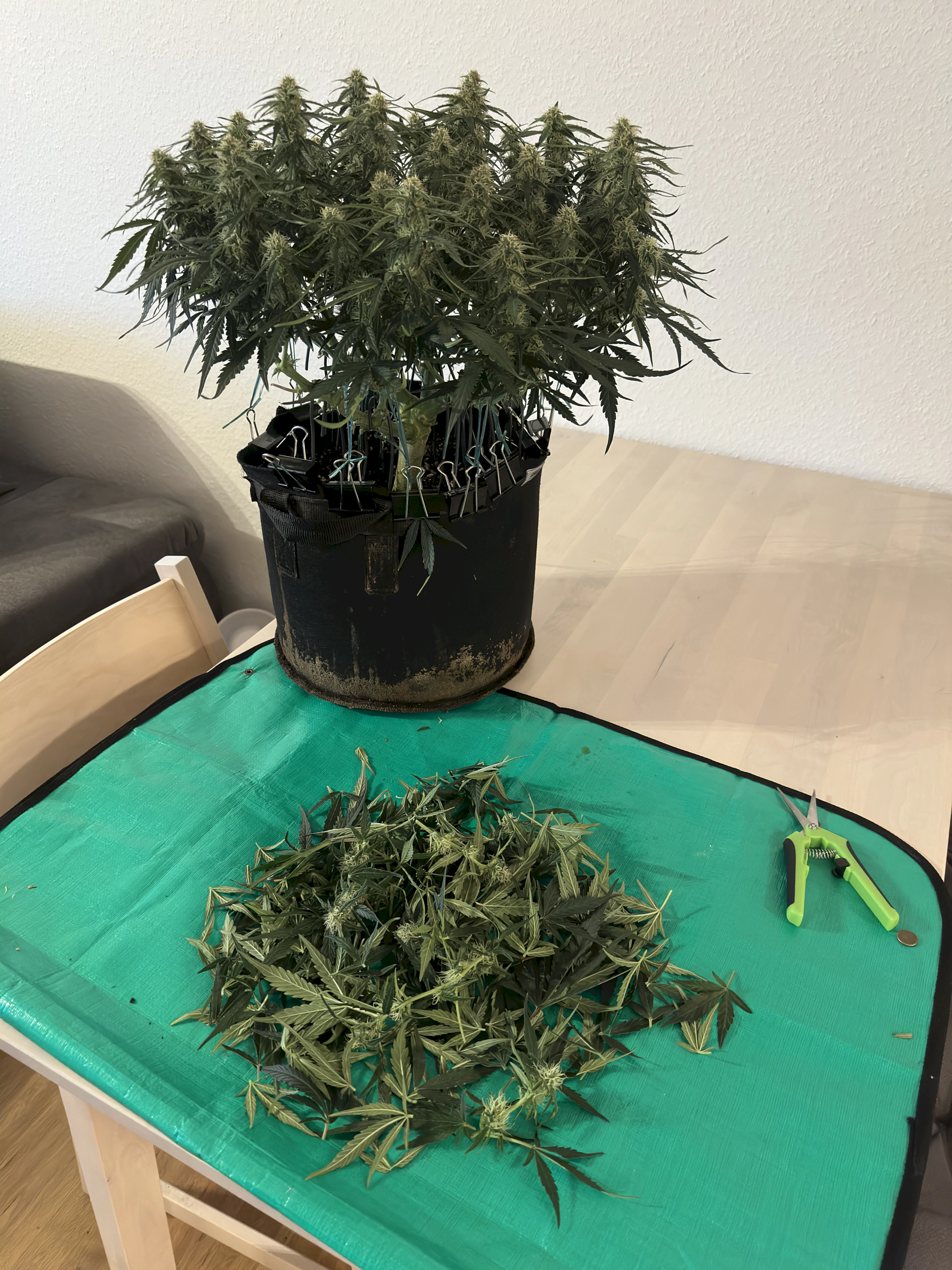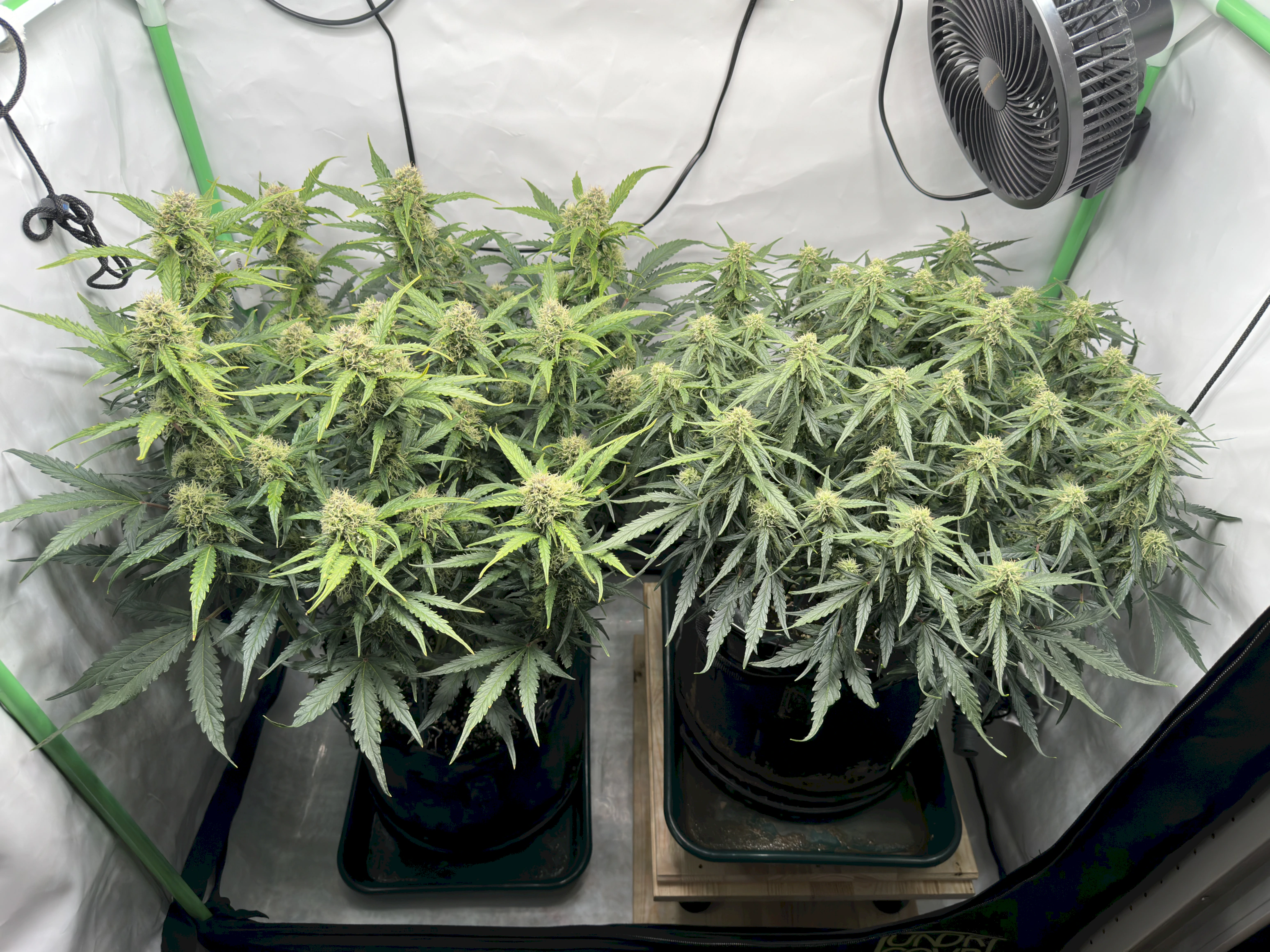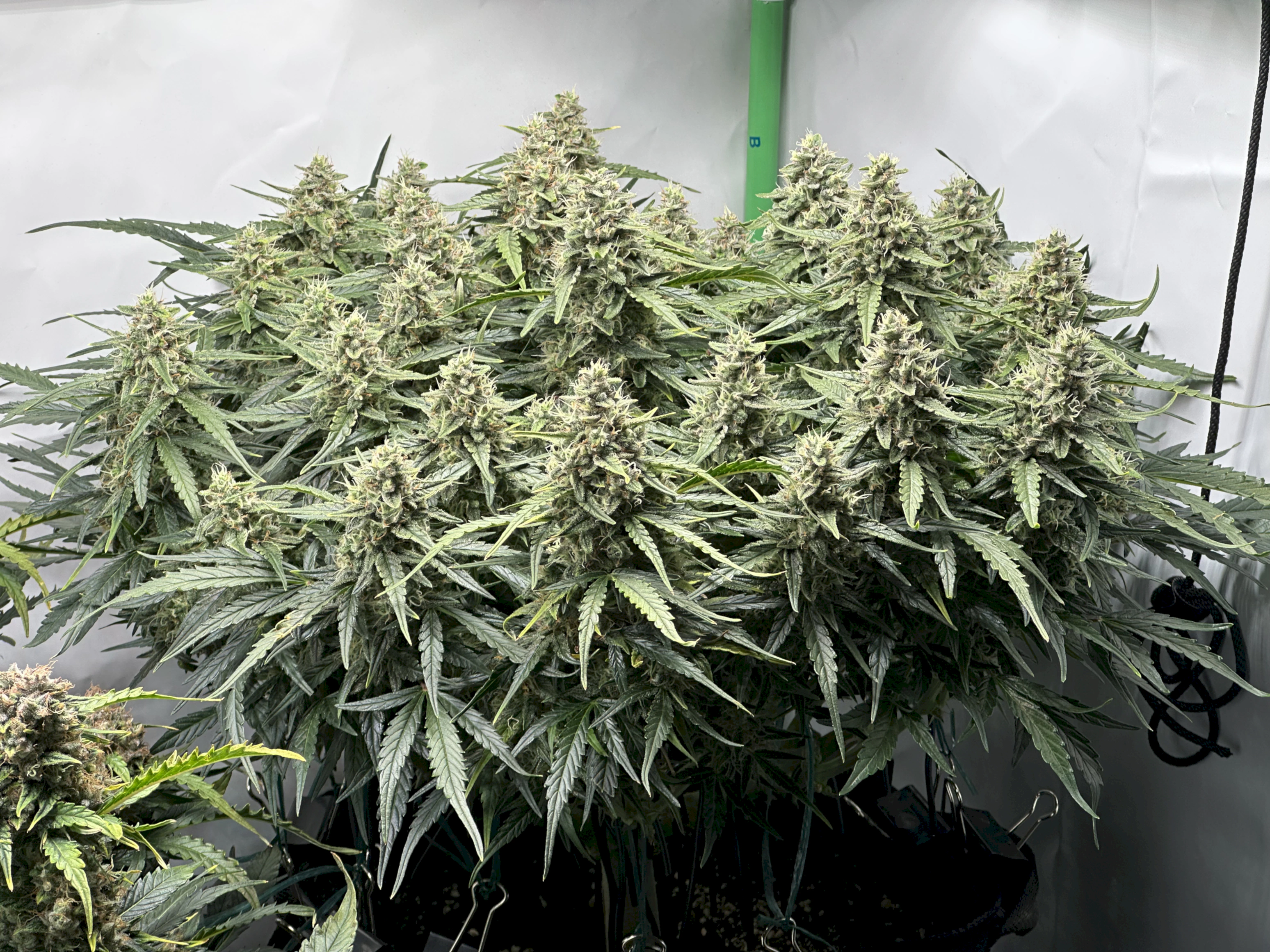 Ich hoffe, dass die rechte Pflanze bis dahin auch gut ausgereift ist, denn idealerweise wĂŒrde ich gerne eine gleichzeitige Ernte beider Pflanzen machen, um im Zelt trocknen zu können. Wir werden sehen