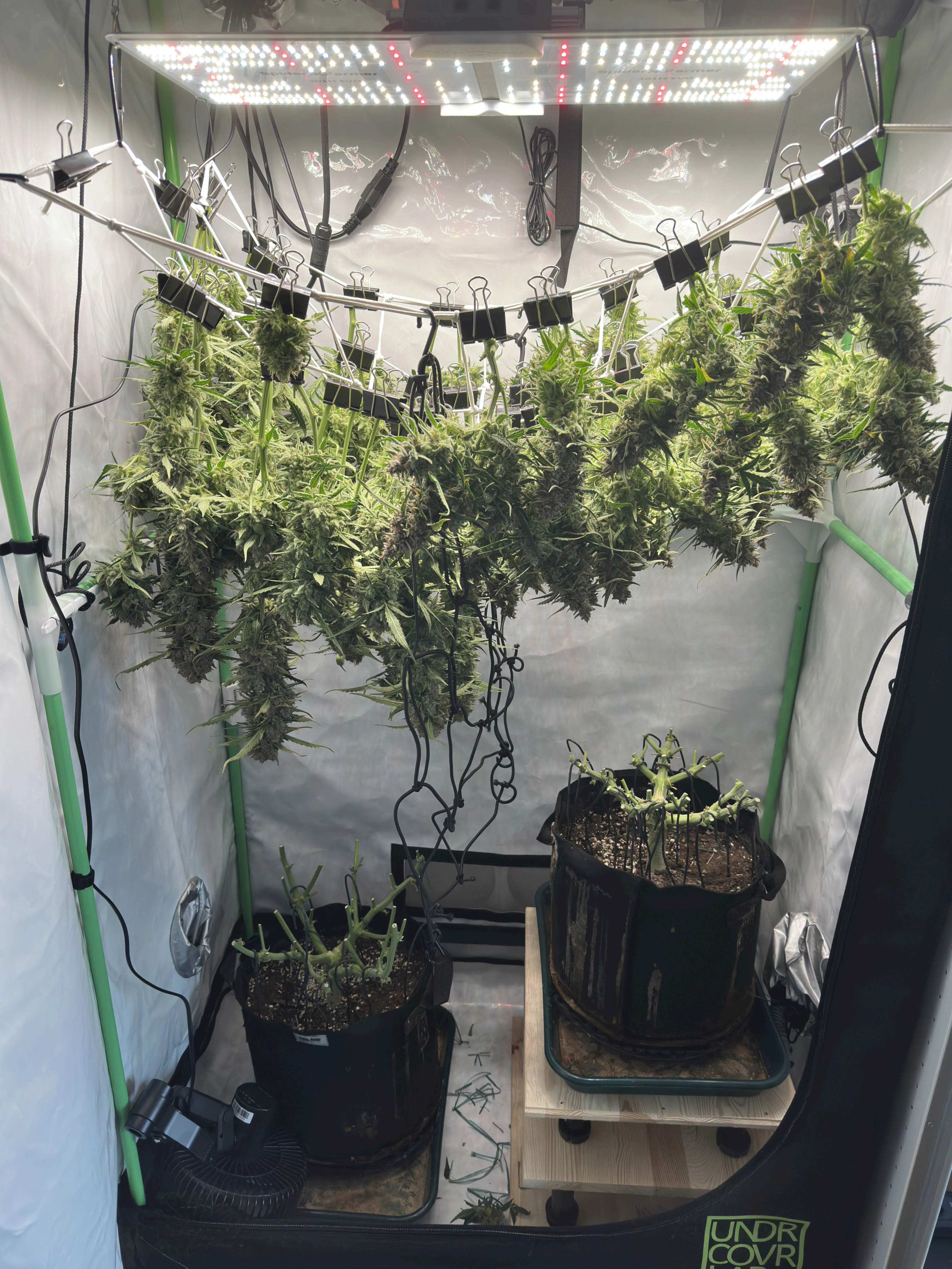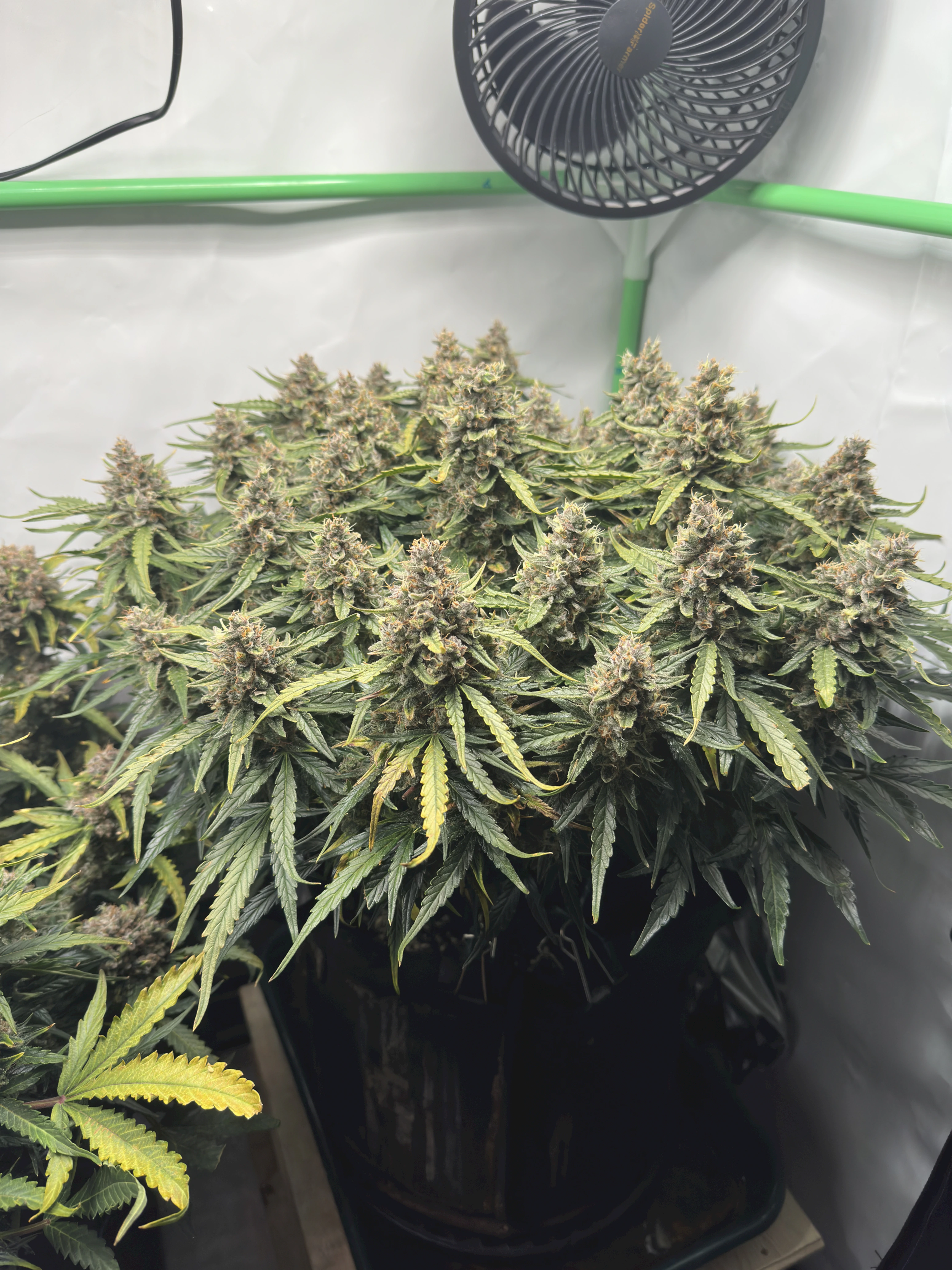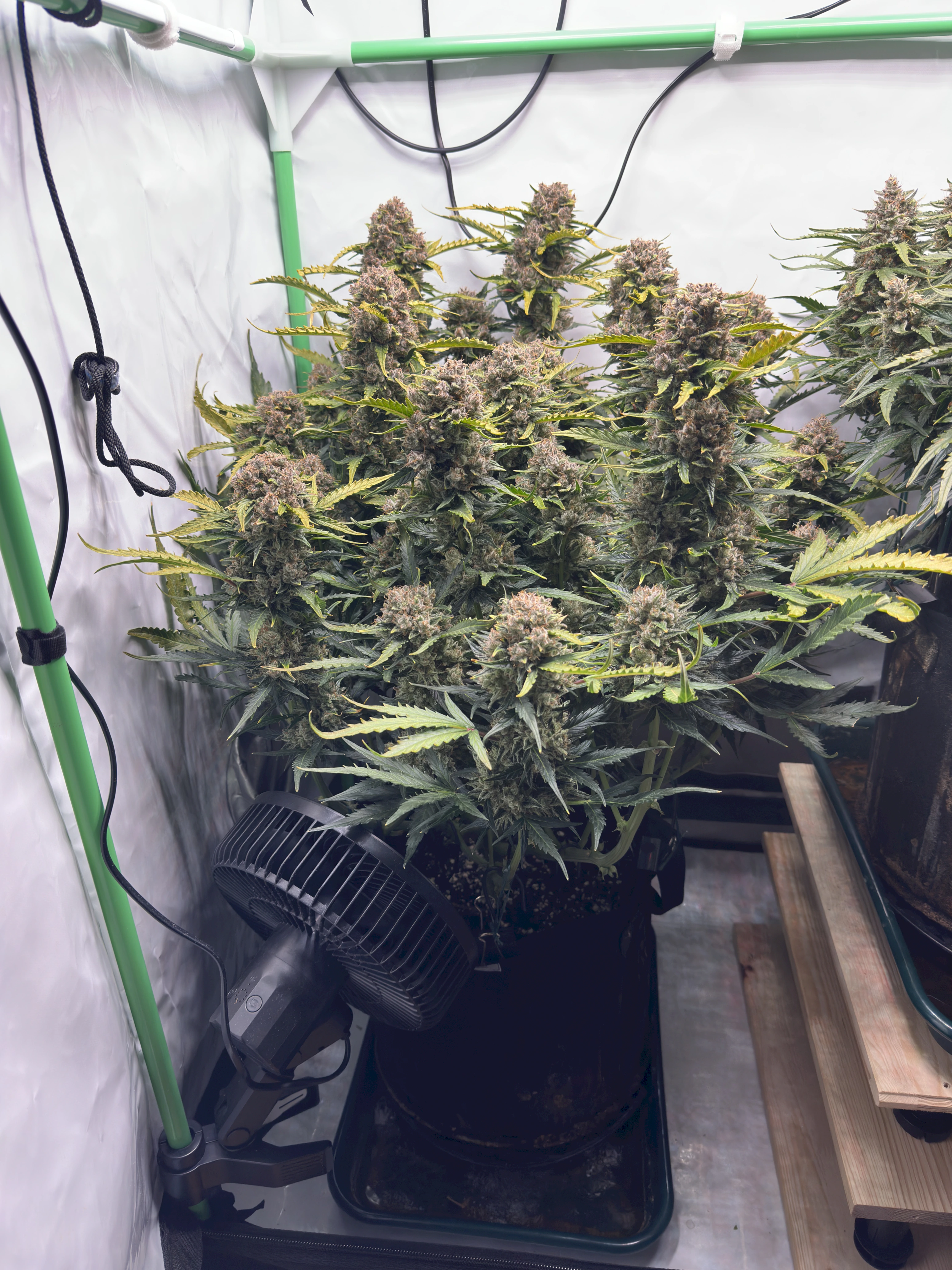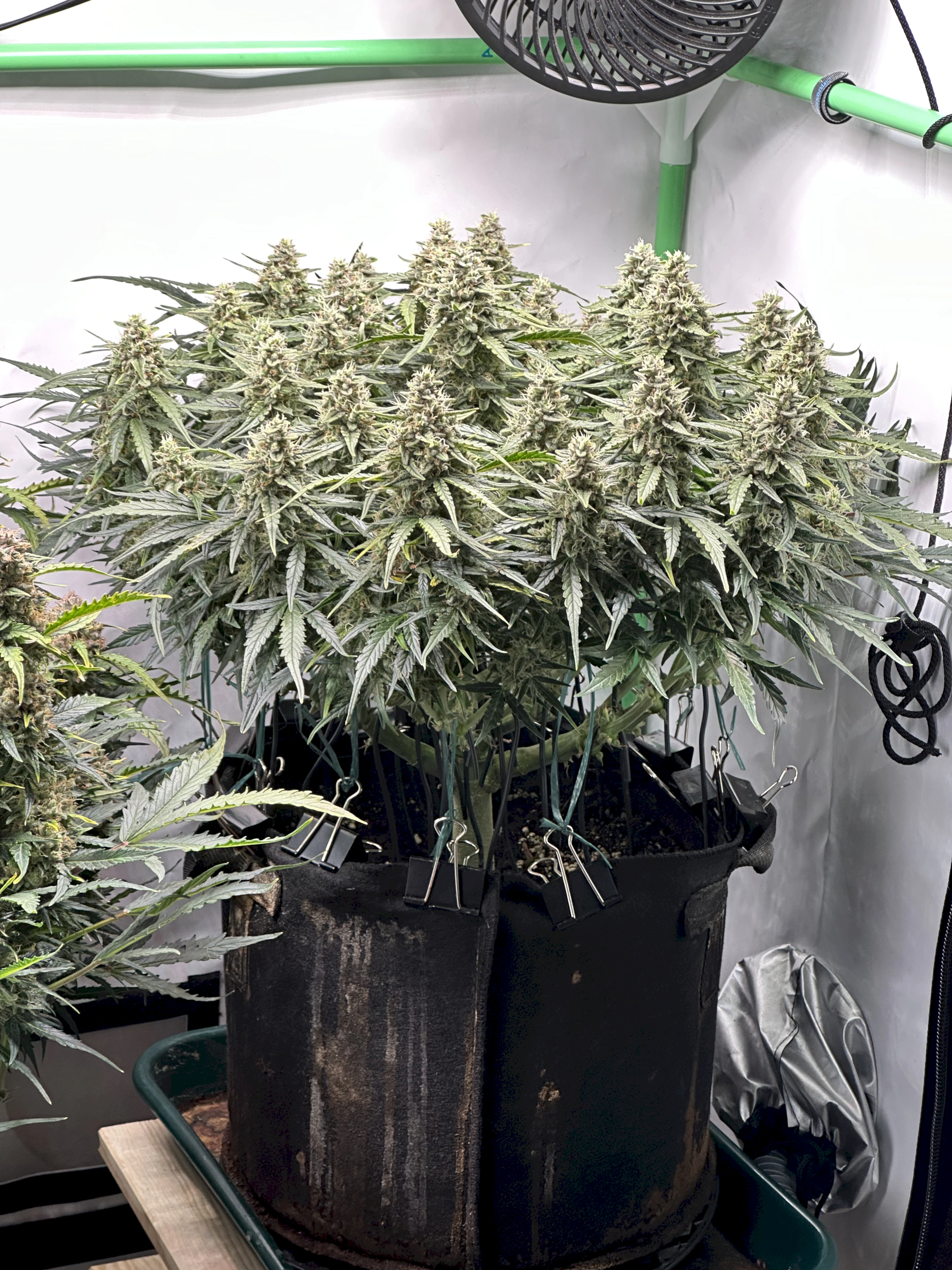 Ich hoffe, dass die rechte Pflanze bis dahin auch gut ausgereift ist, denn idealerweise wĂŒrde ich gerne eine gleichzeitige Ernte beider Pflanzen machen, um im Zelt trocknen zu können. Wir werden sehen