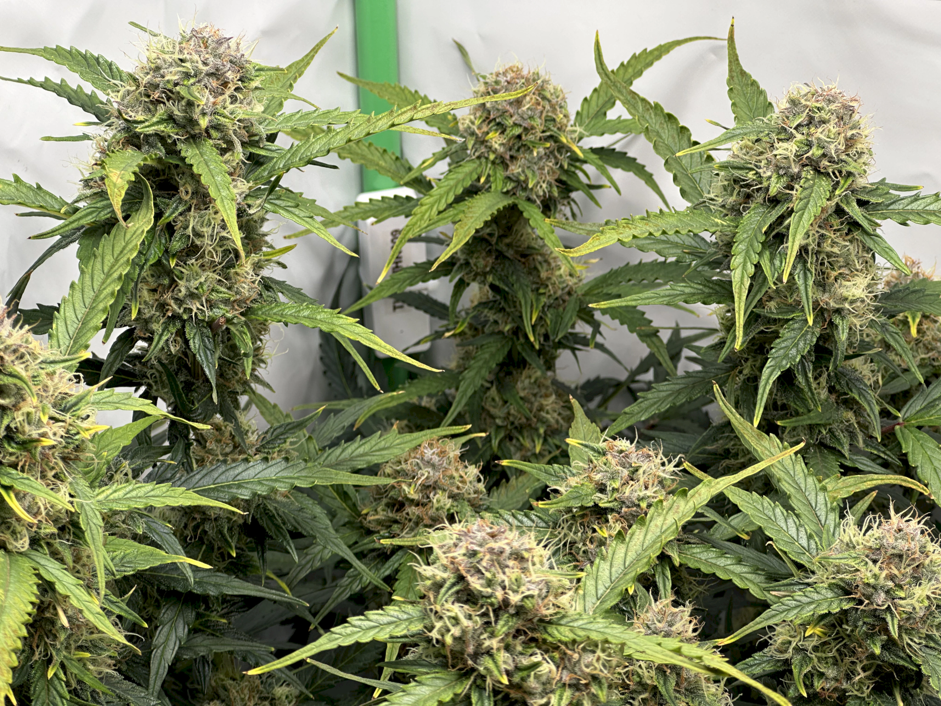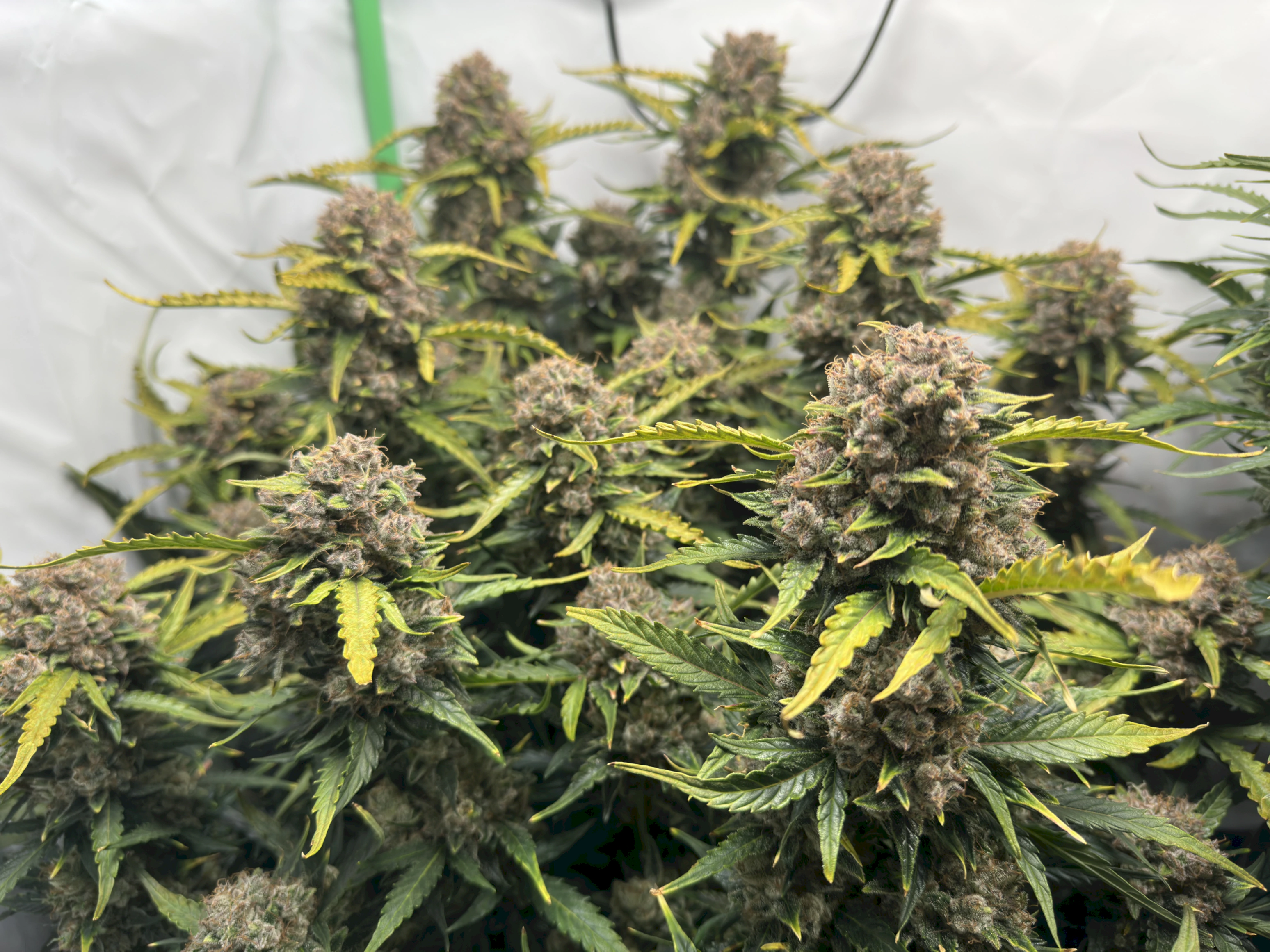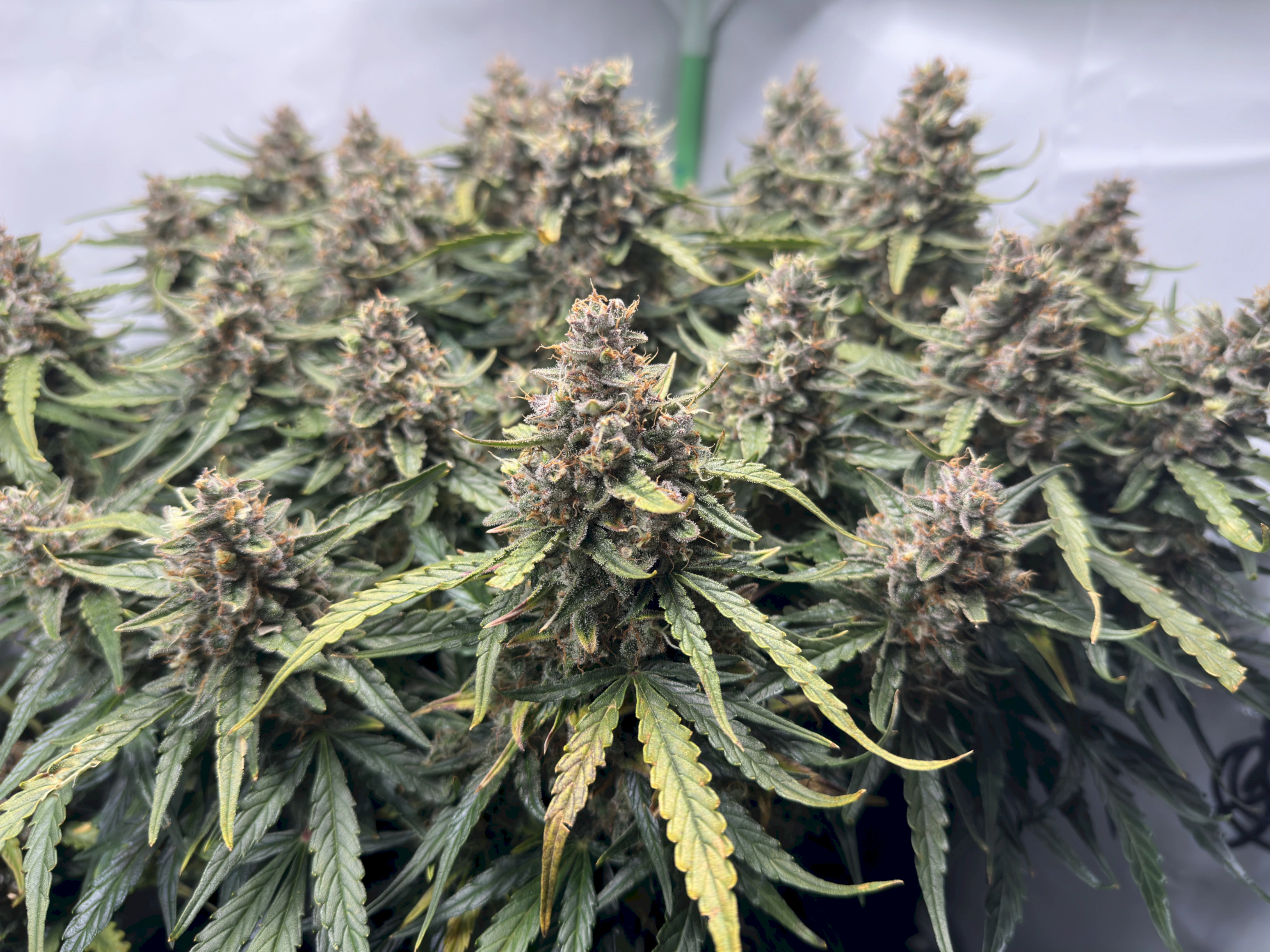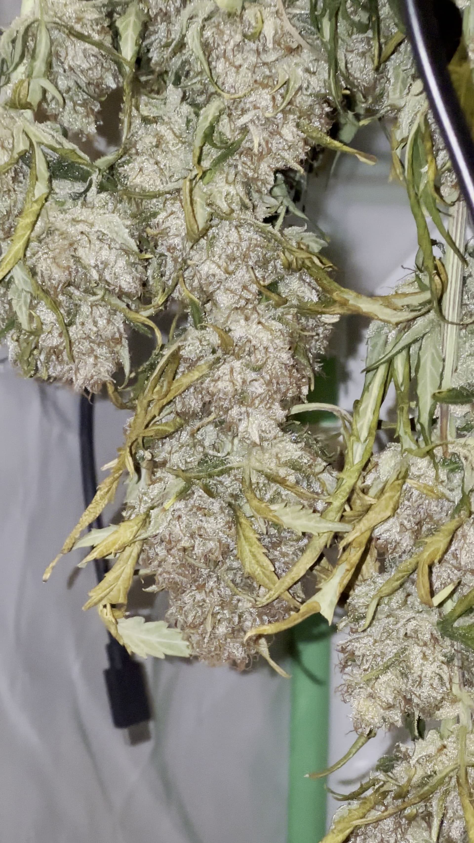 Die Trichome der rechten Pflanze sind weitestgehend milchig, mit vereinzelt bernsteinfarbenen. Vor der Ente werde ich da auch nochmal Fotos machen.