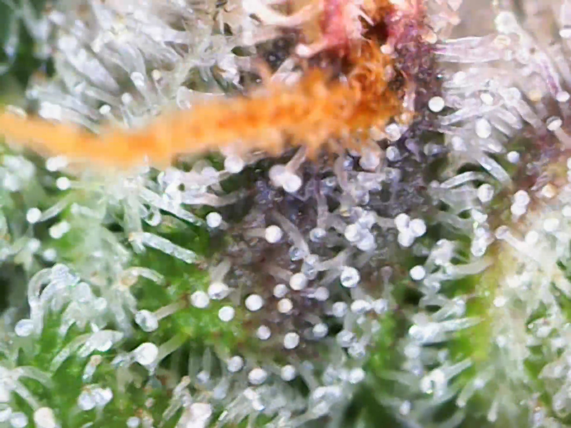 Die linke Pflanze könnte man jetzt schon ernten. Die Trichome sind fast alle bereits milchig, und es sind auch schon ein paar bernsteinfarbene dabei. Unten ein paar Bilder.
