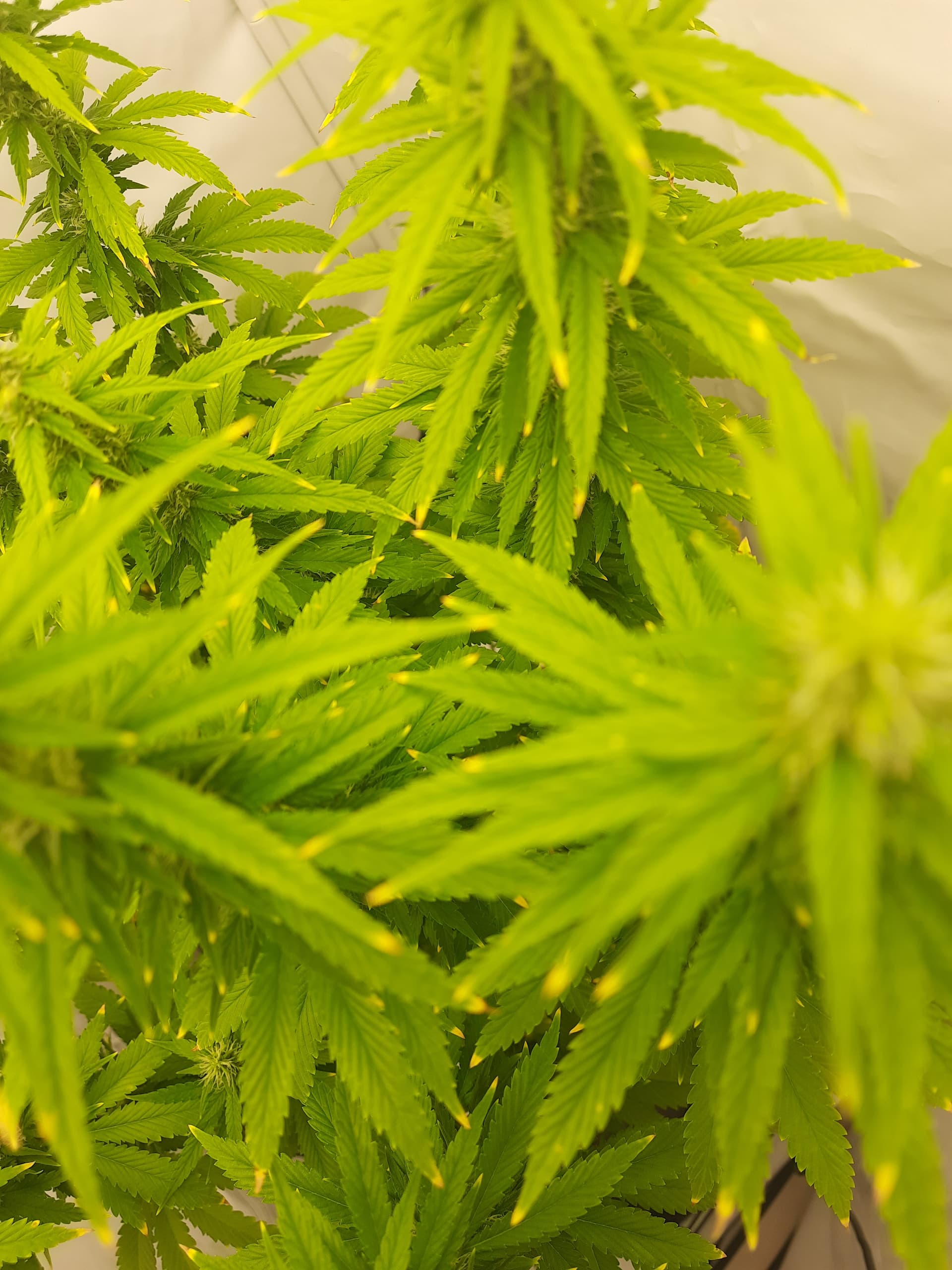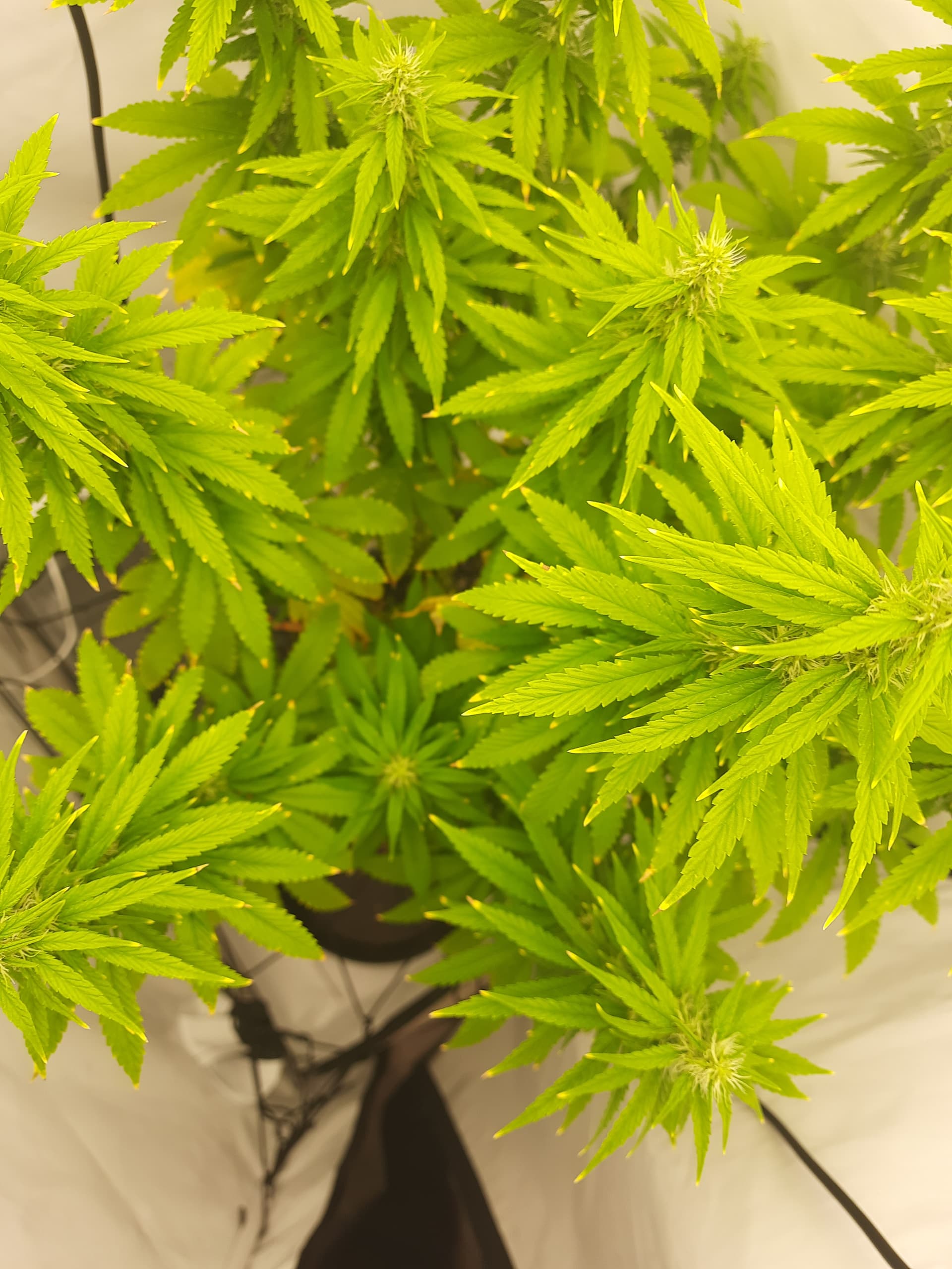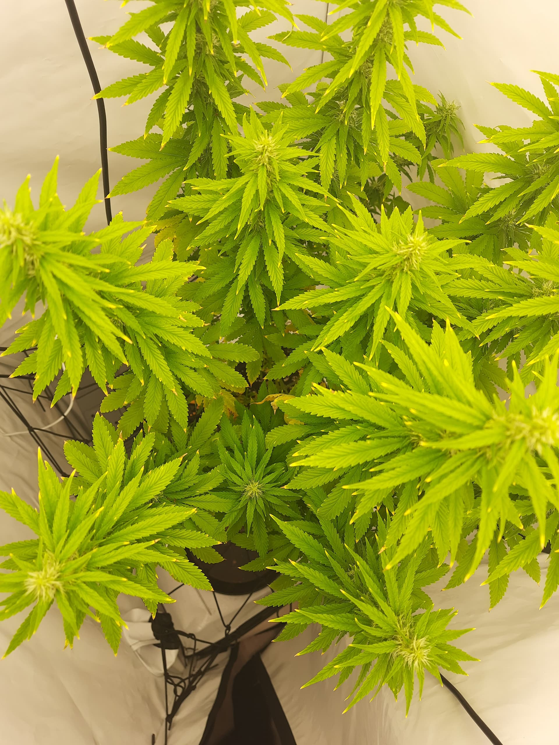 Anbaumethode = Scrog. Aber habe da ein wenig gefailed meiner Meinung nach. Wobei sich die Seitentriebe trotzdem prächtig entwickelt haben und sind 13 Köpfe
