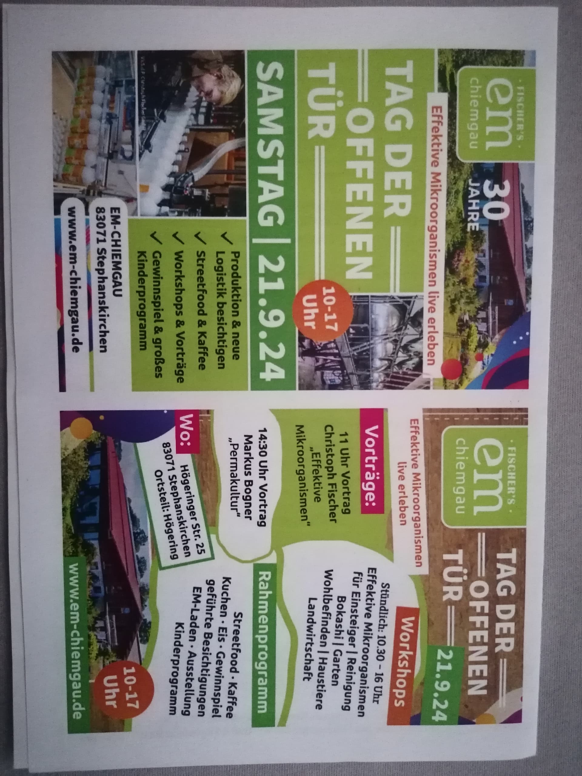 am Samstag ist bei EM-Aktiv Chiemgau der Tag der offenen Tür. Ich bin noch unsicher, ob ich gehen will. Es ist in meiner Nähe, also wäre es problemlos möglich. Hier der Flyer und das Programm: