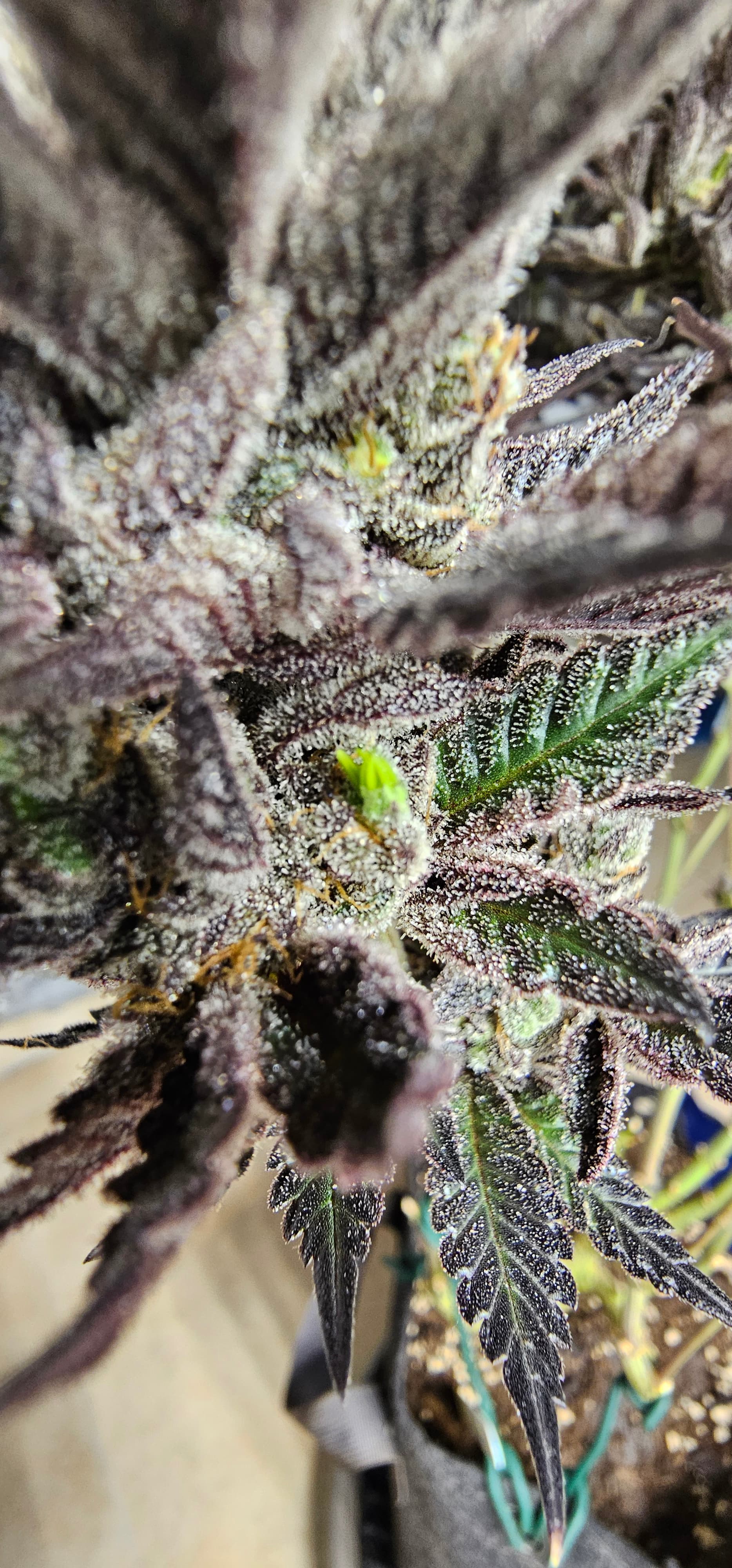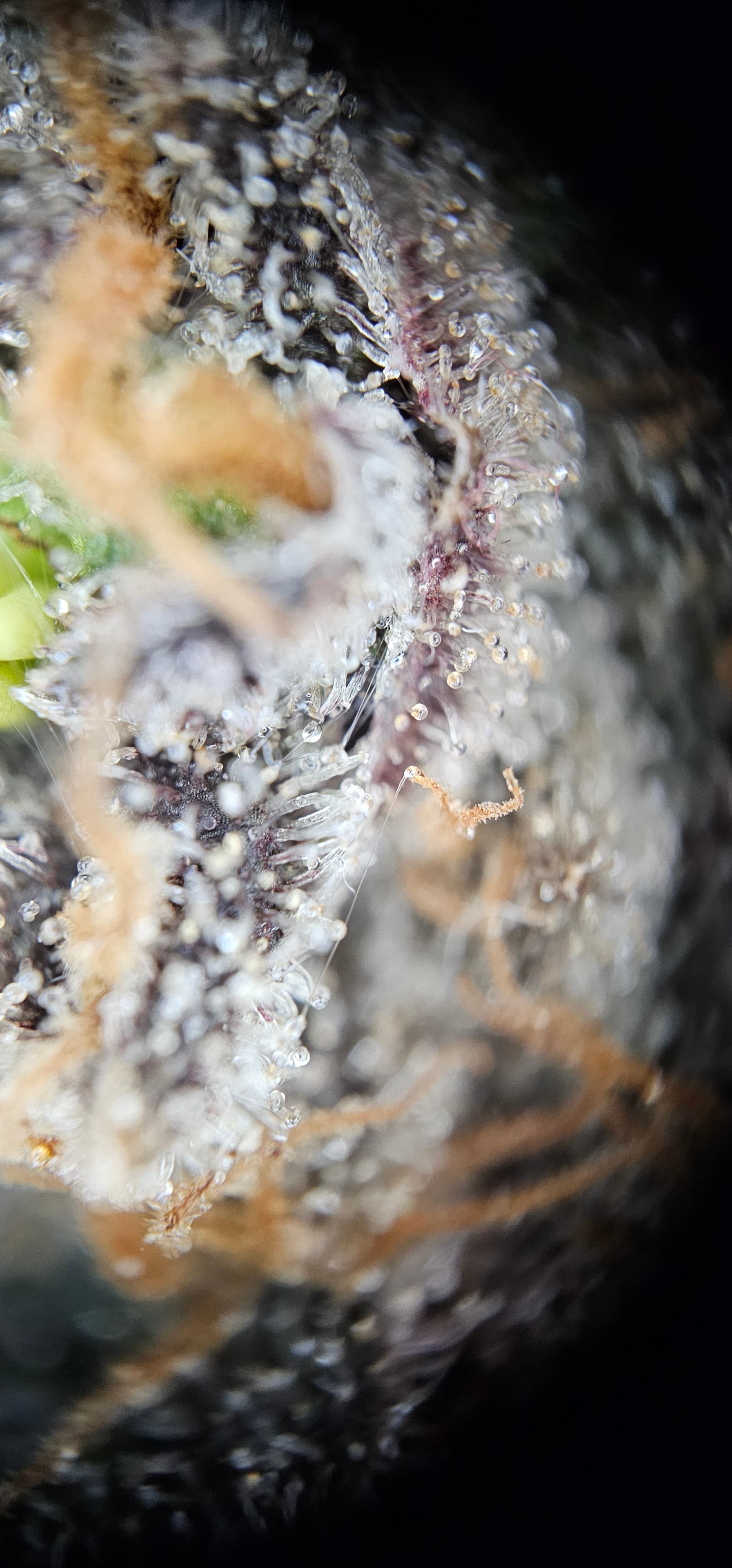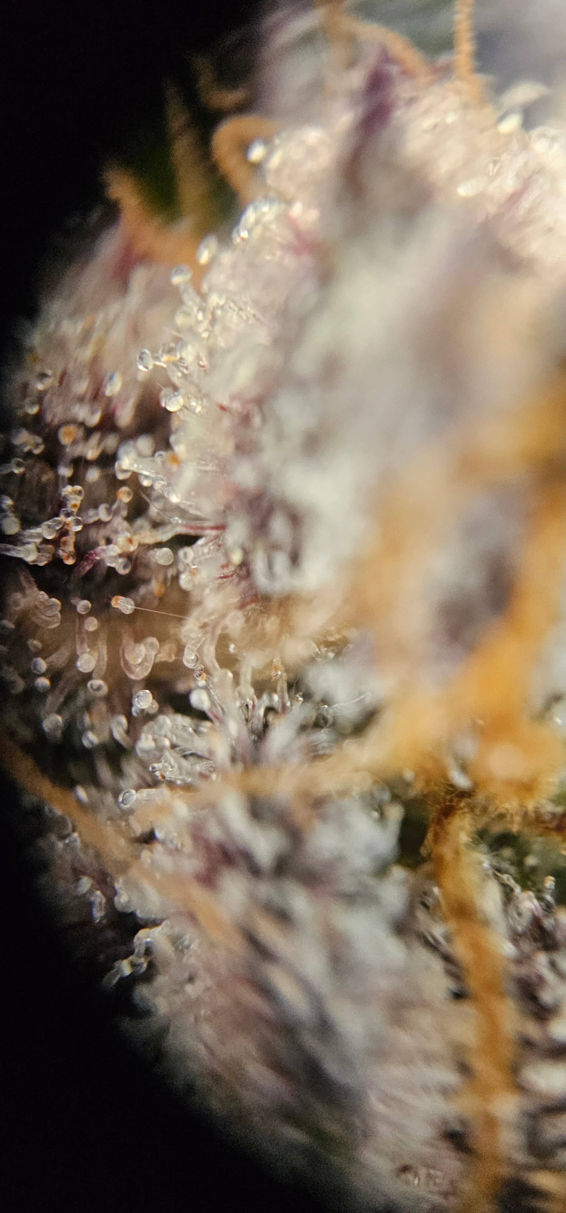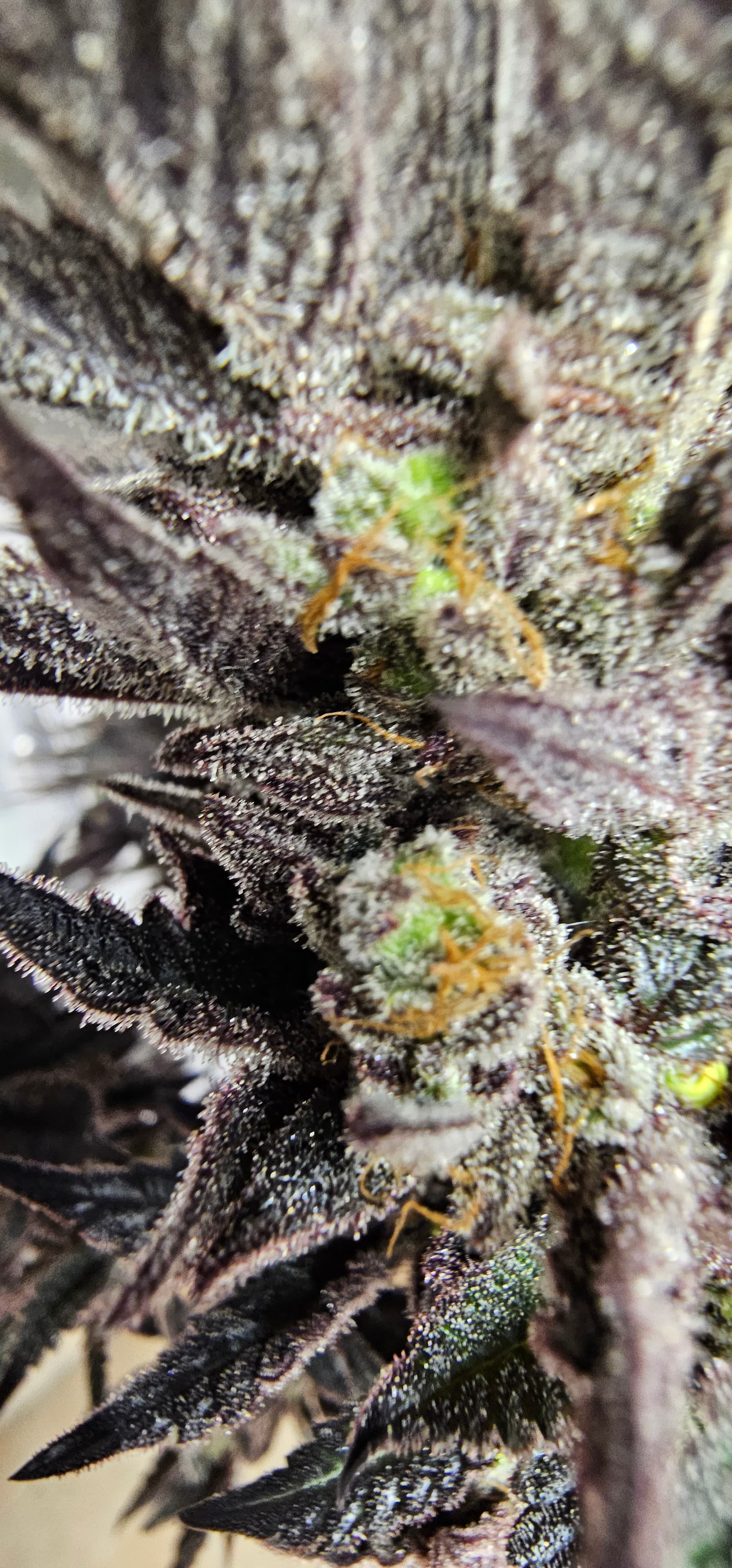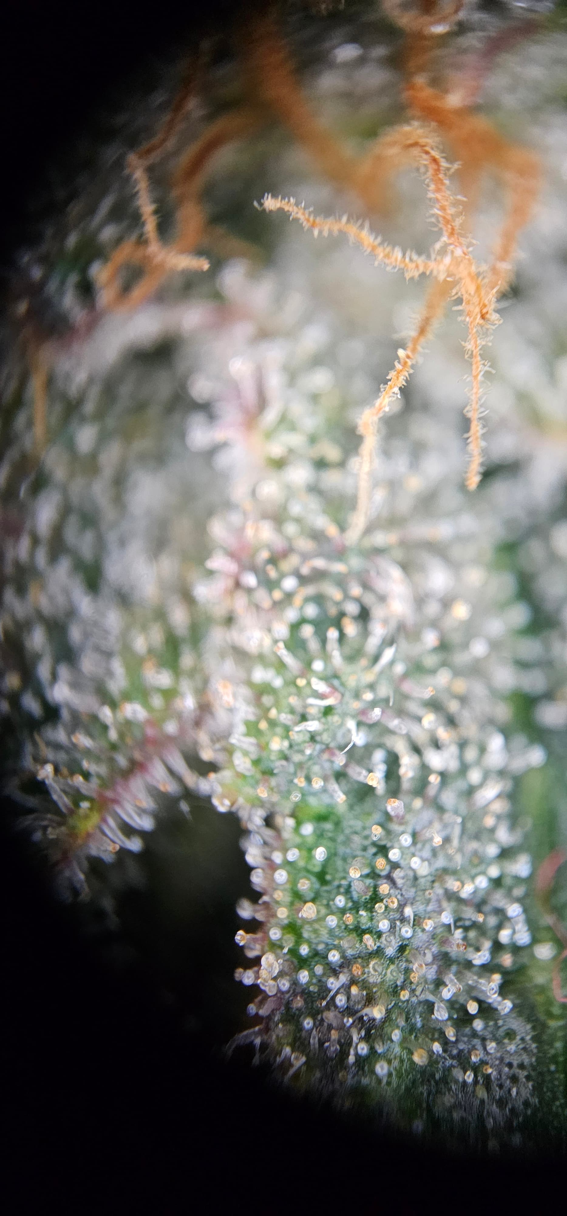 Durch die Fotos der Trichome, ist ein bisschen zu kurz gekommen, das die DynamiteDiesel einen richtigen Farbwechsel hingelegt hat die ist fast schwarz mit viel Schnee darauf.