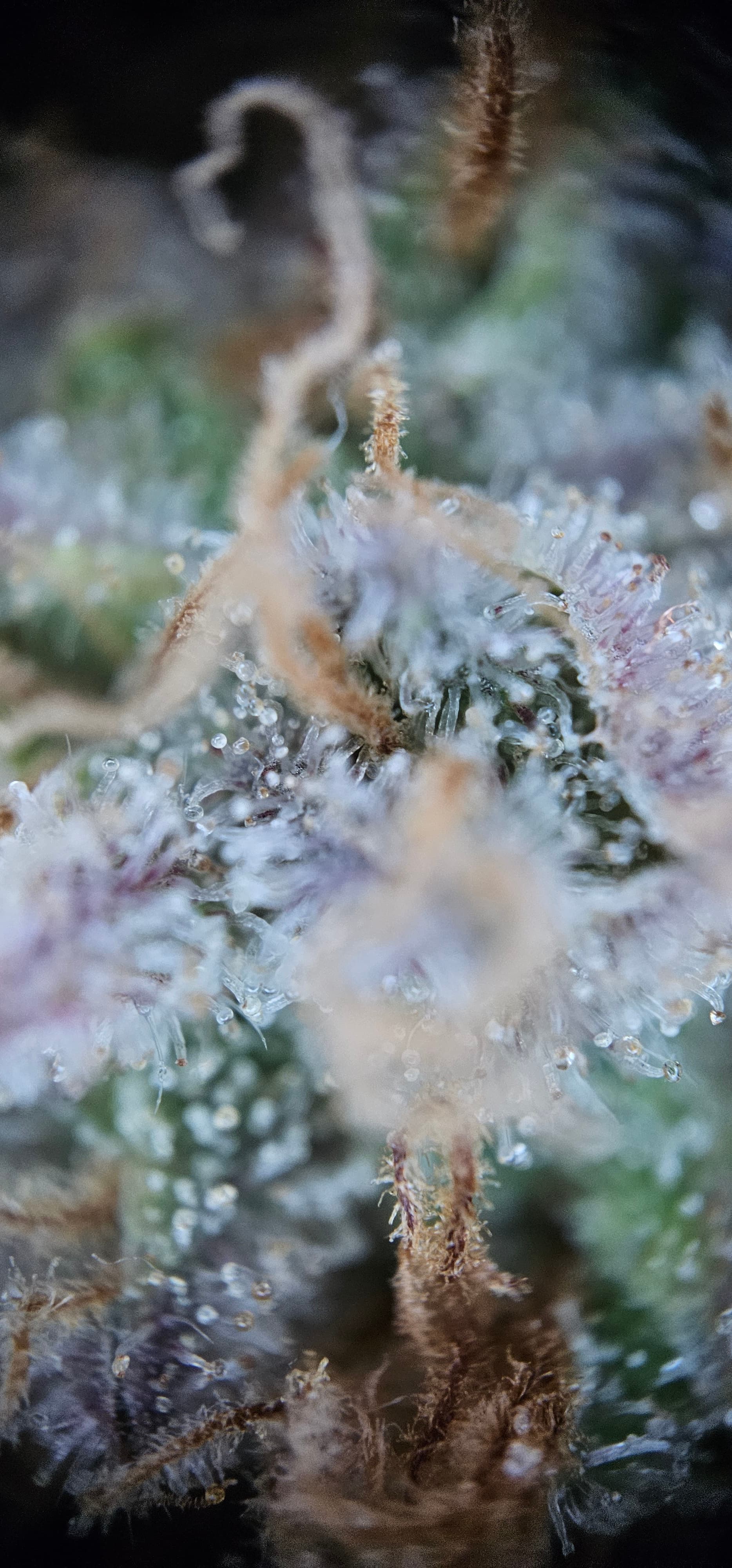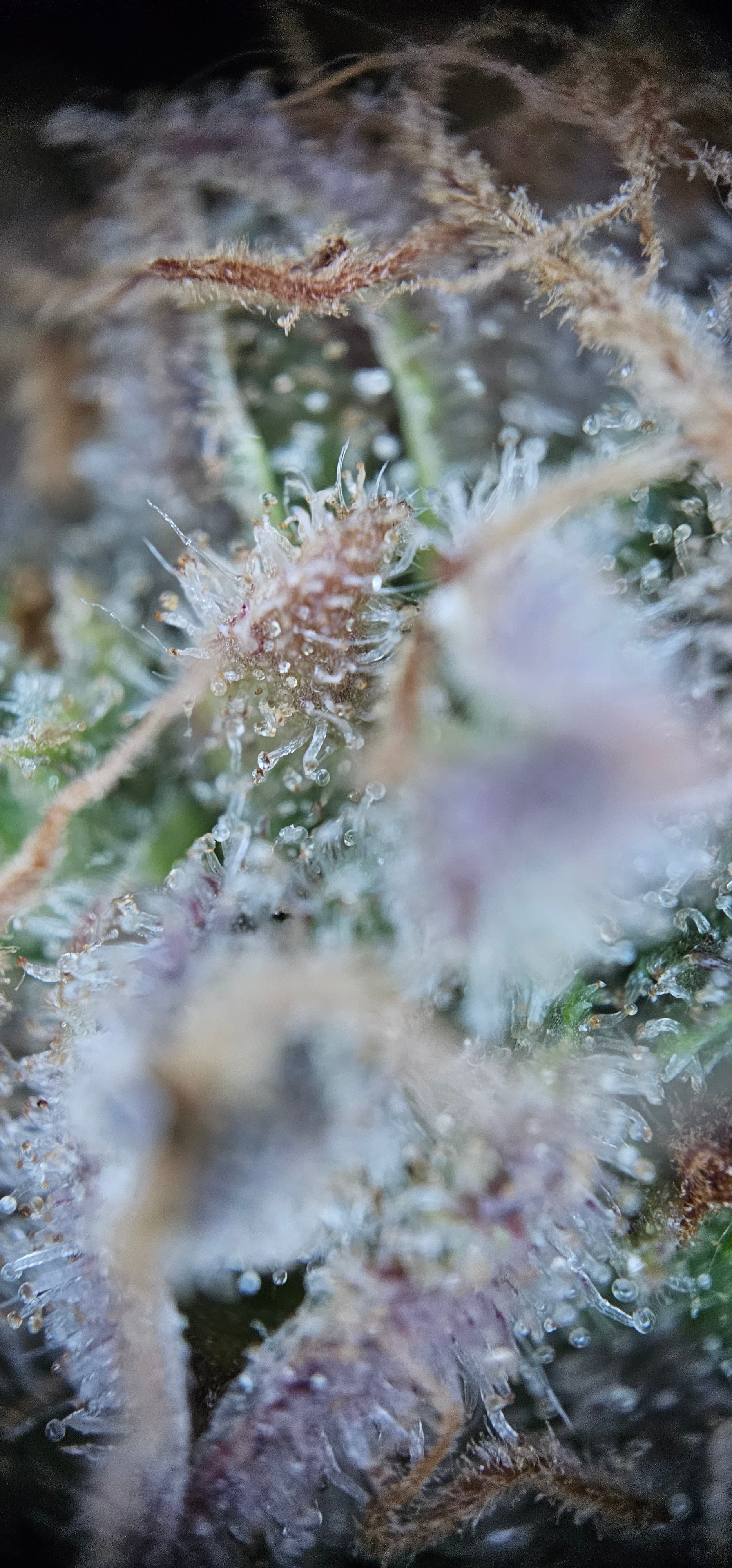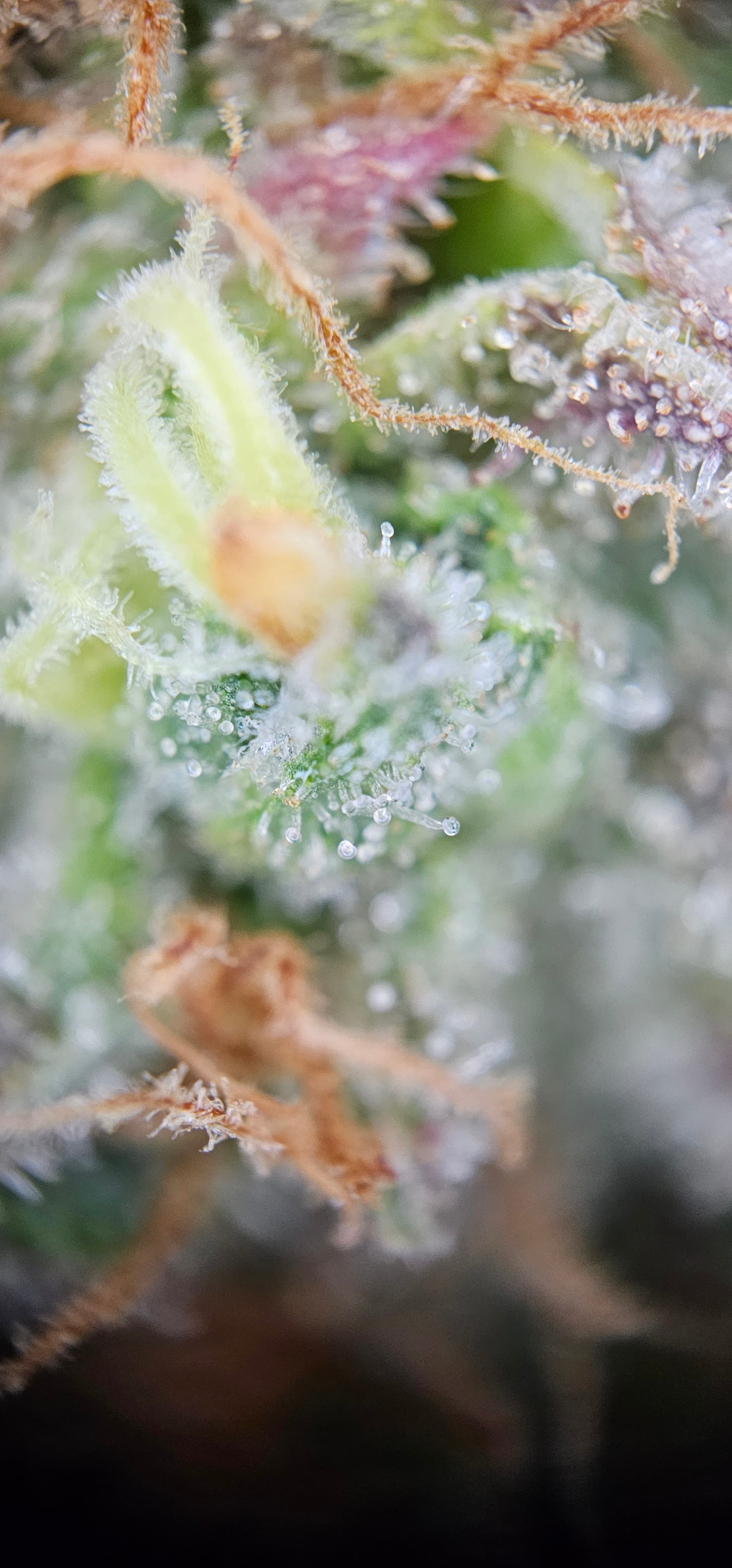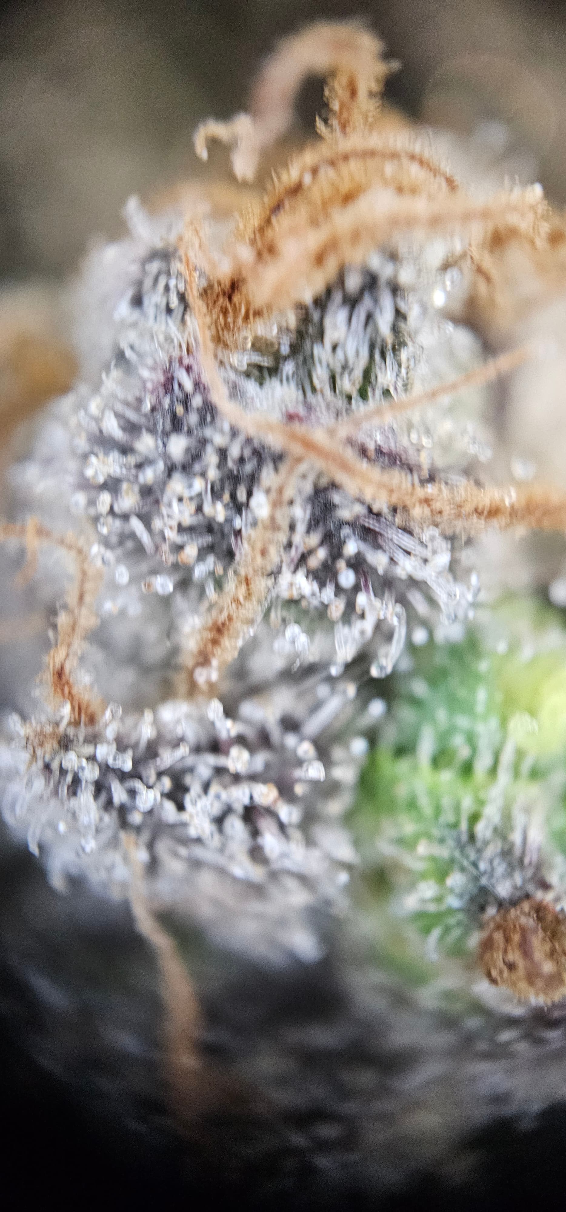 Durch die Fotos der Trichome, ist ein bisschen zu kurz gekommen, das die DynamiteDiesel einen richtigen Farbwechsel hingelegt hat die ist fast schwarz mit viel Schnee darauf.
