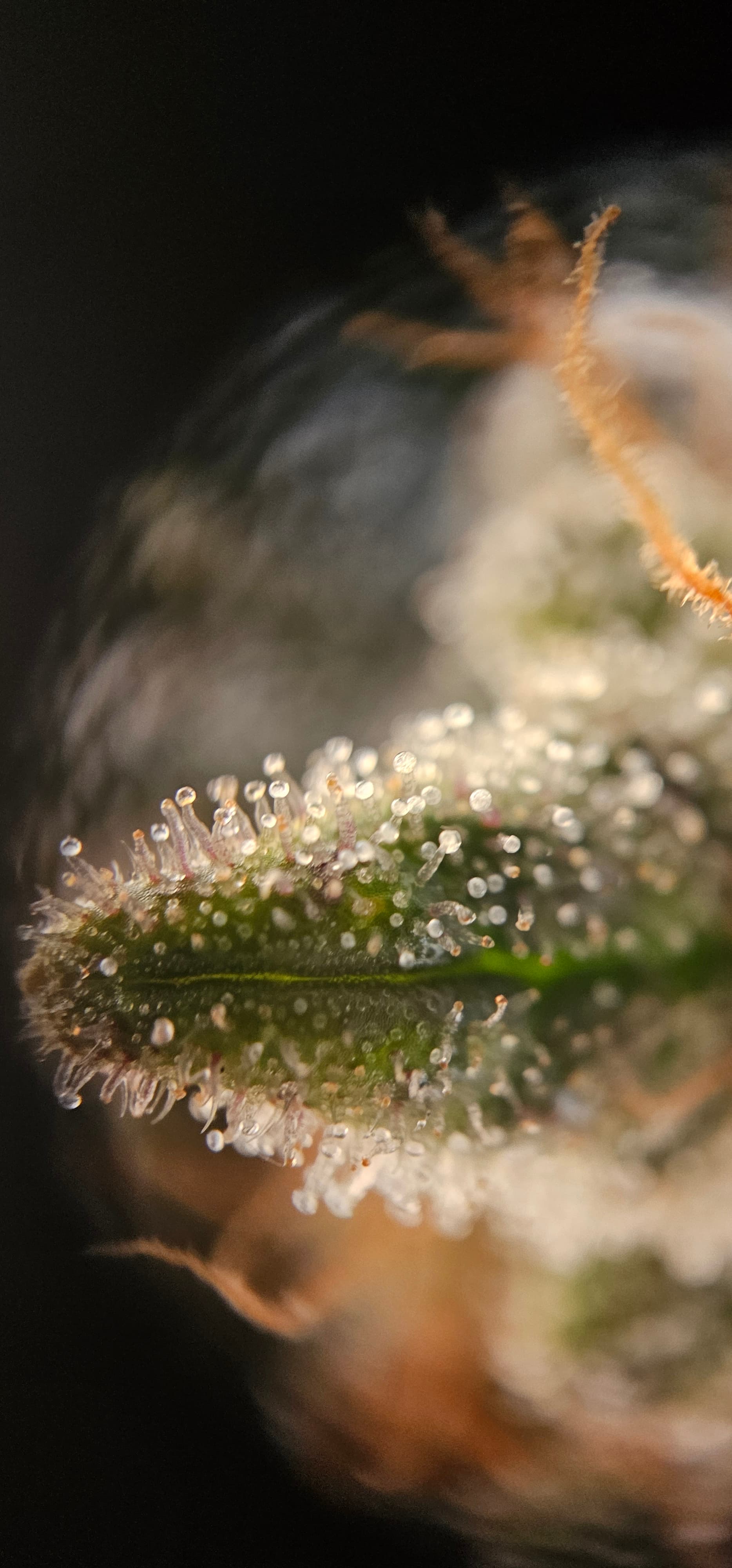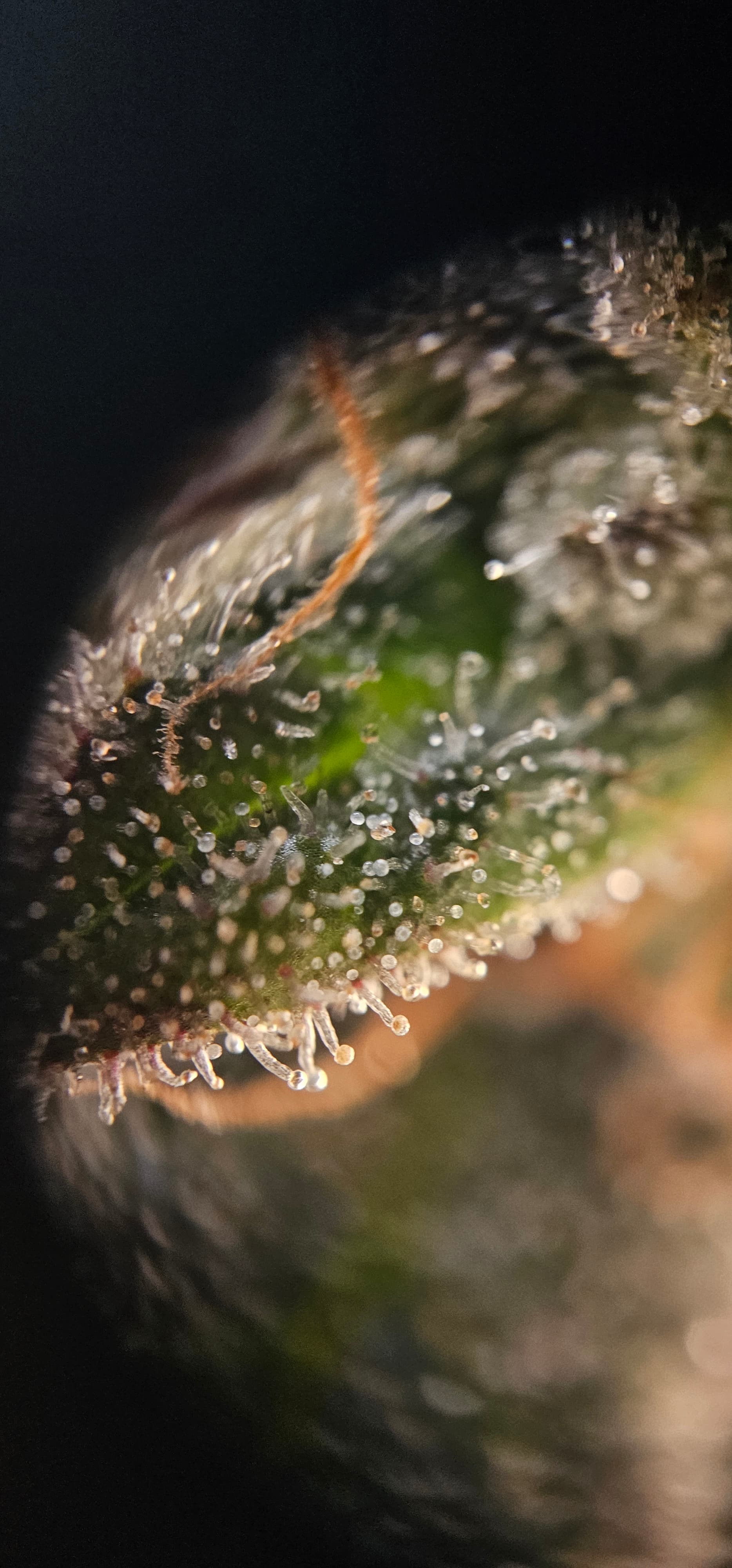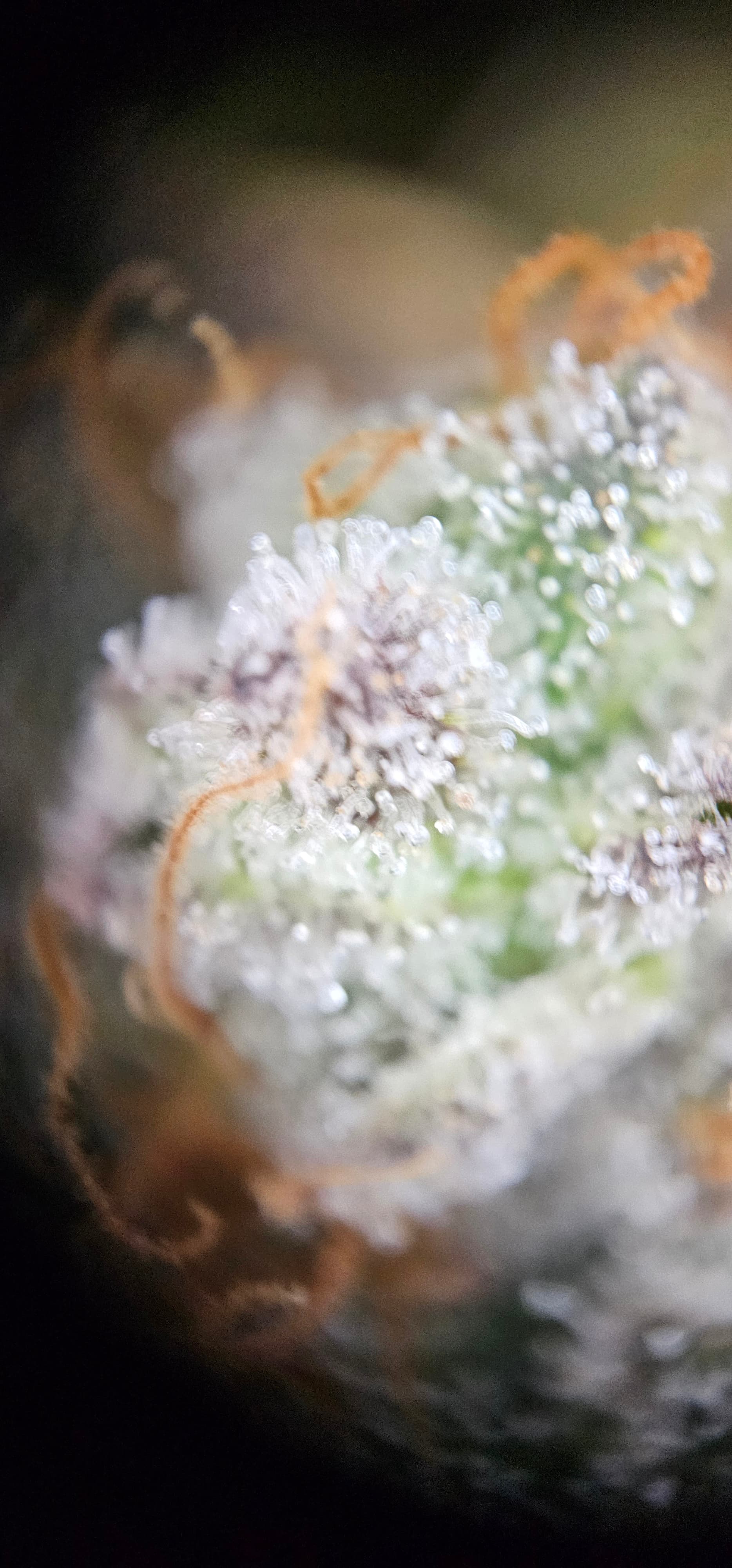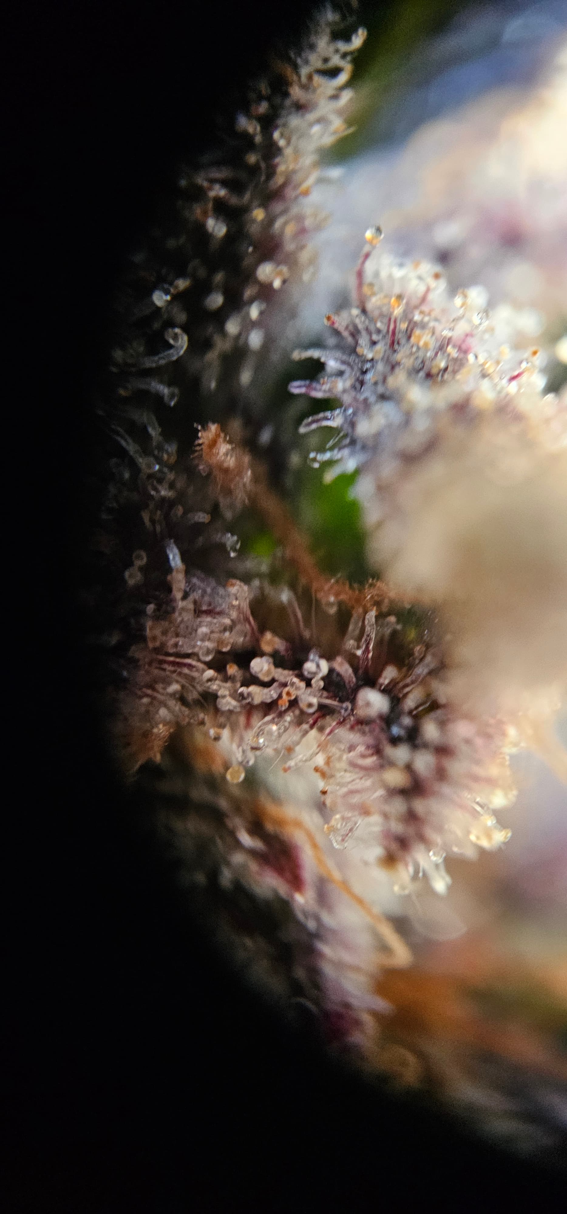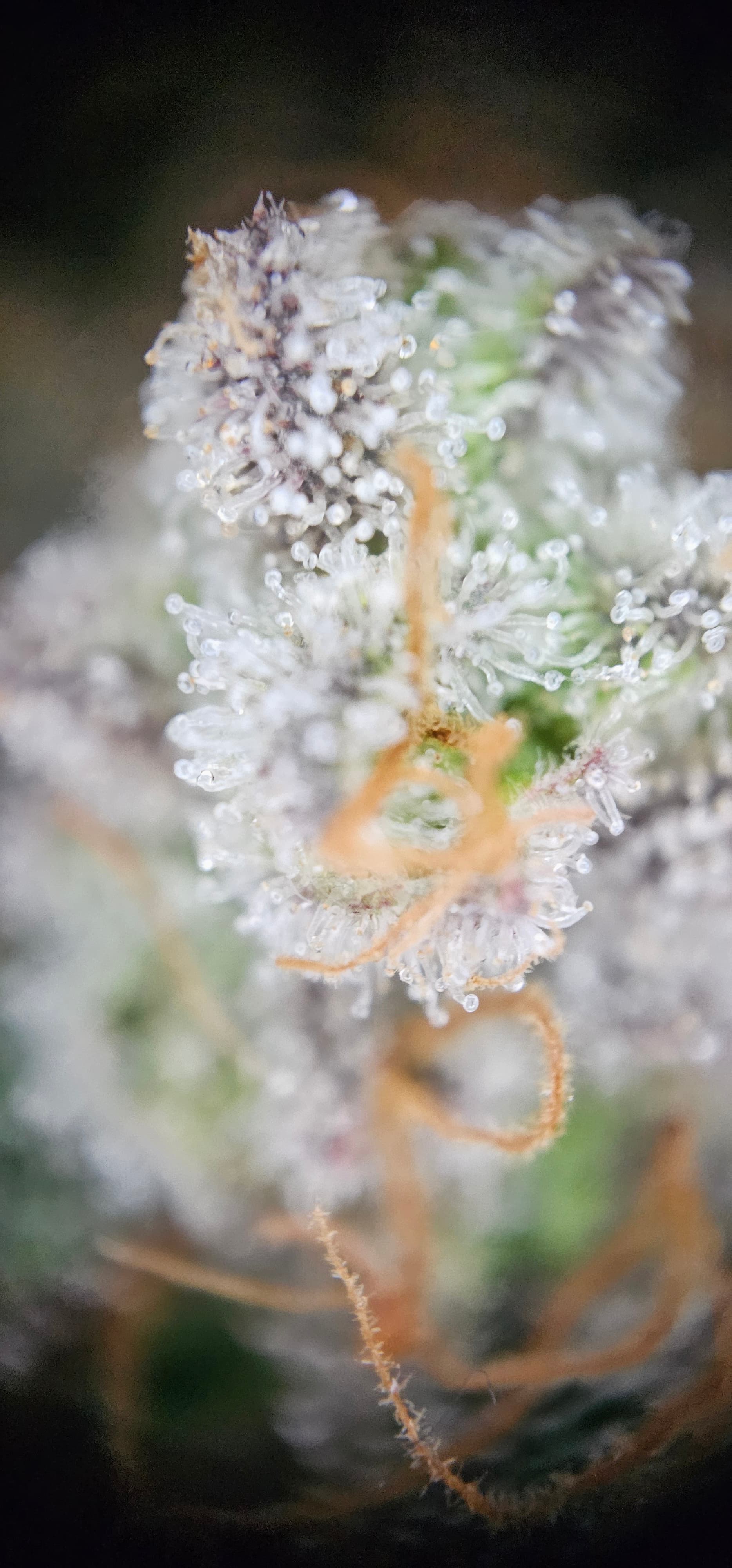 Durch die Fotos der Trichome, ist ein bisschen zu kurz gekommen, das die DynamiteDiesel einen richtigen Farbwechsel hingelegt hat die ist fast schwarz mit viel Schnee darauf.