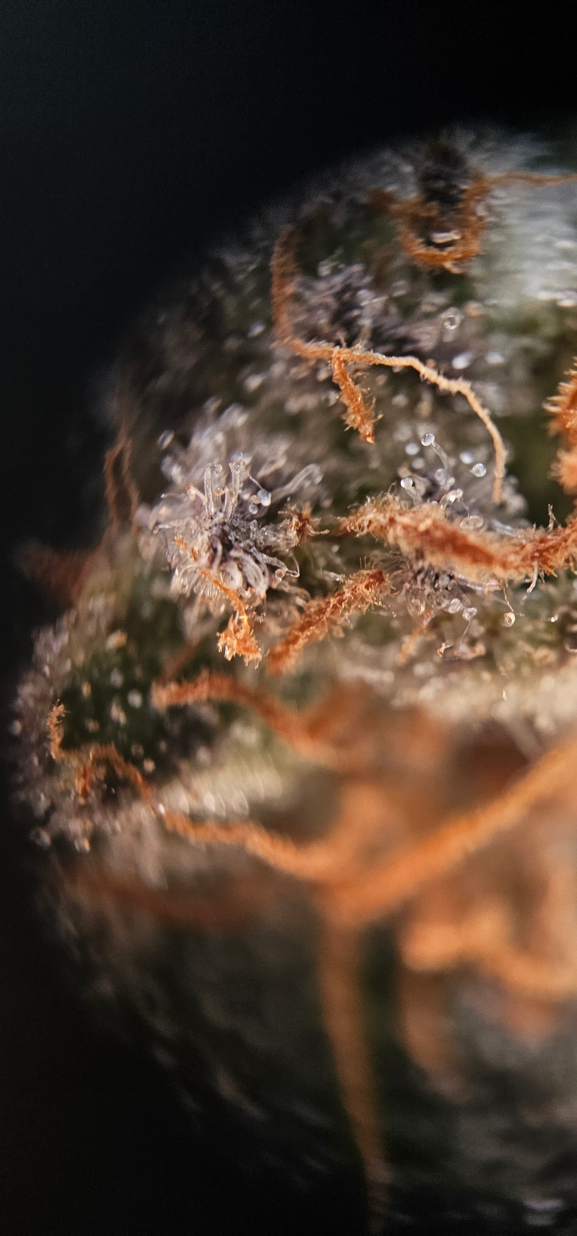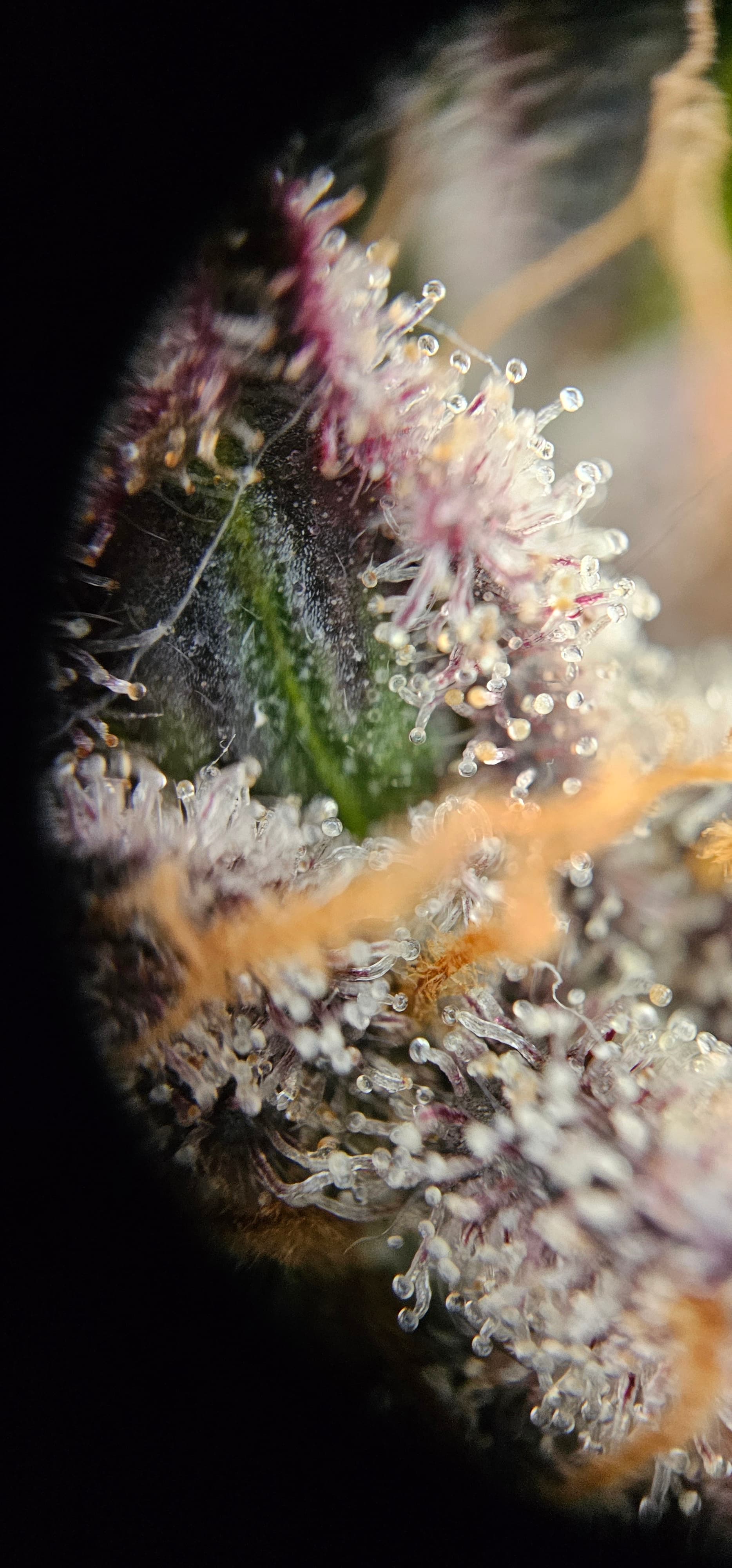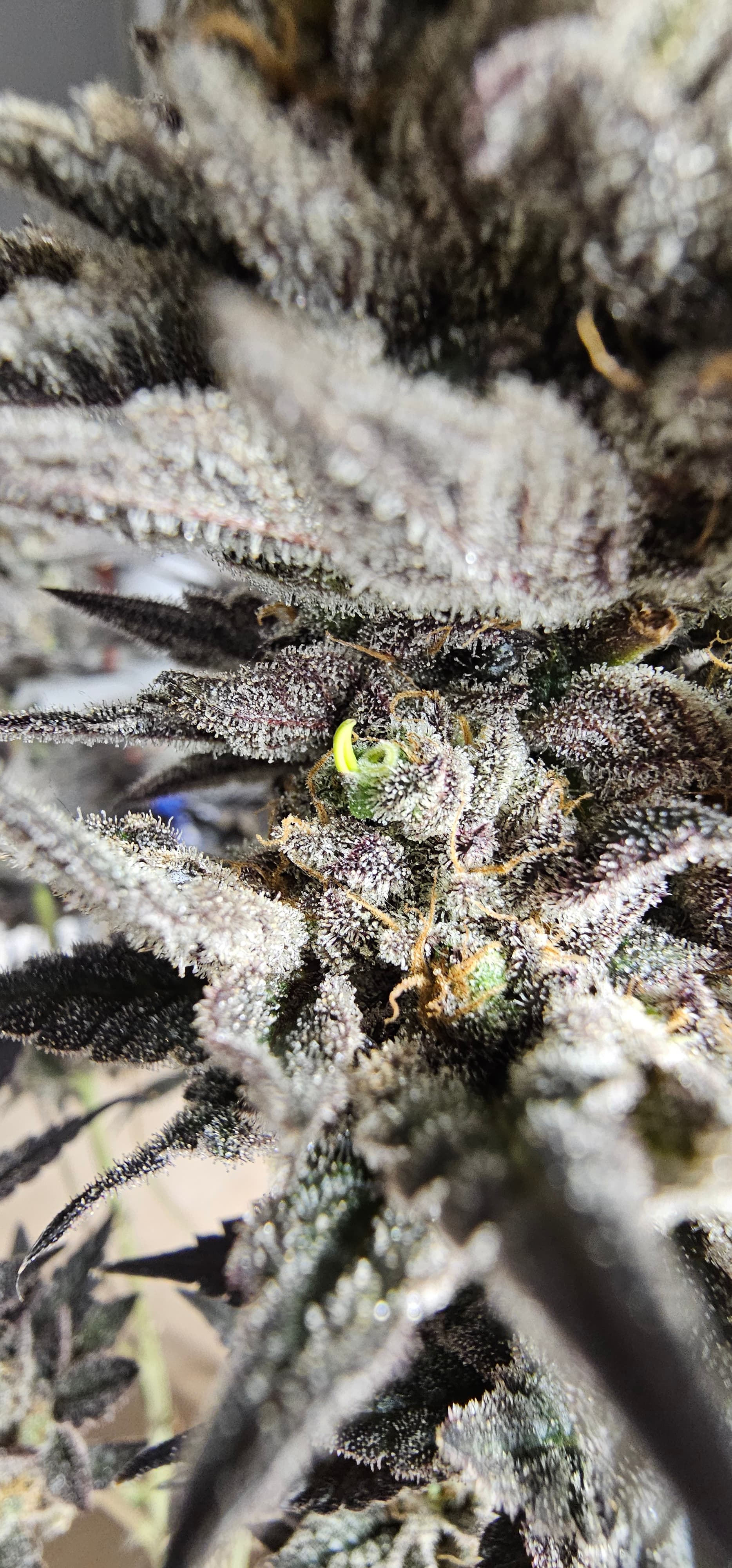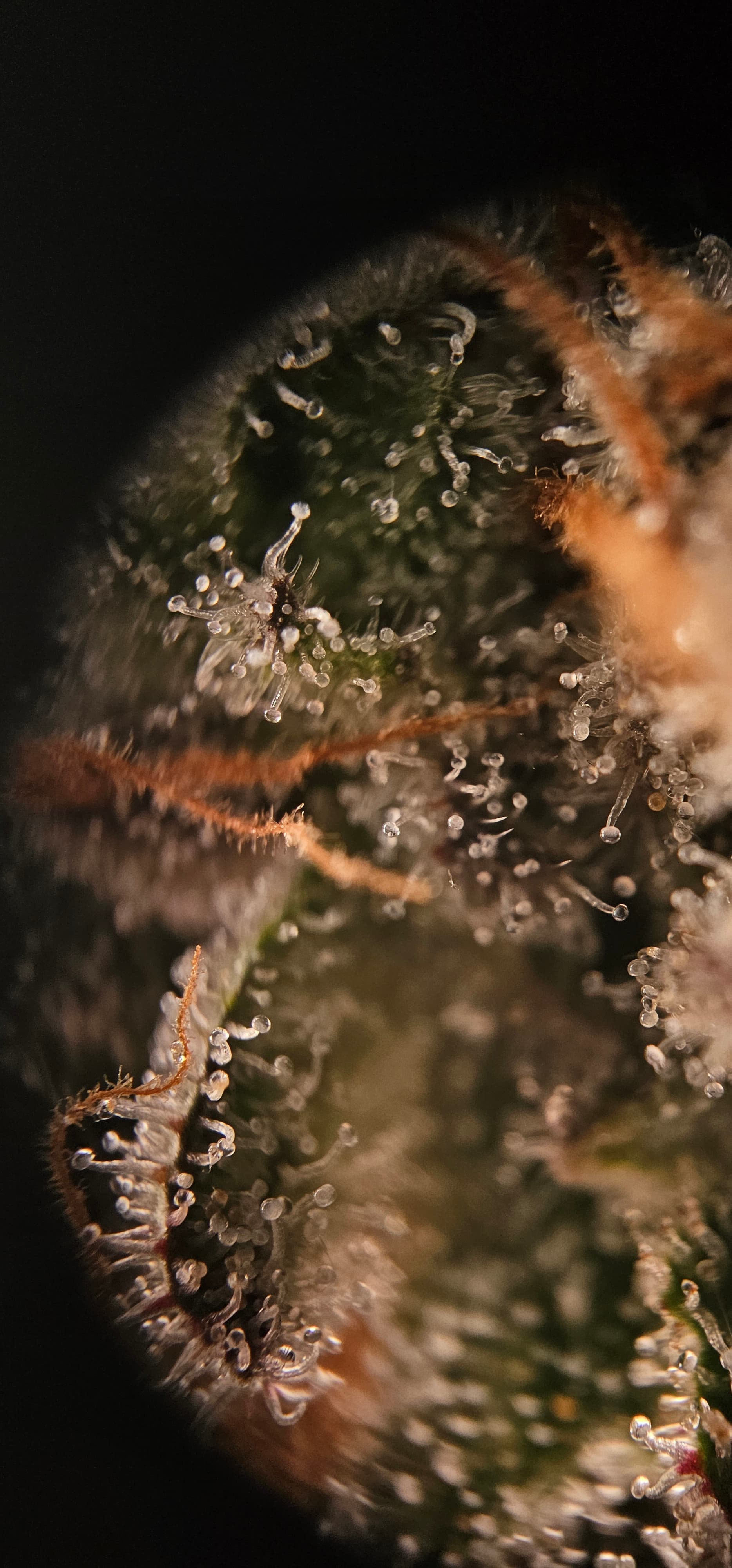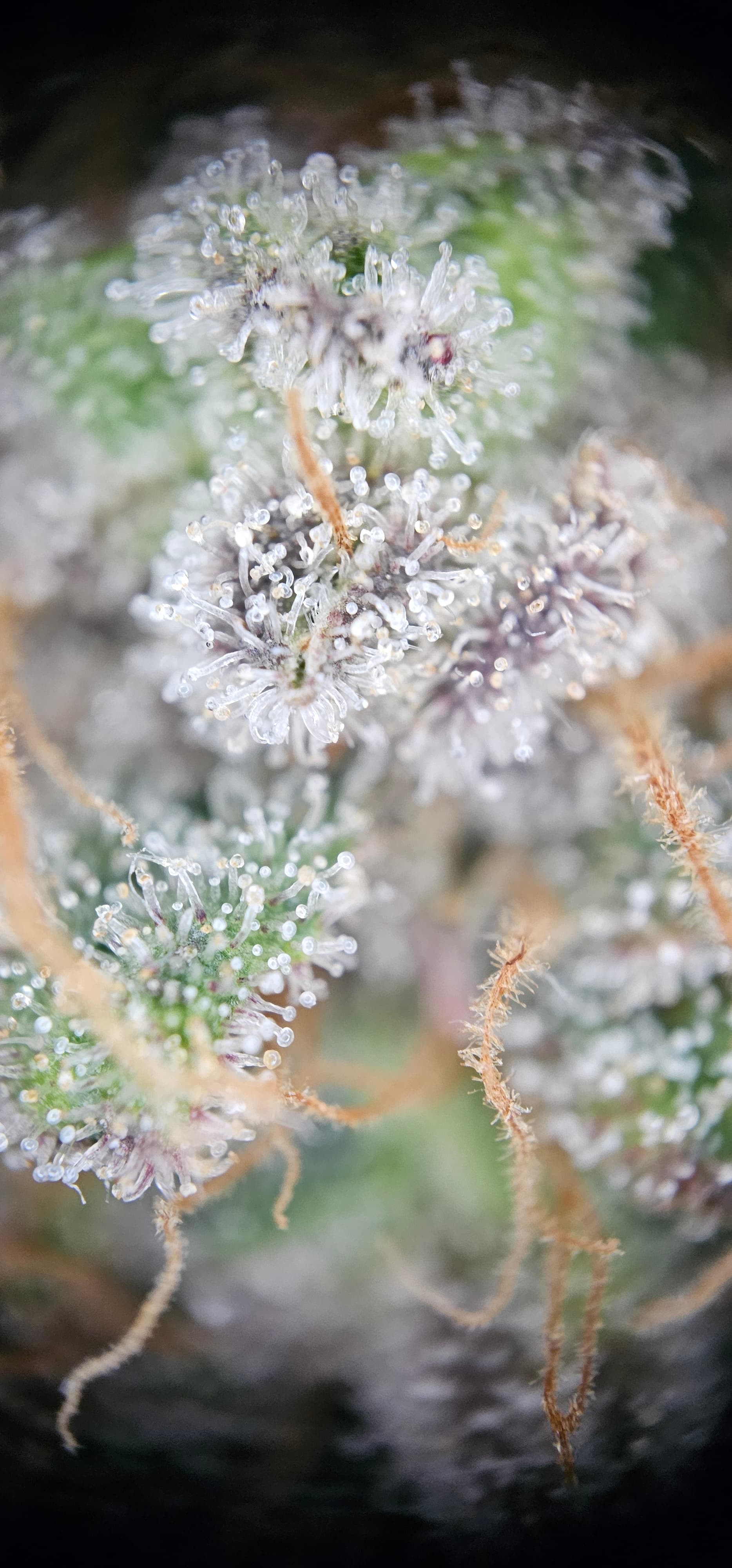 Durch die Fotos der Trichome, ist ein bisschen zu kurz gekommen, das die DynamiteDiesel einen richtigen Farbwechsel hingelegt hat die ist fast schwarz mit viel Schnee darauf.