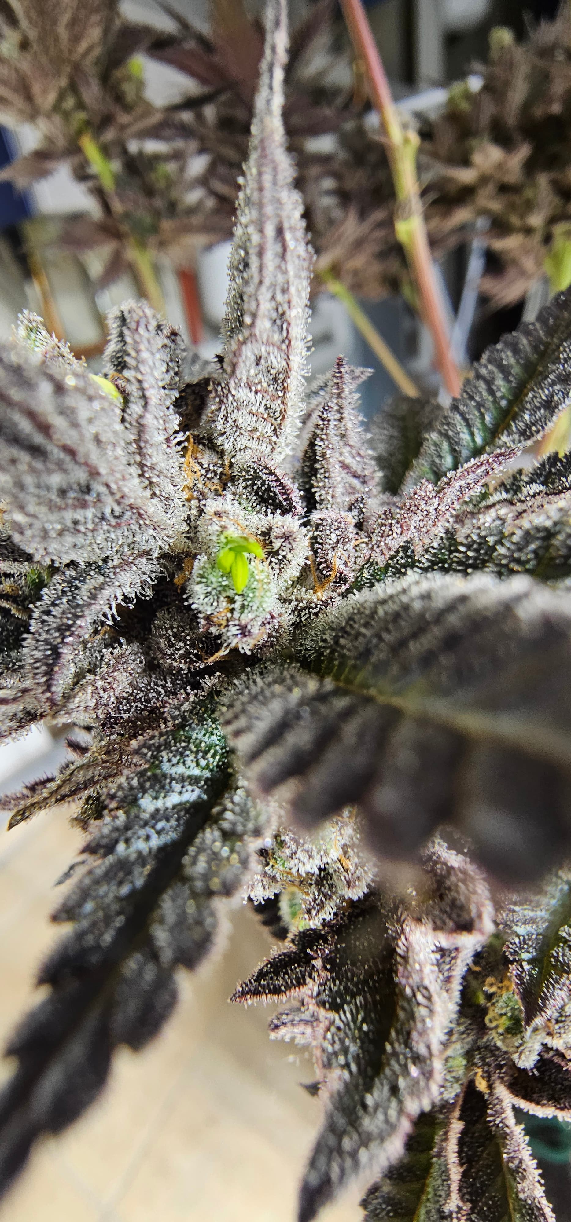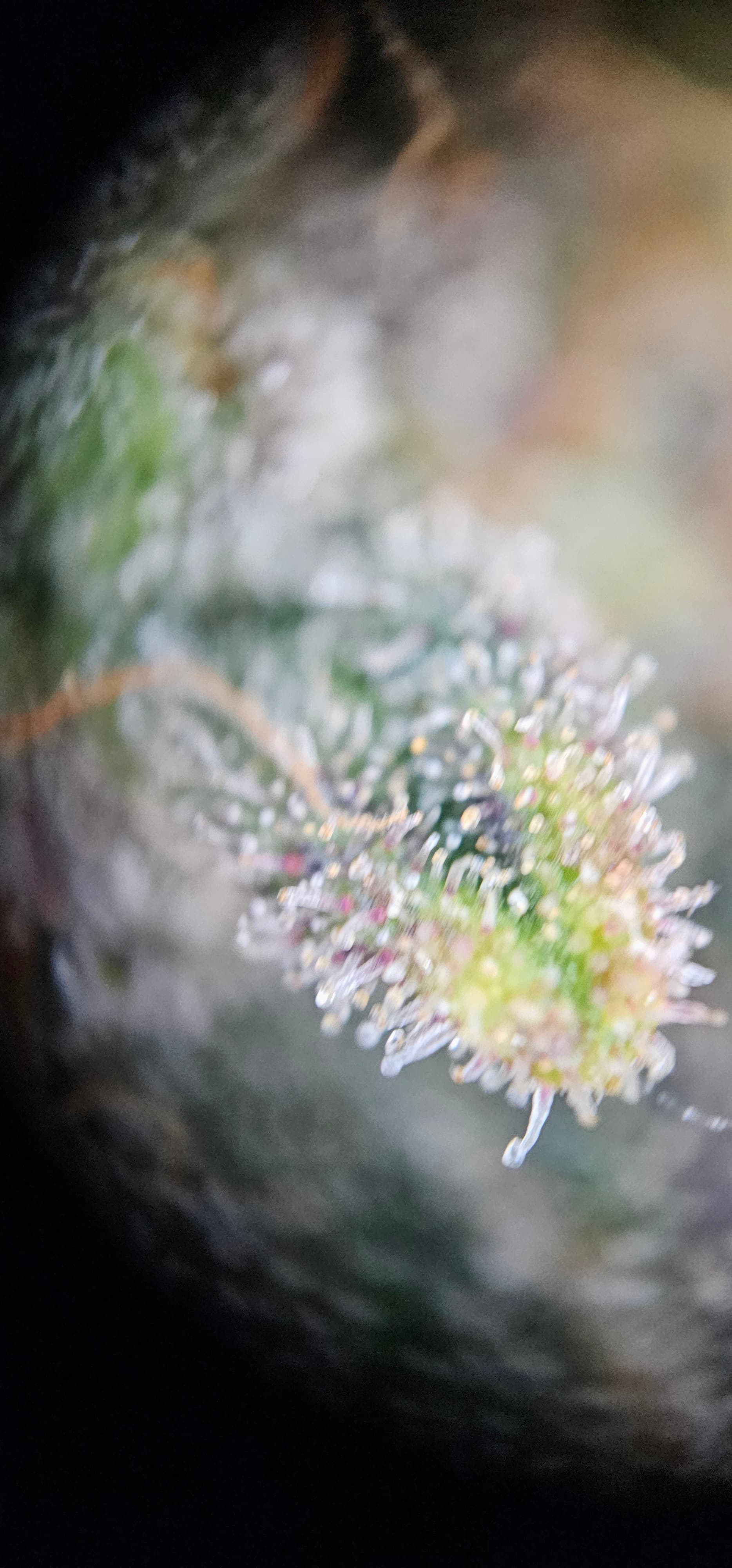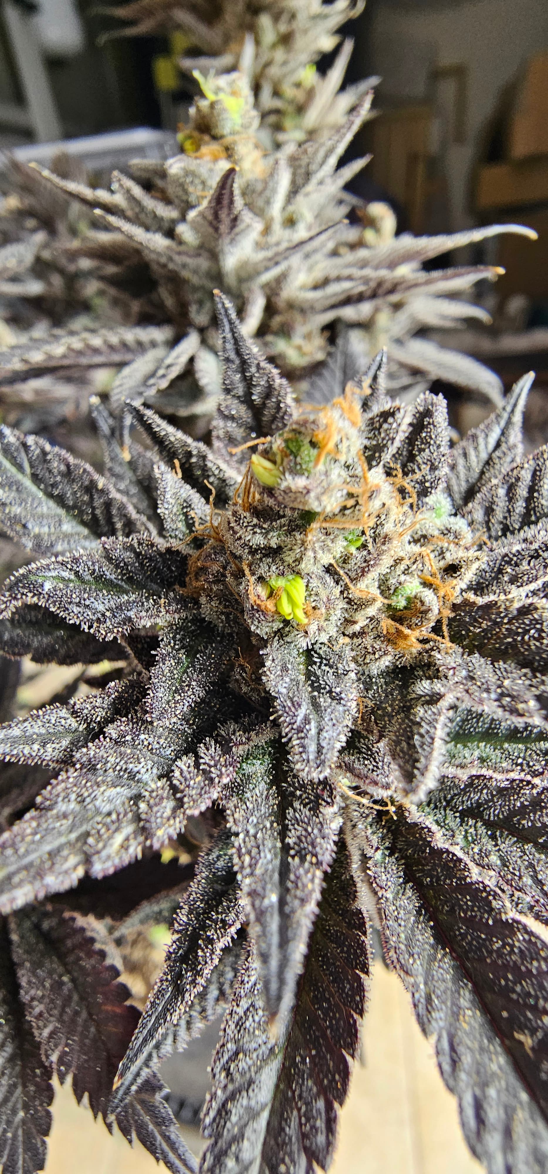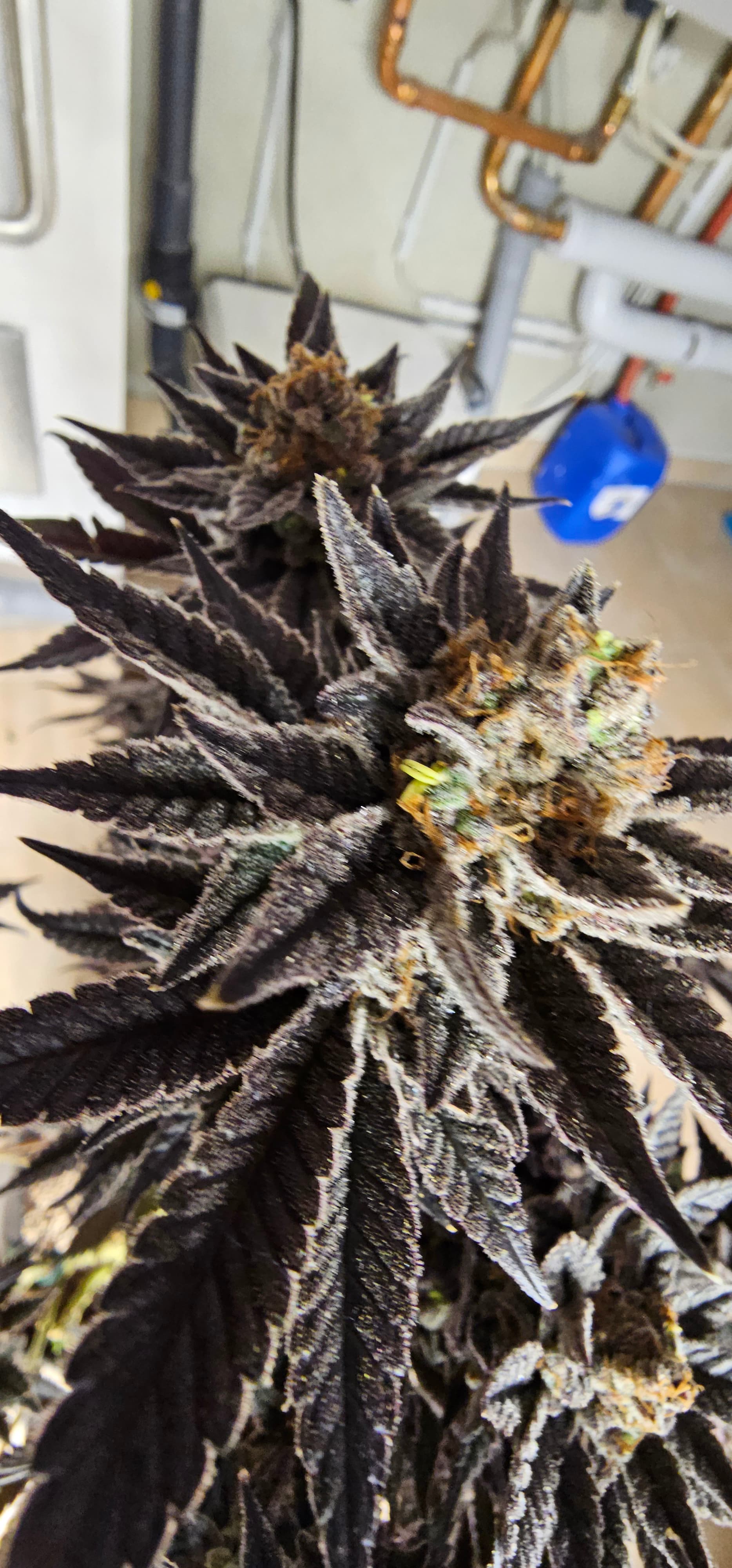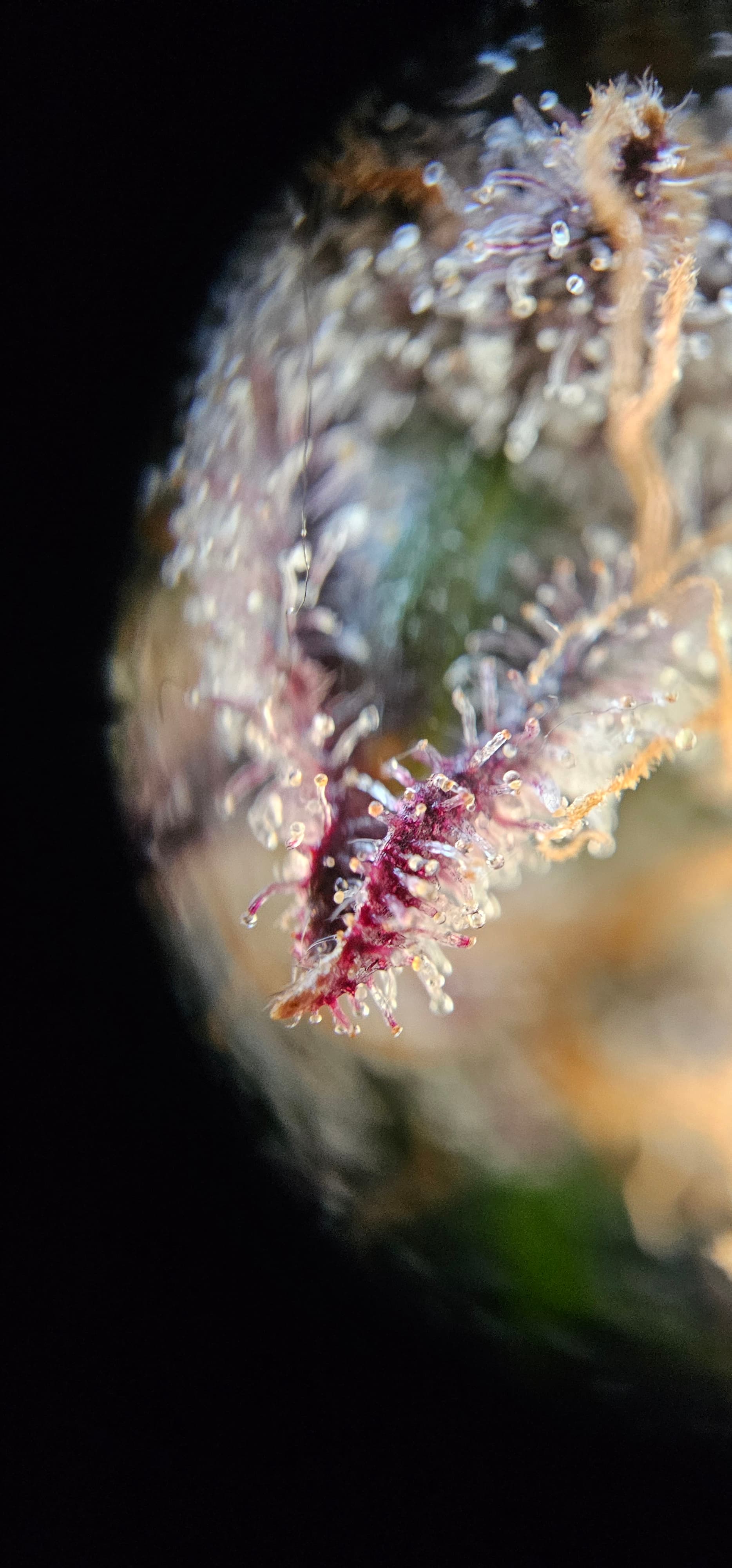 Durch die Fotos der Trichome, ist ein bisschen zu kurz gekommen, das die DynamiteDiesel einen richtigen Farbwechsel hingelegt hat die ist fast schwarz mit viel Schnee darauf.