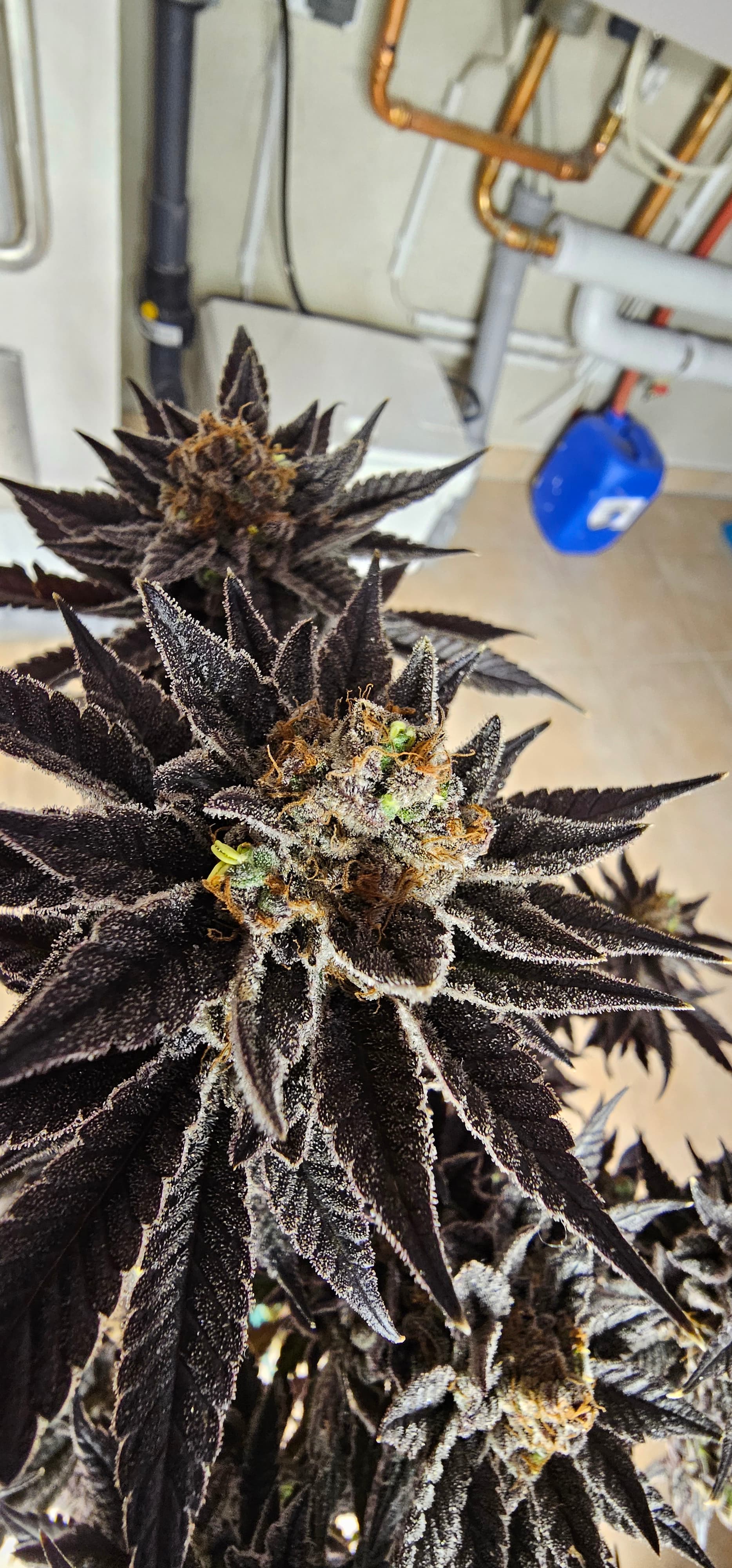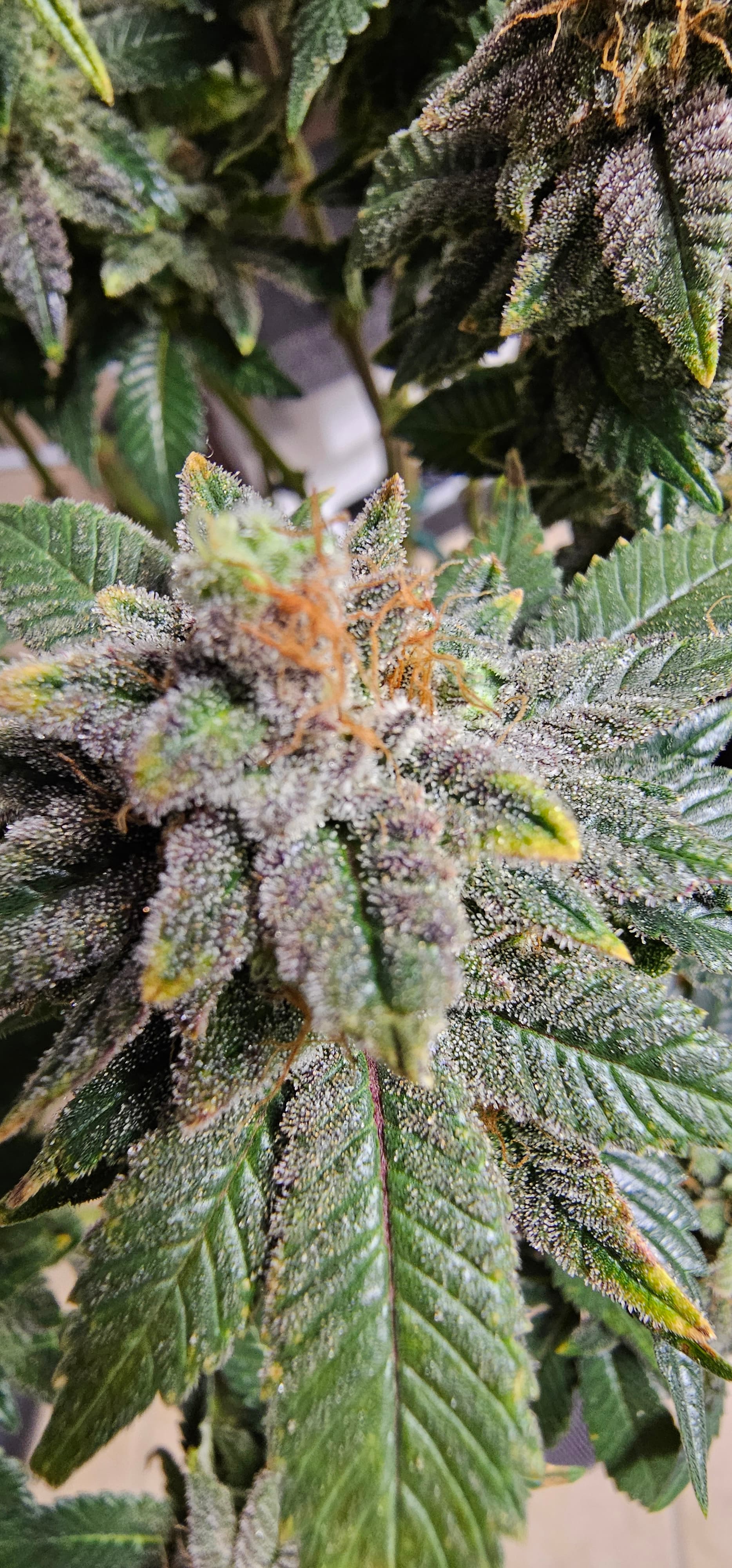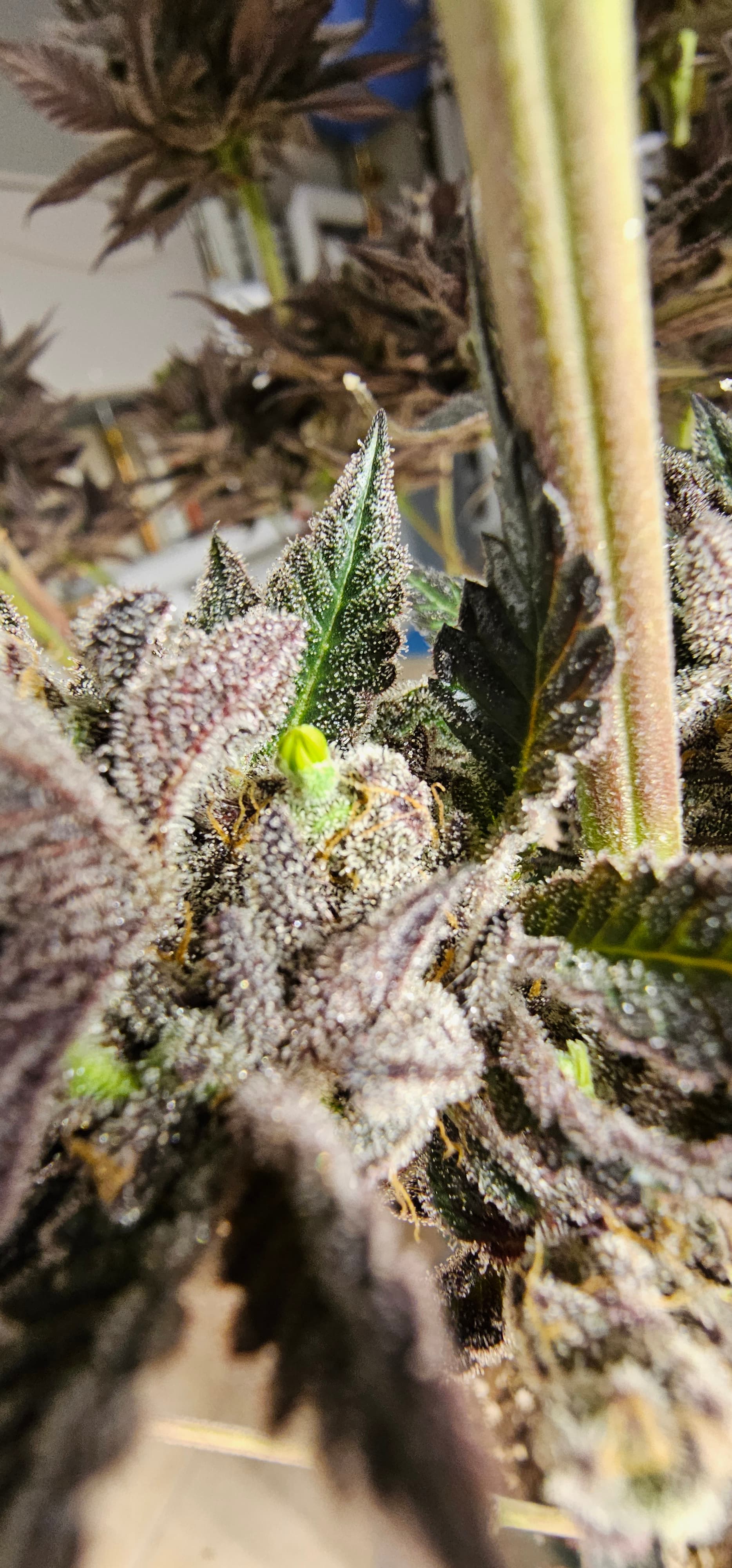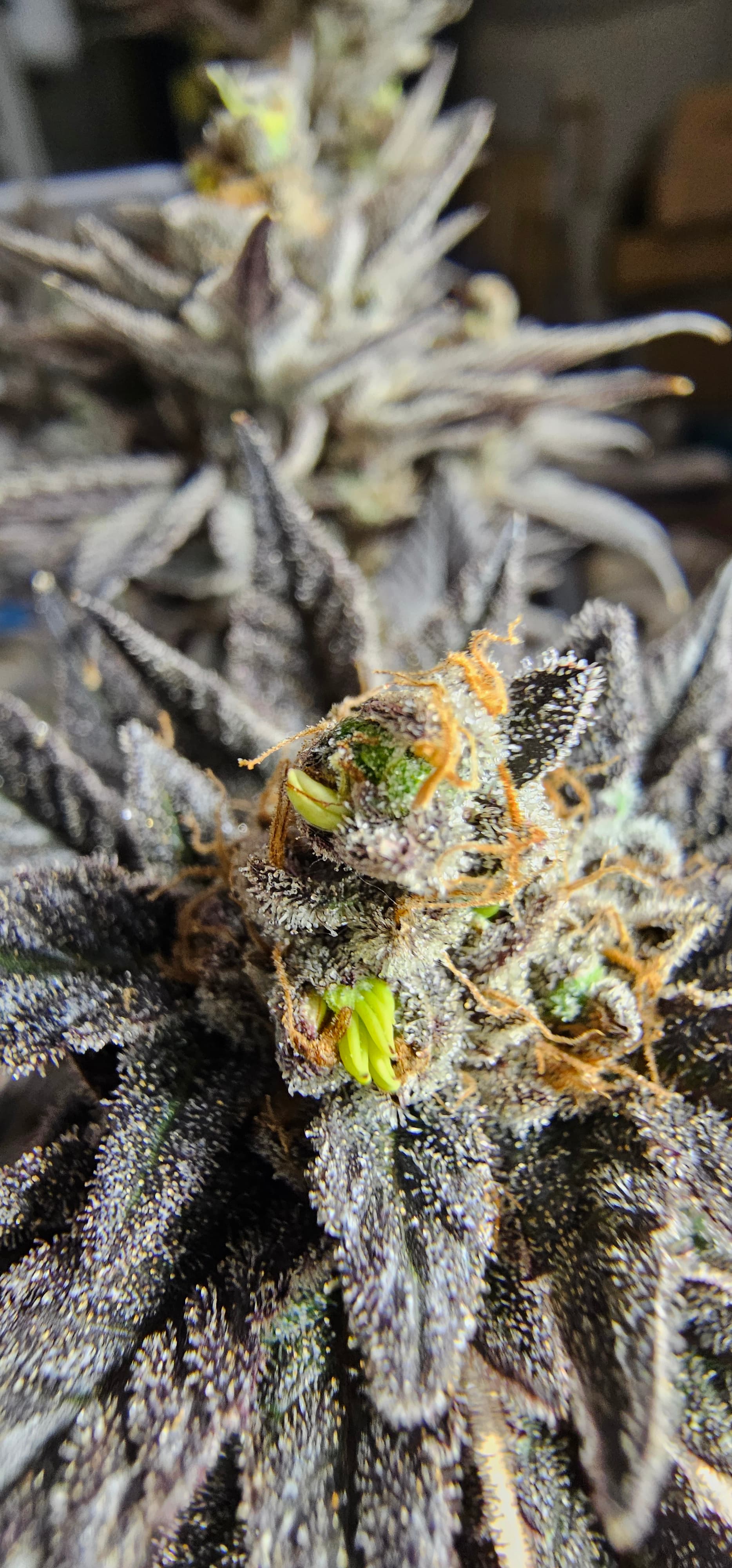 Durch die Fotos der Trichome, ist ein bisschen zu kurz gekommen, das die DynamiteDiesel einen richtigen Farbwechsel hingelegt hat die ist fast schwarz mit viel Schnee darauf.