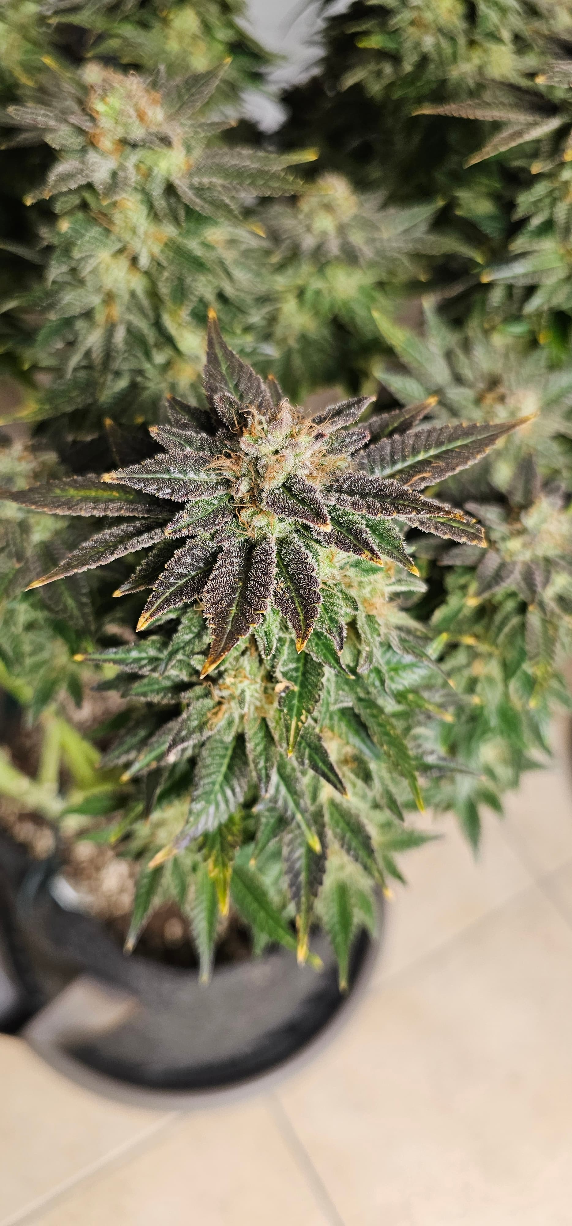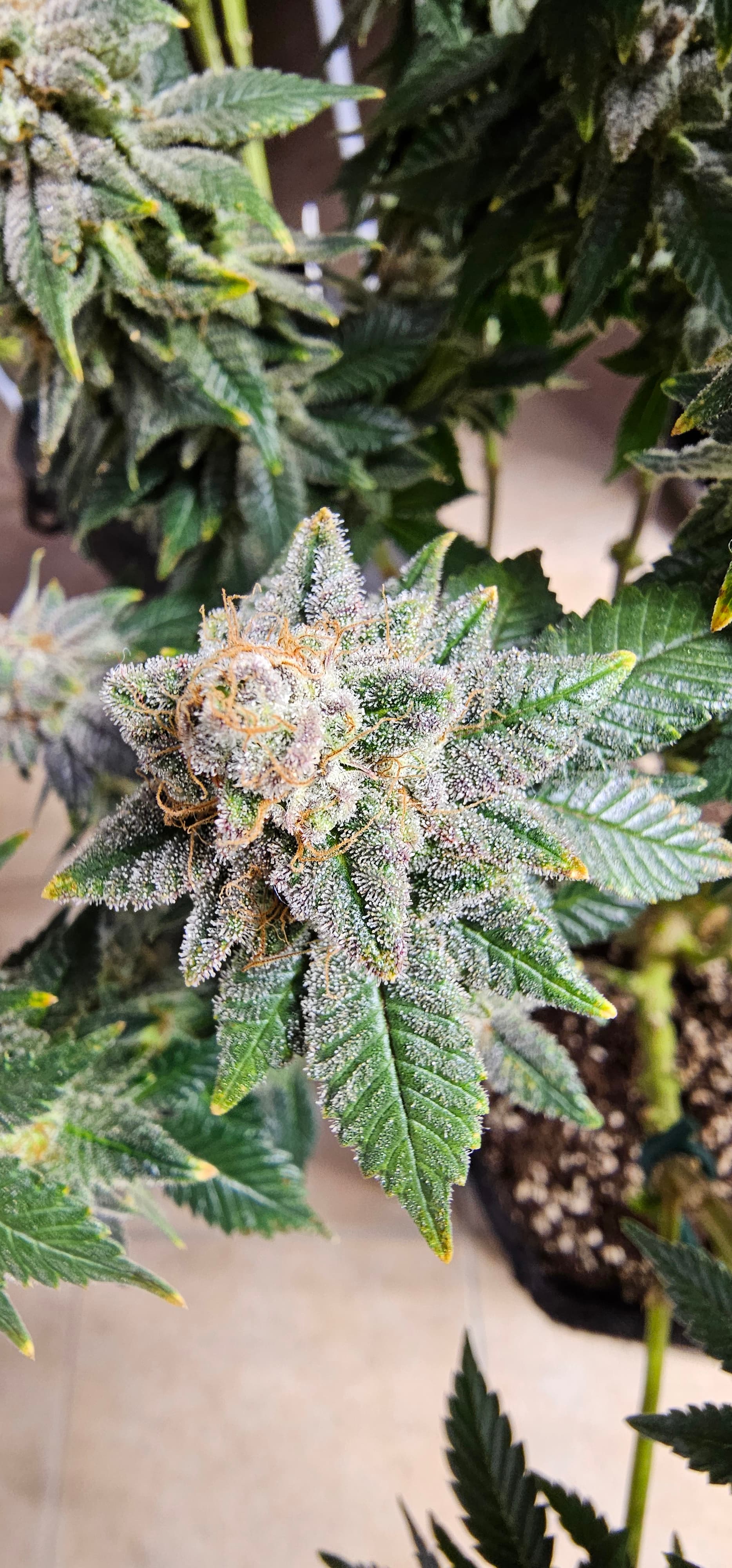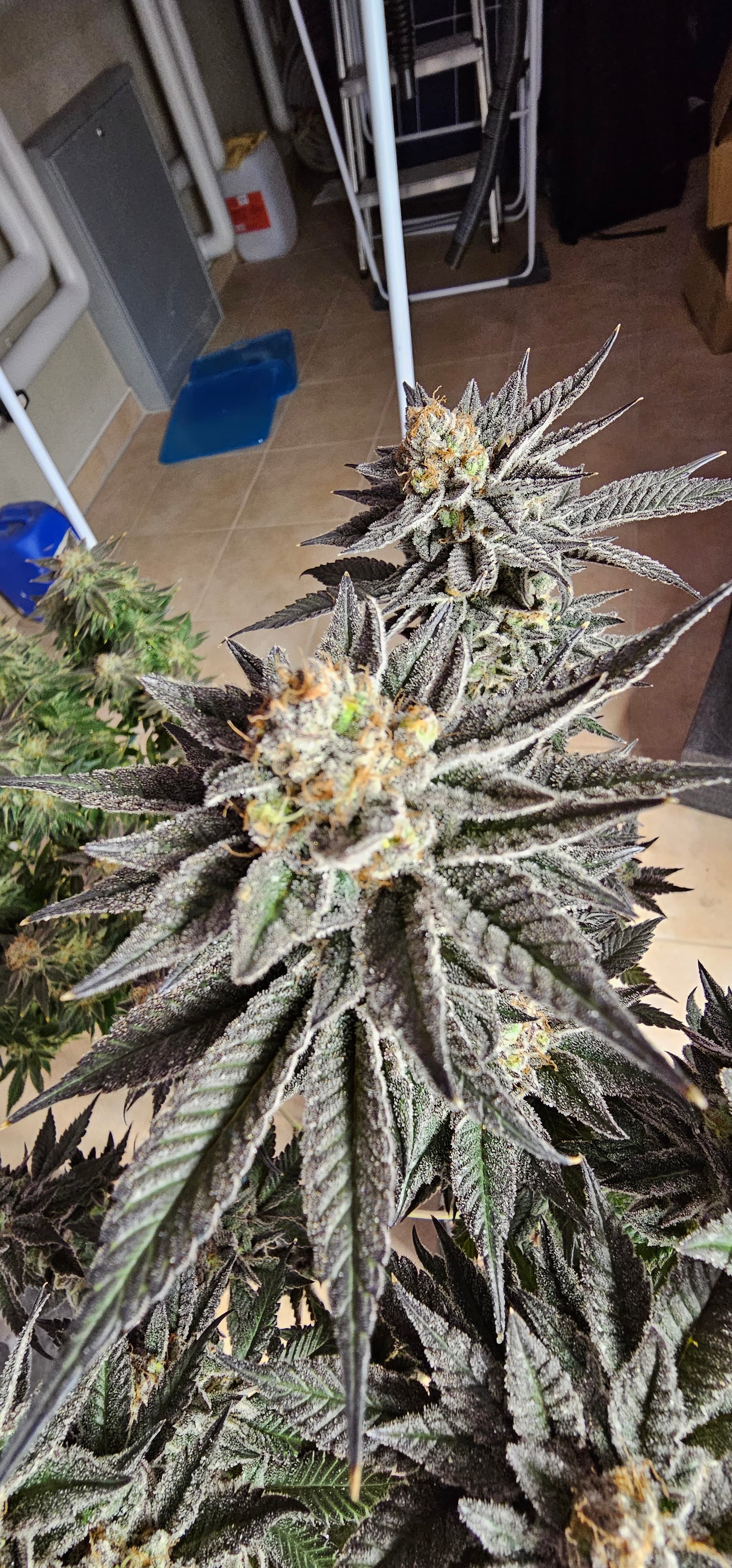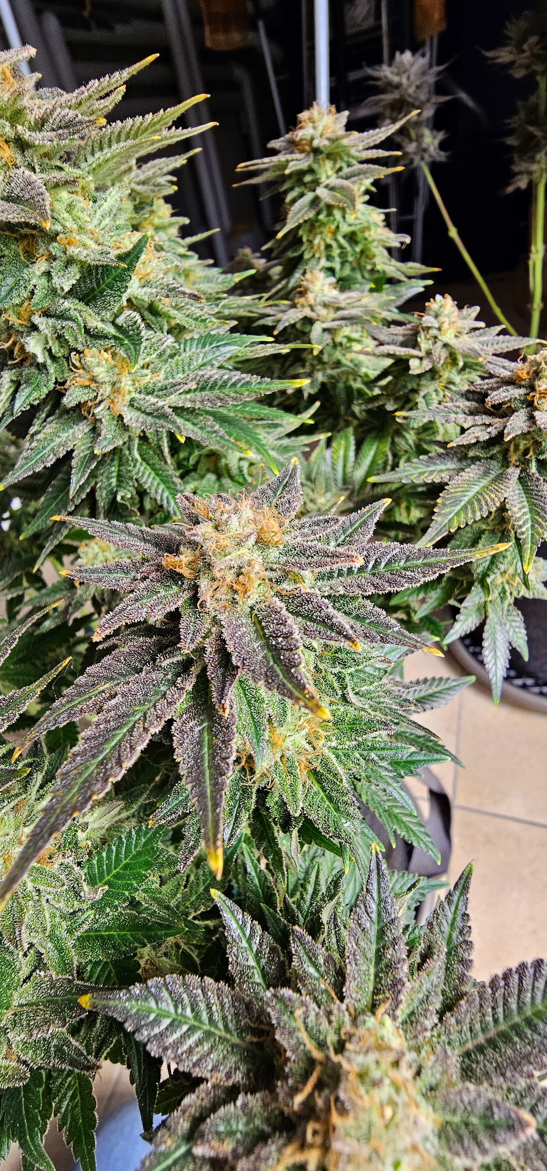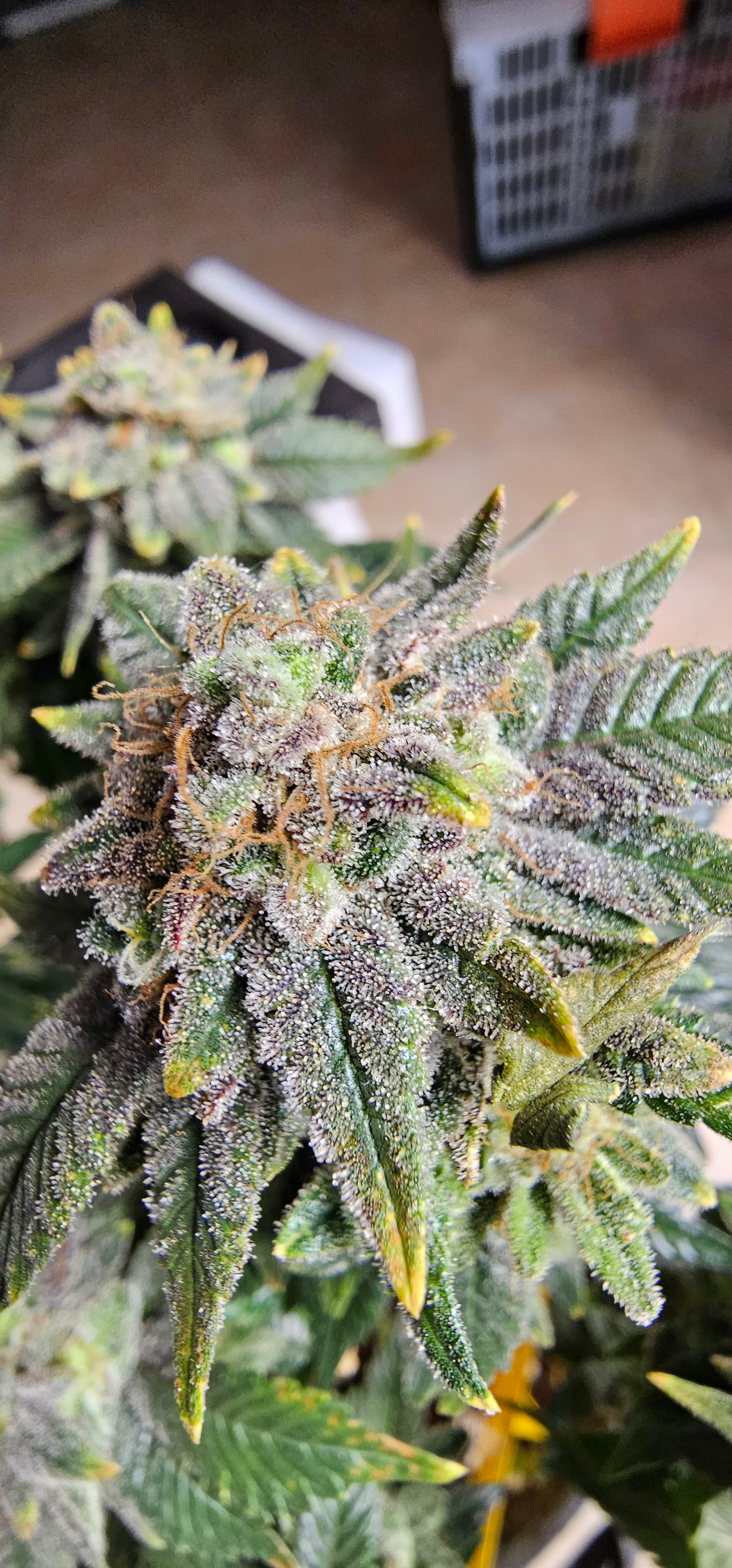 Durch die Fotos der Trichome, ist ein bisschen zu kurz gekommen, das die DynamiteDiesel einen richtigen Farbwechsel hingelegt hat die ist fast schwarz mit viel Schnee darauf.