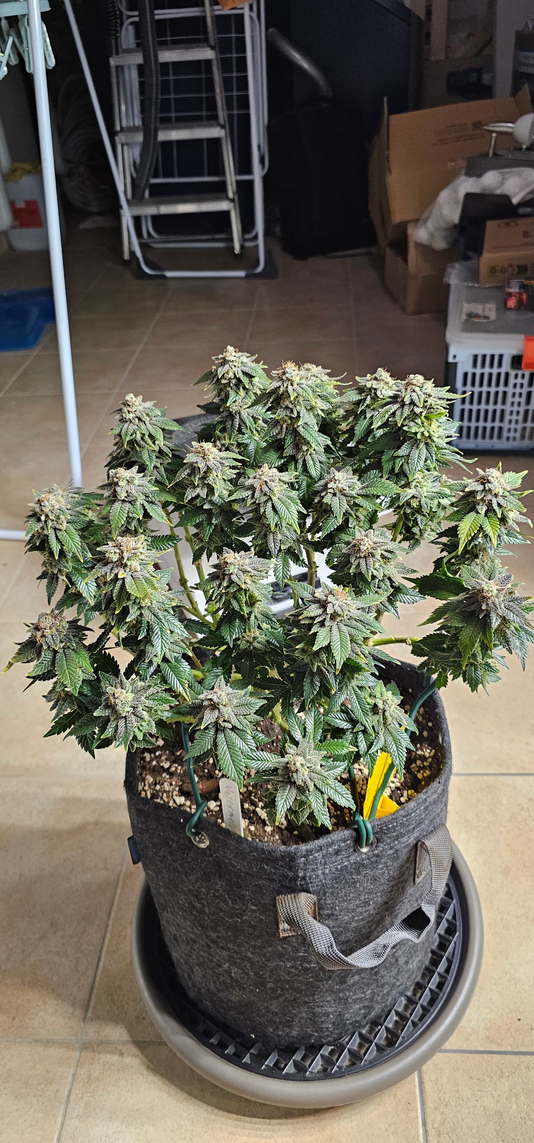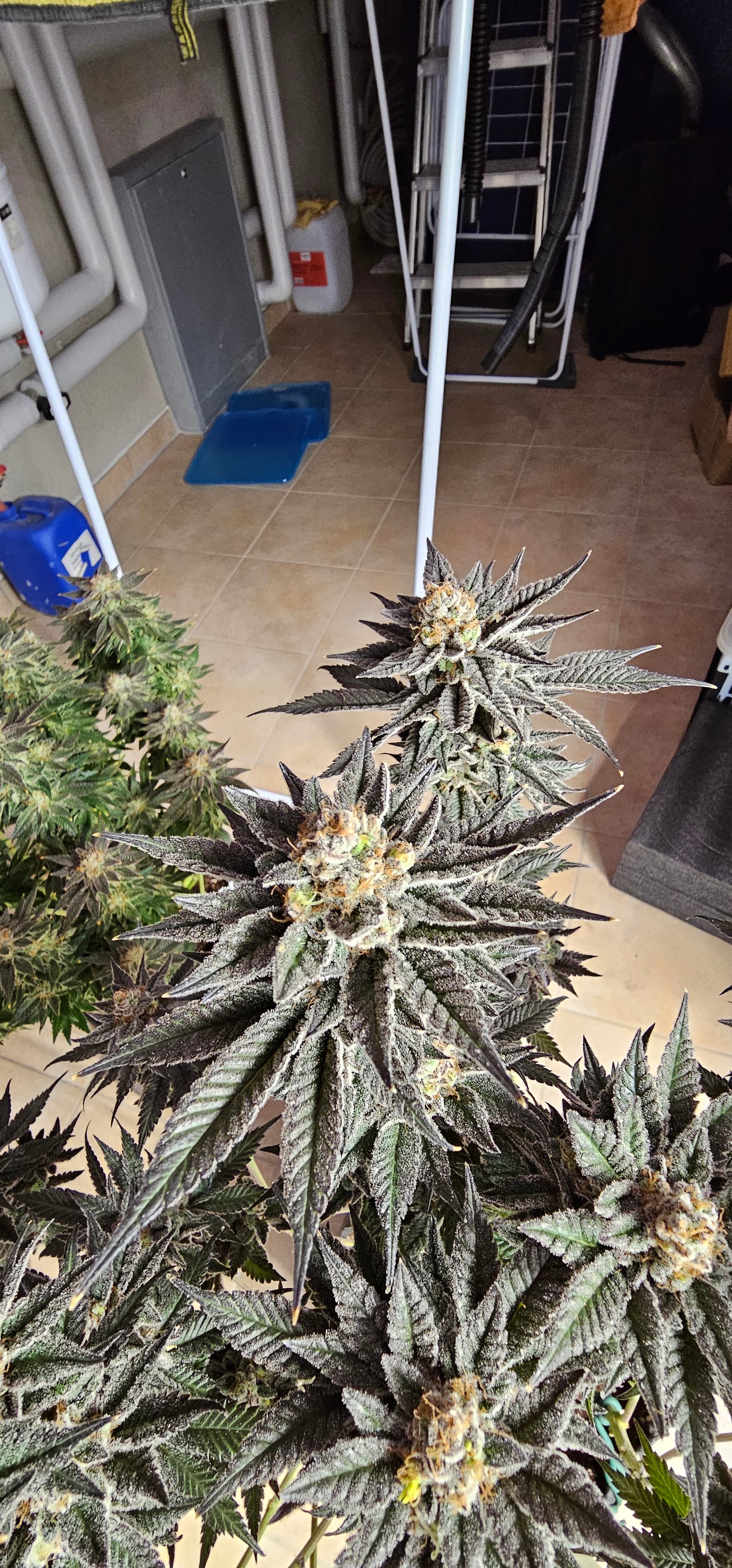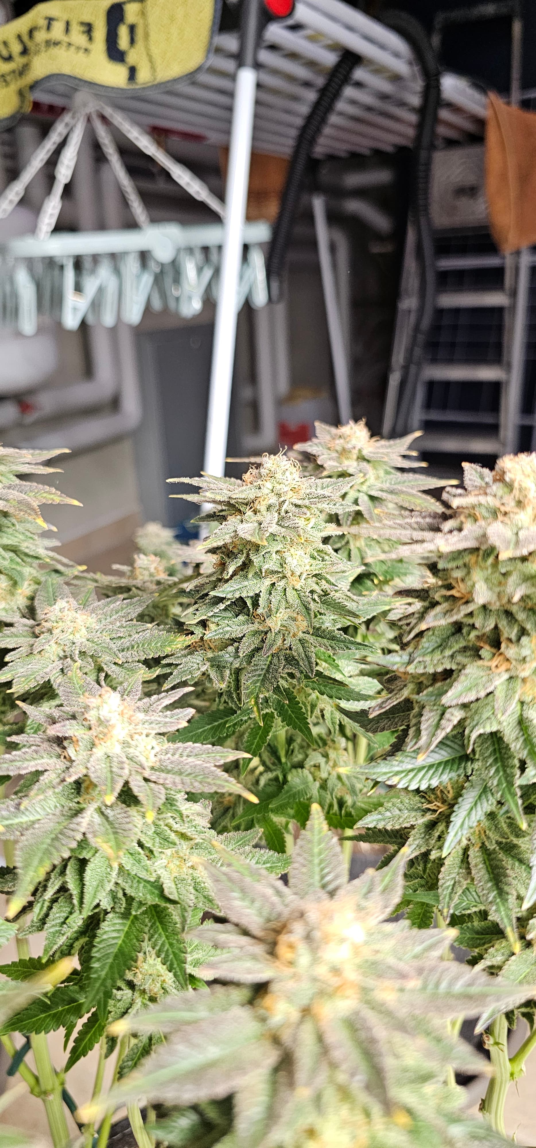 Ein neues Update aus dem Keller. Die Queen trocknet im 40*40 Zelt vor sich hin. Die Zahlen Temp etc. Hänge ich als Screenshot an. Da hat der alte Controller erhalten müssen um denn Trocknungsprozess zu überwachen. Die anderen drei werden nicht fetter, aber sie reifen ab . Die HulkBerry und die DynamiteDiesel bekommen noch Dünger, aber ich überlege schon damit auf zu hören. Die DynamiteDiesel hat ganz schon die Farbe gewechselt. Und die HulkBerry fängt auch schon an.