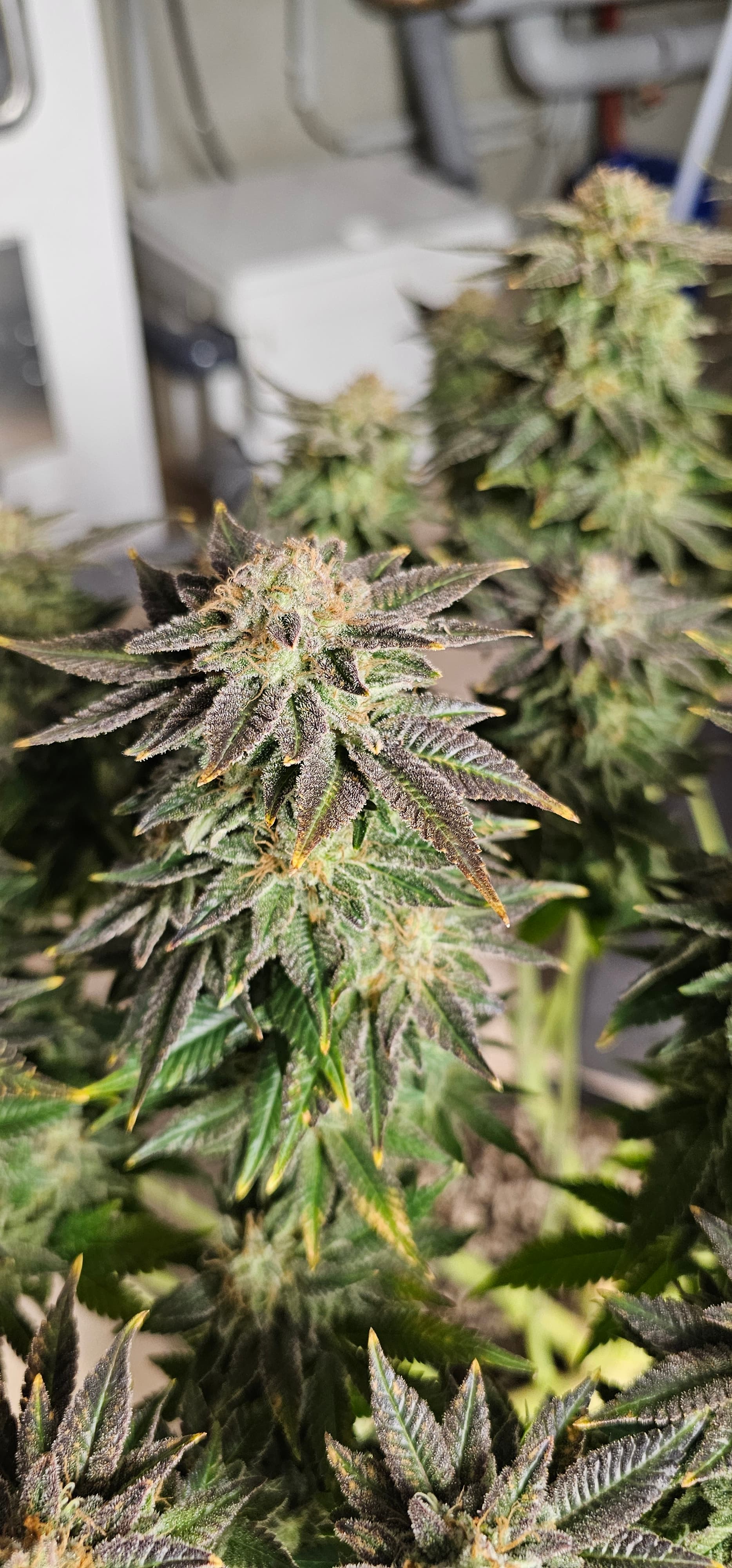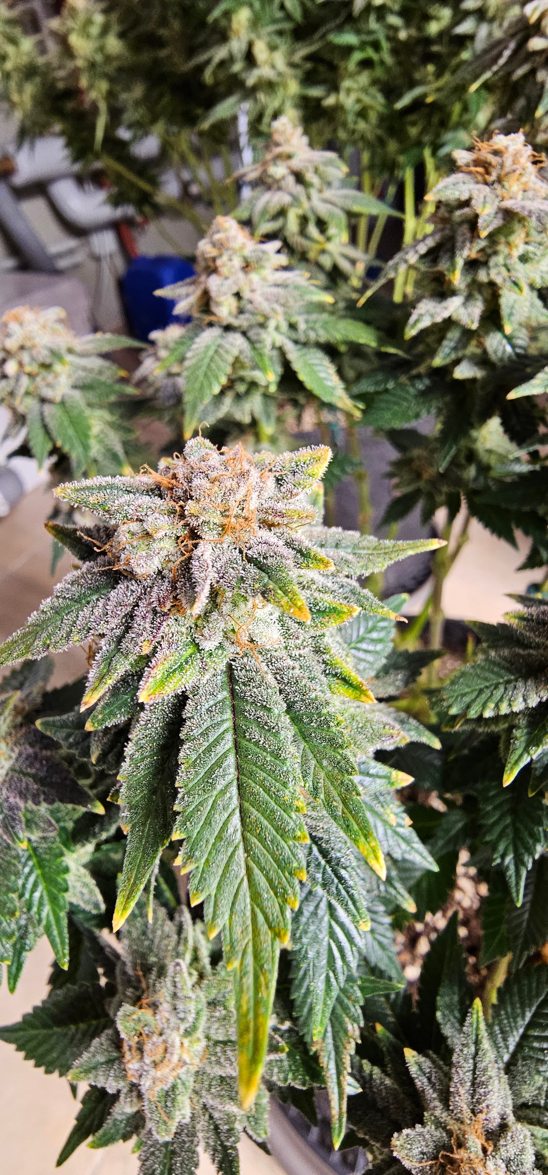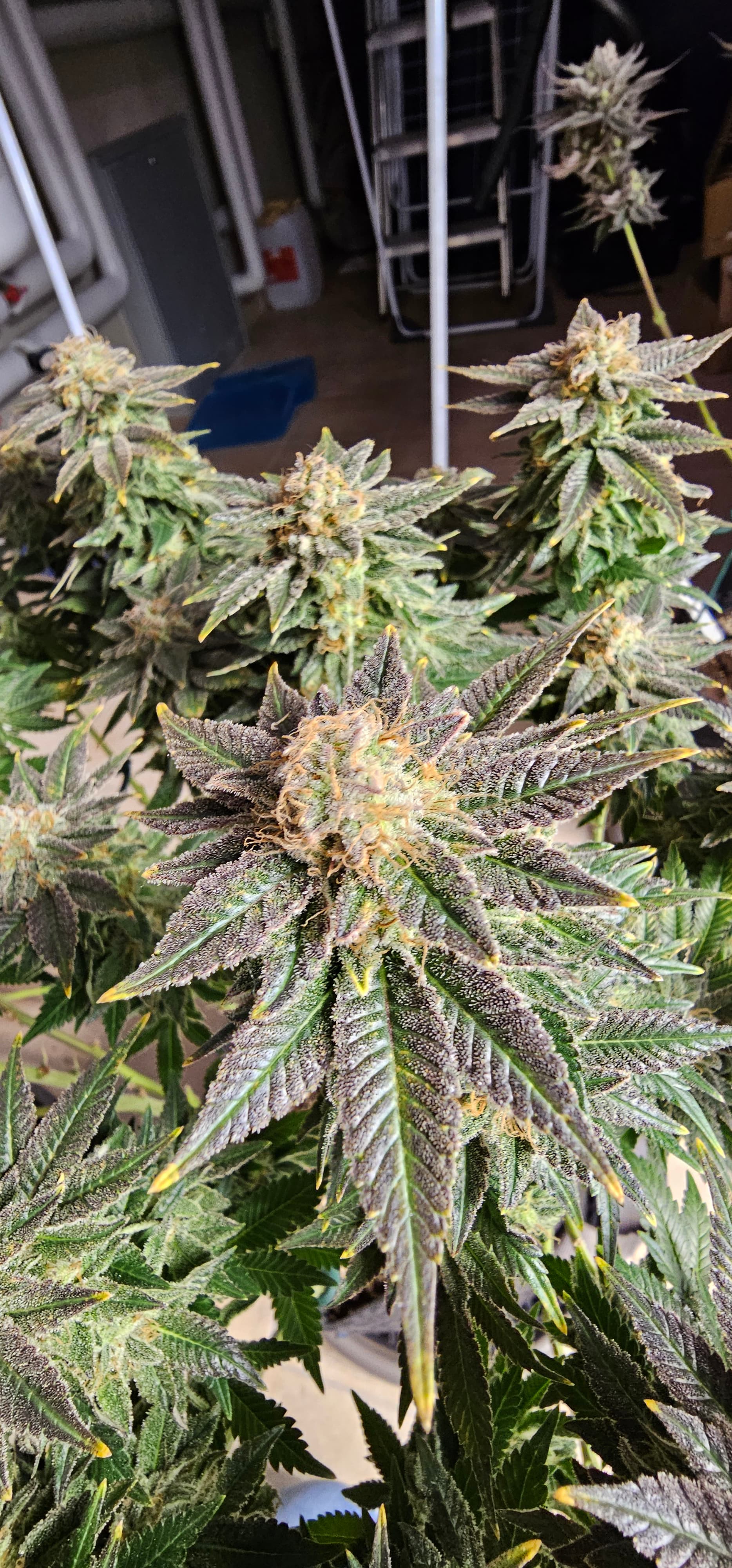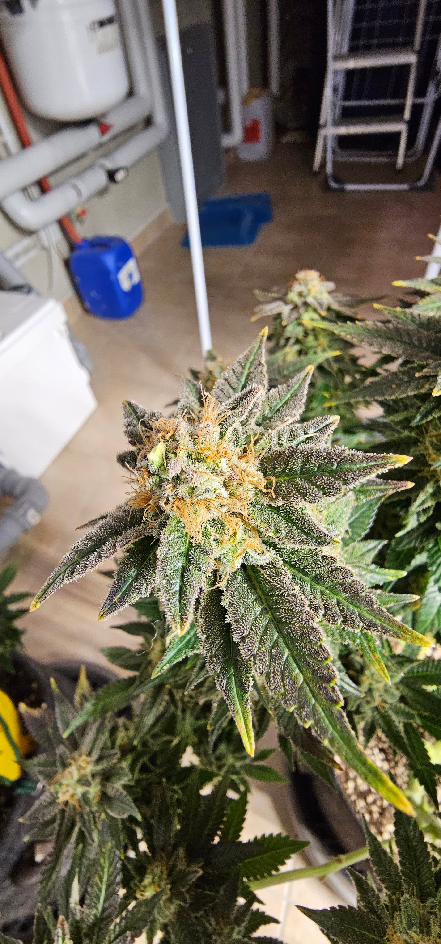 Ein neues Update aus dem Keller. Die Queen trocknet im 40*40 Zelt vor sich hin. Die Zahlen Temp etc. Hänge ich als Screenshot an. Da hat der alte Controller erhalten müssen um denn Trocknungsprozess zu überwachen. Die anderen drei werden nicht fetter, aber sie reifen ab . Die HulkBerry und die DynamiteDiesel bekommen noch Dünger, aber ich überlege schon damit auf zu hören. Die DynamiteDiesel hat ganz schon die Farbe gewechselt. Und die HulkBerry fängt auch schon an.