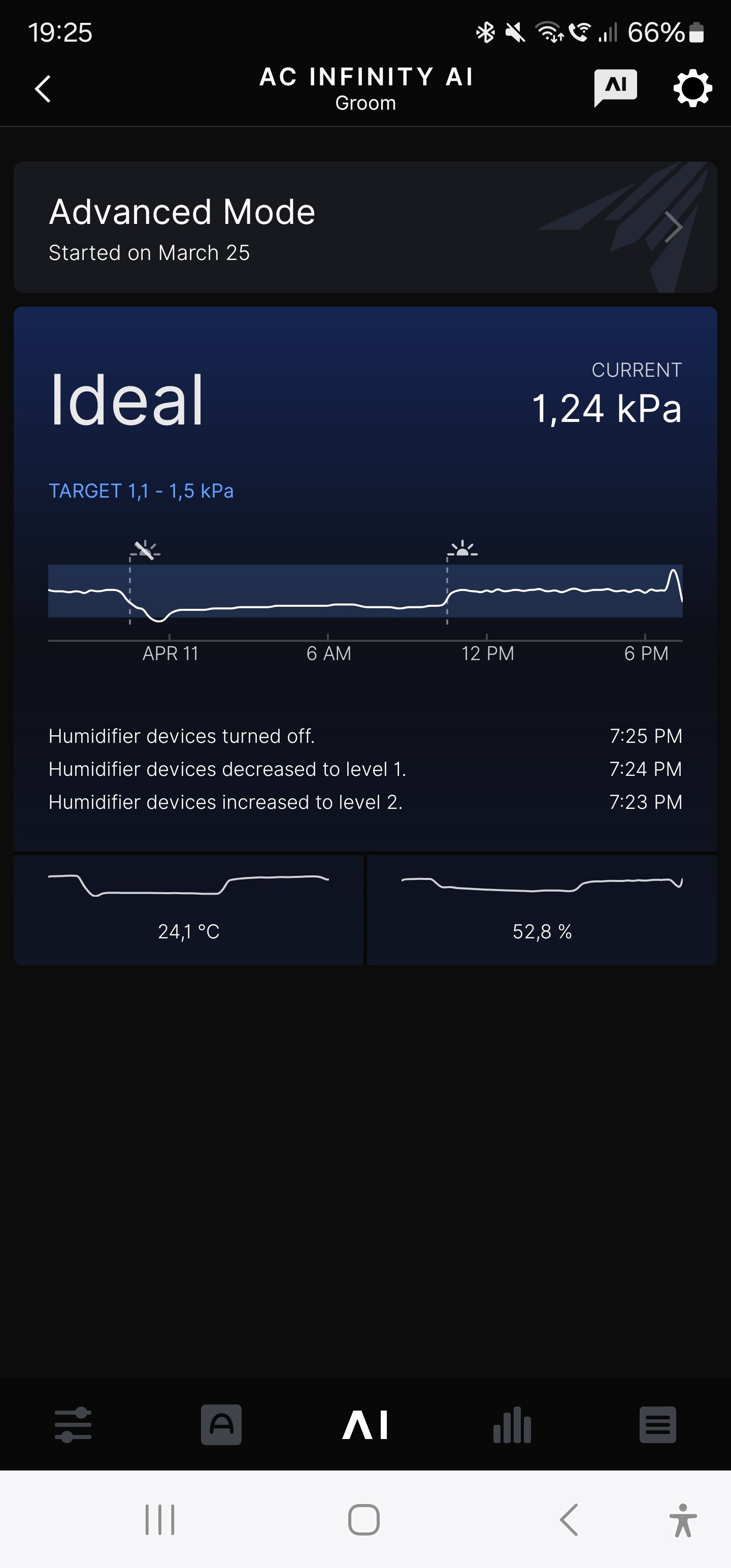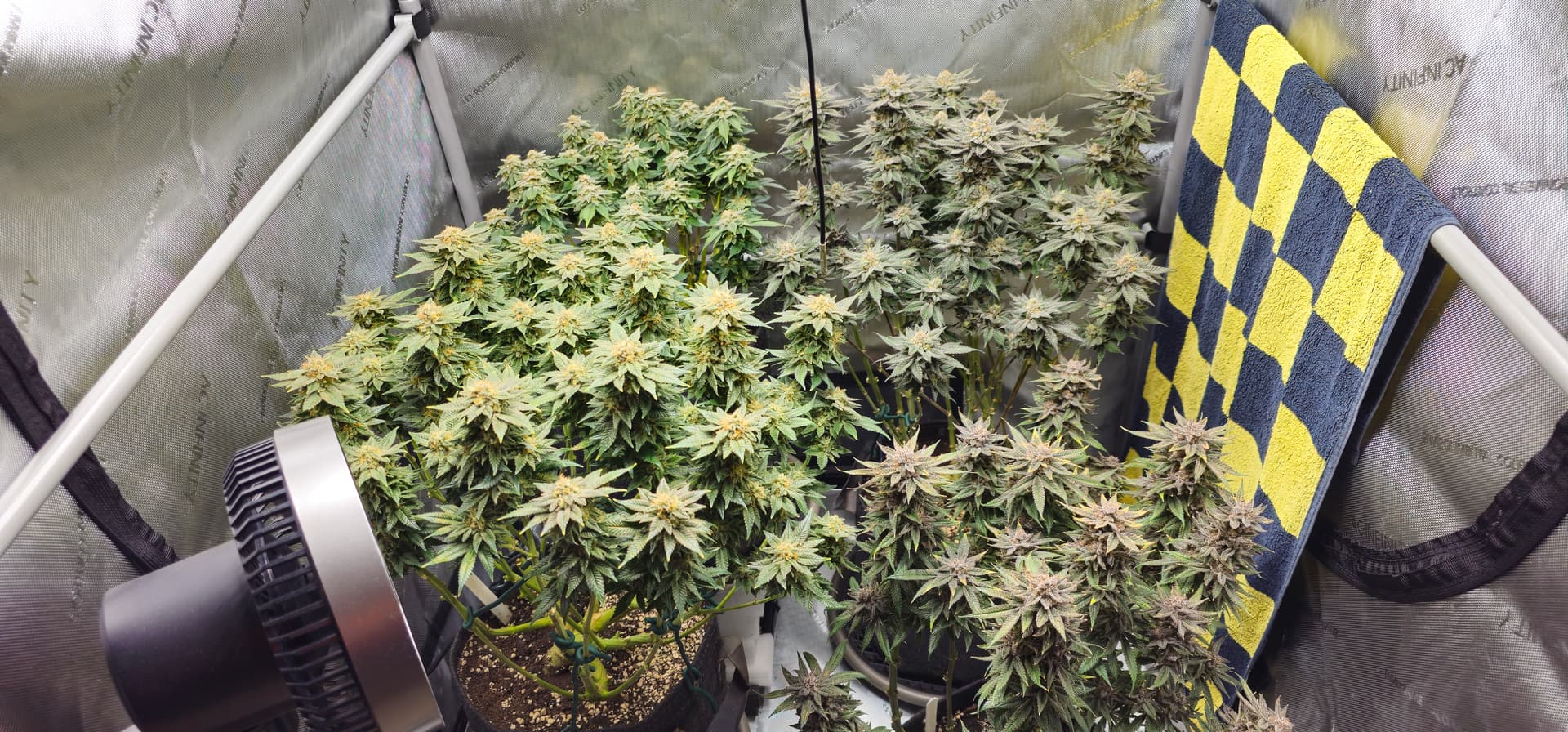 Das Handtuch im anderen Zelt ist mittlerweile, durch den Luftbefeuchter Cloudforge T3 getauscht und VPD bin ich jetzt bei einem Zielwert von 1,5.
