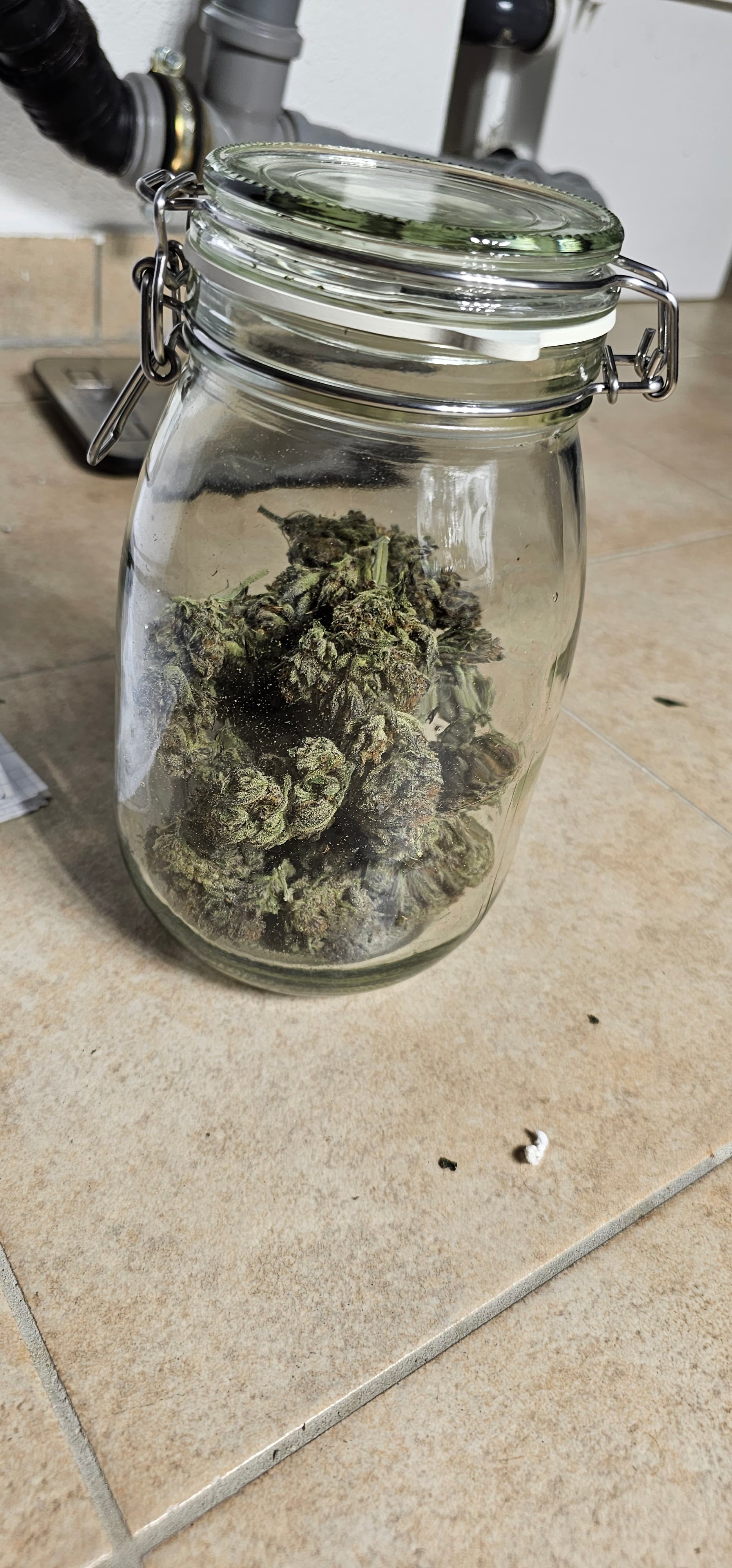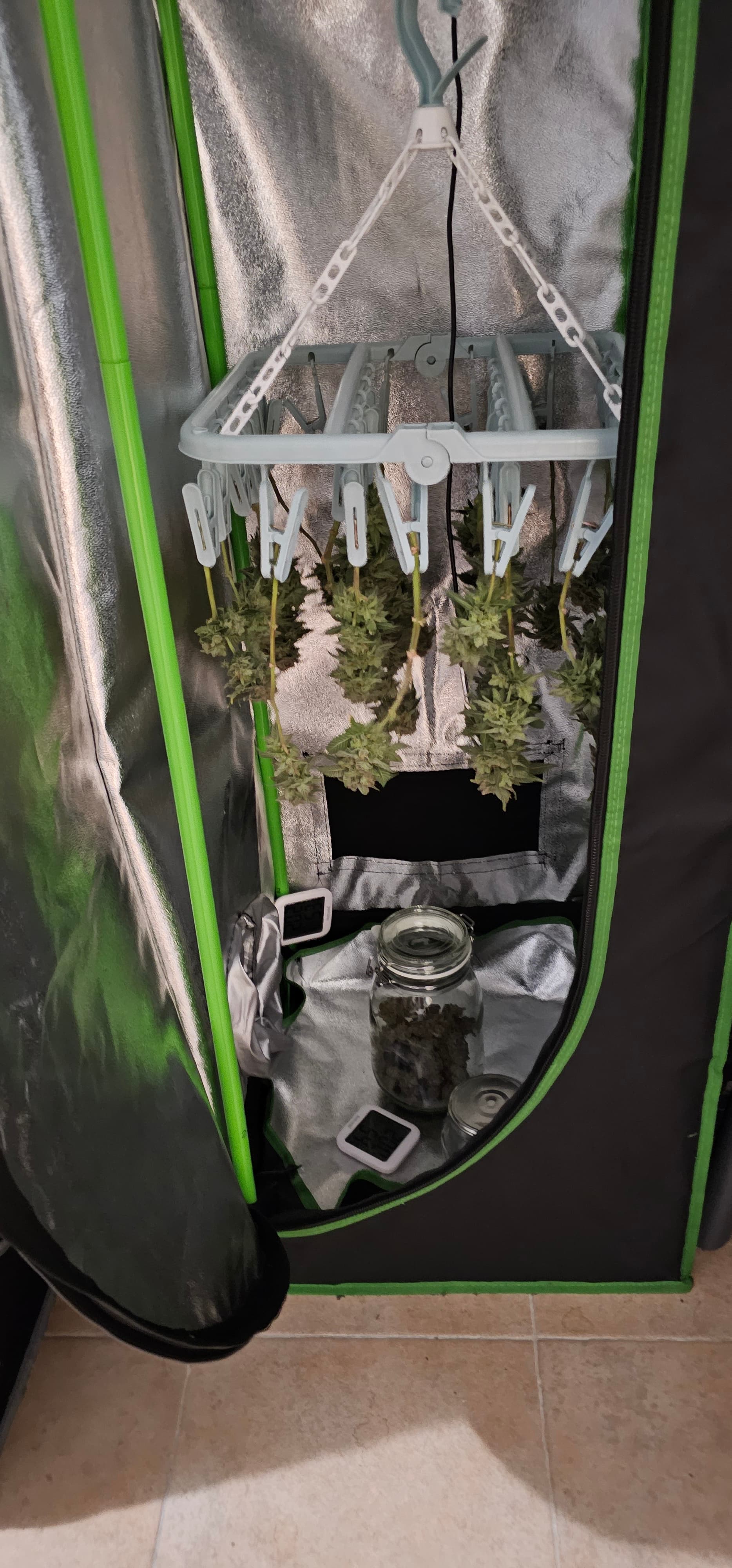 Im Keller reifen die Damen vor sich hin, ich denke die Watermelon ist auch bald dran. Die Queen ist vom Trockenzelt in ein Glass gewandert. Leider war sie wohl doch schon etwas trocken sie ist jetzt seid 1 Tag im Glass und die RLF im Glas sind nur 56%. Mal schauen vieleicht steigt sie noch etwas. Trocken waren es 28g Popcornbuds und 22 g größere. Jetzt nicht der brüller aber gut. Die ersten versuche haben aber doch geturnt.