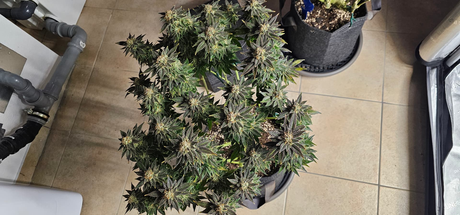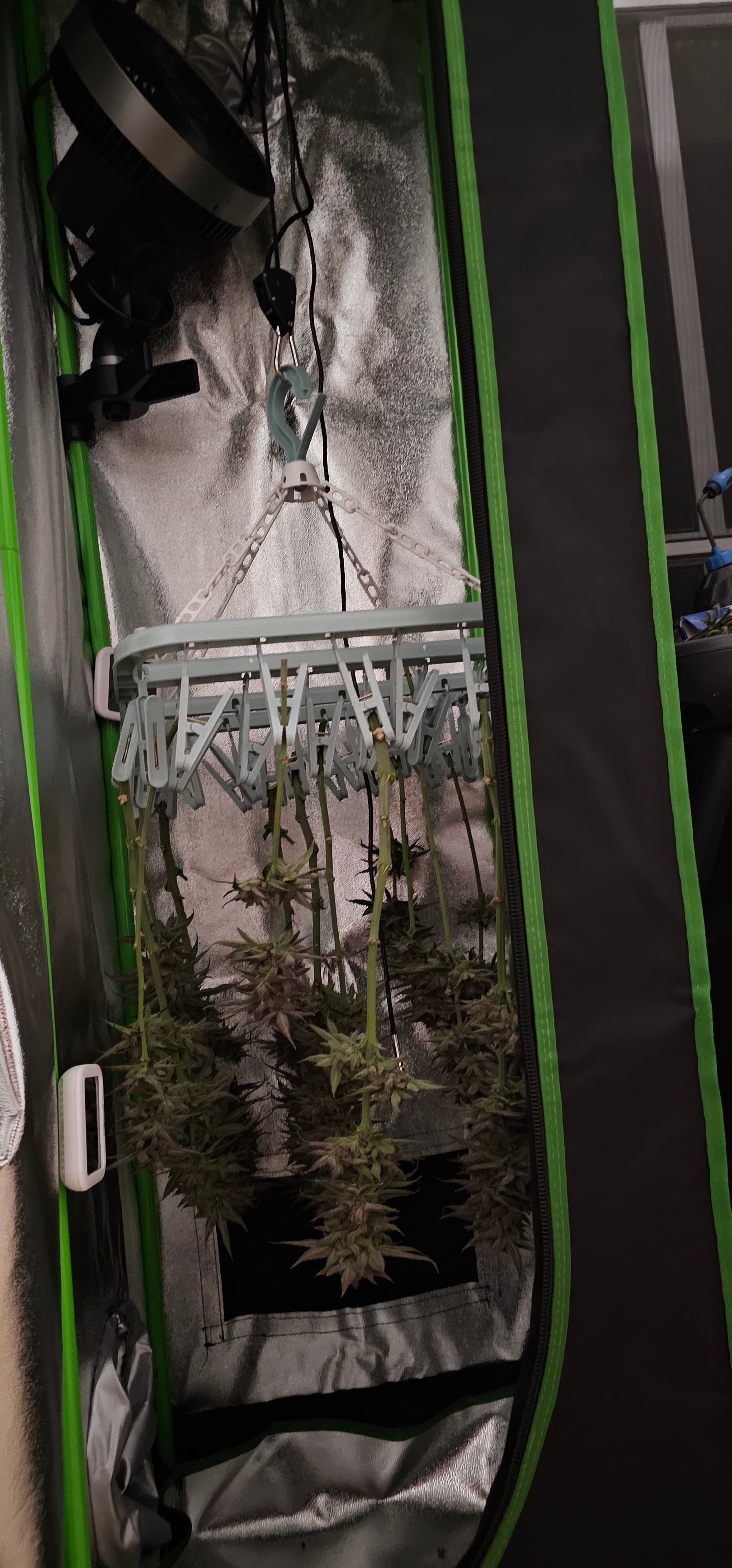 Im Trockenzelt schau ich jetzt das ich bei einer VPD von 0,8 bleibe und im Blütezelt VPD 1,4. Momentan steht der Befeuchter noch im grossen Zelt, mal schauen der kommt noch per Schlauch ins Trockenzelt. Damit die Watermelon jetzt nicht so schnell trocknet, woe die Queen.