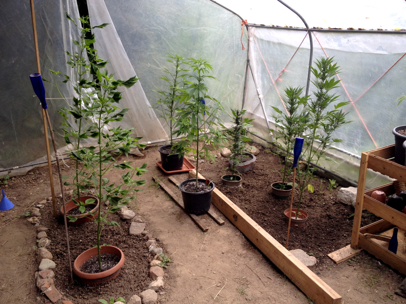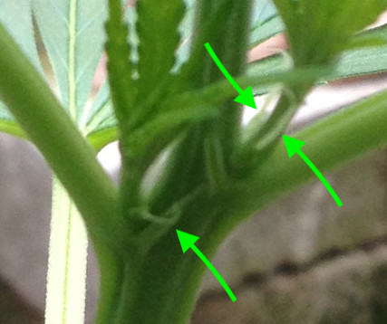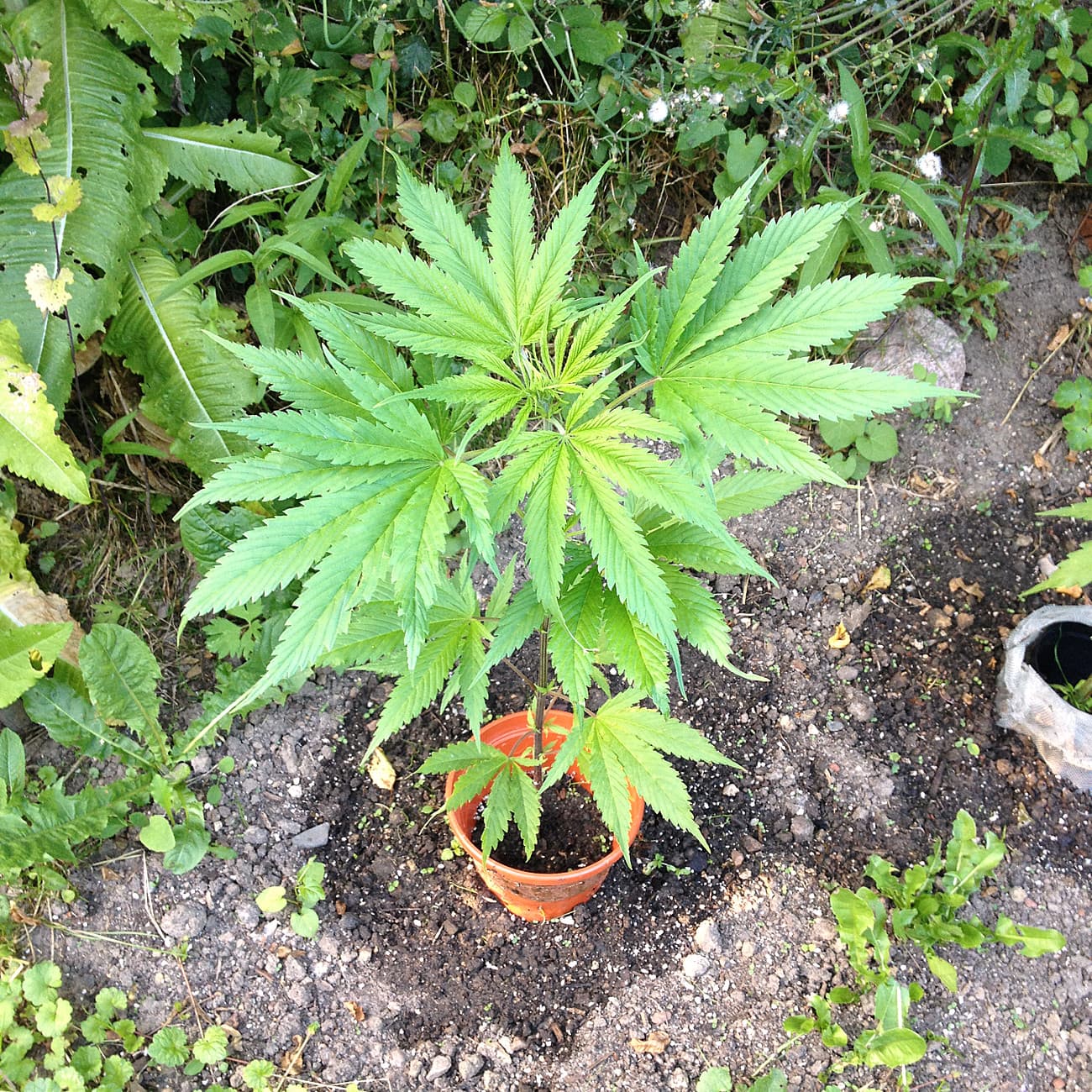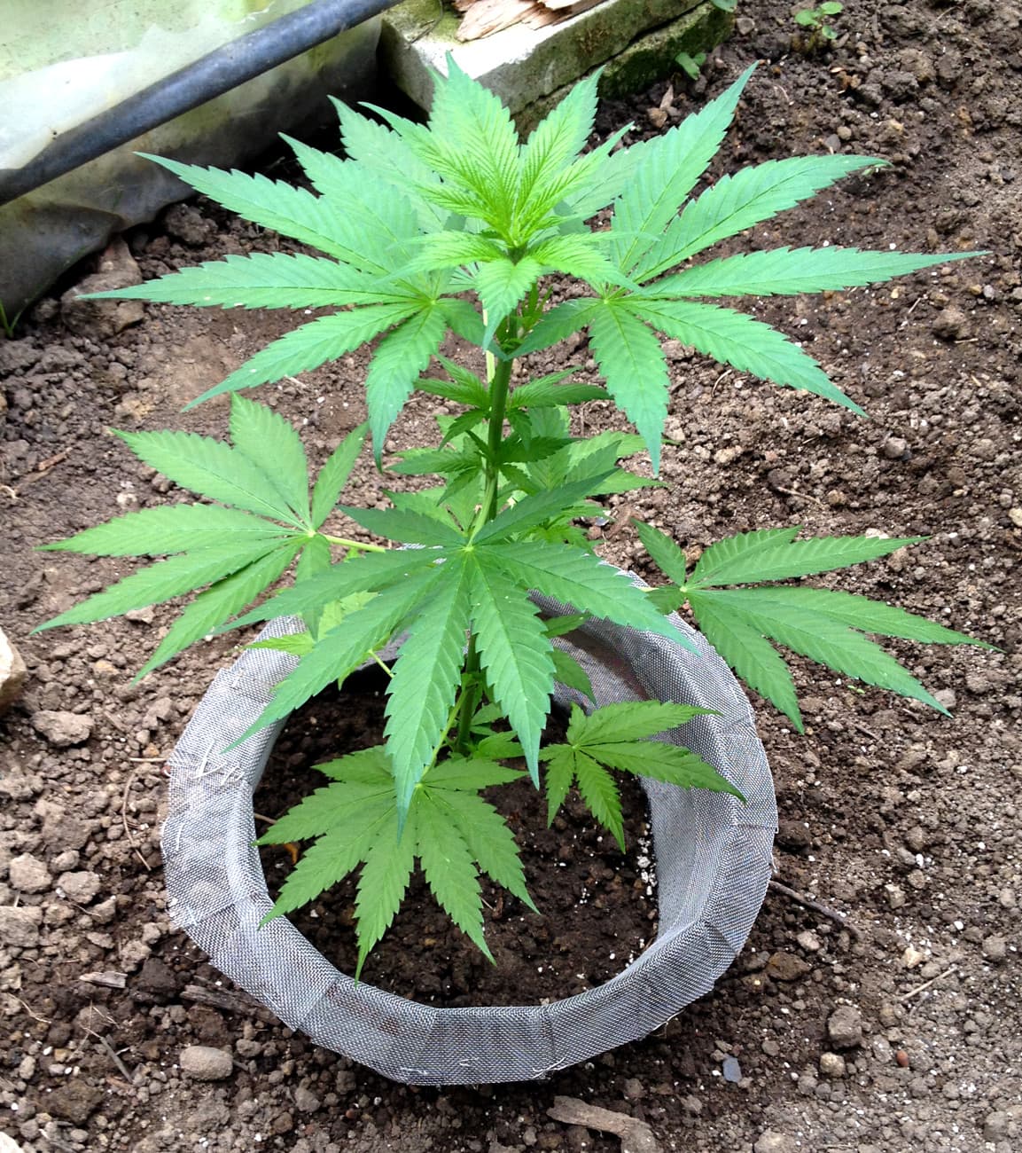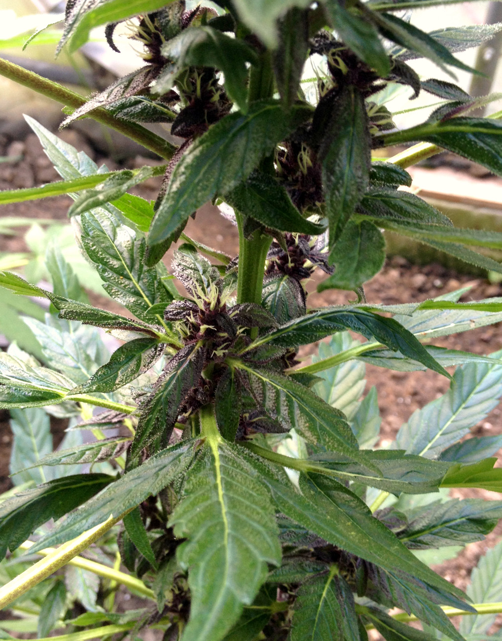 Bis dahin betrachte ich sie als zwitterndes Weibchen. Ich hab sie jetzt zwischen die beiden Freiland-Acker gestellt, dort sind alle Pflanzen noch unentschieden ⊠aber sie brauchte Sonne, hinterm Haus hat sie zuwenig gekriegt, jetzt mangelt sie etwas. ZusÀtzlich habe ich sie wie gesagt getoppt, und hab noch die gelben BlÀtter untenrum entfernt.