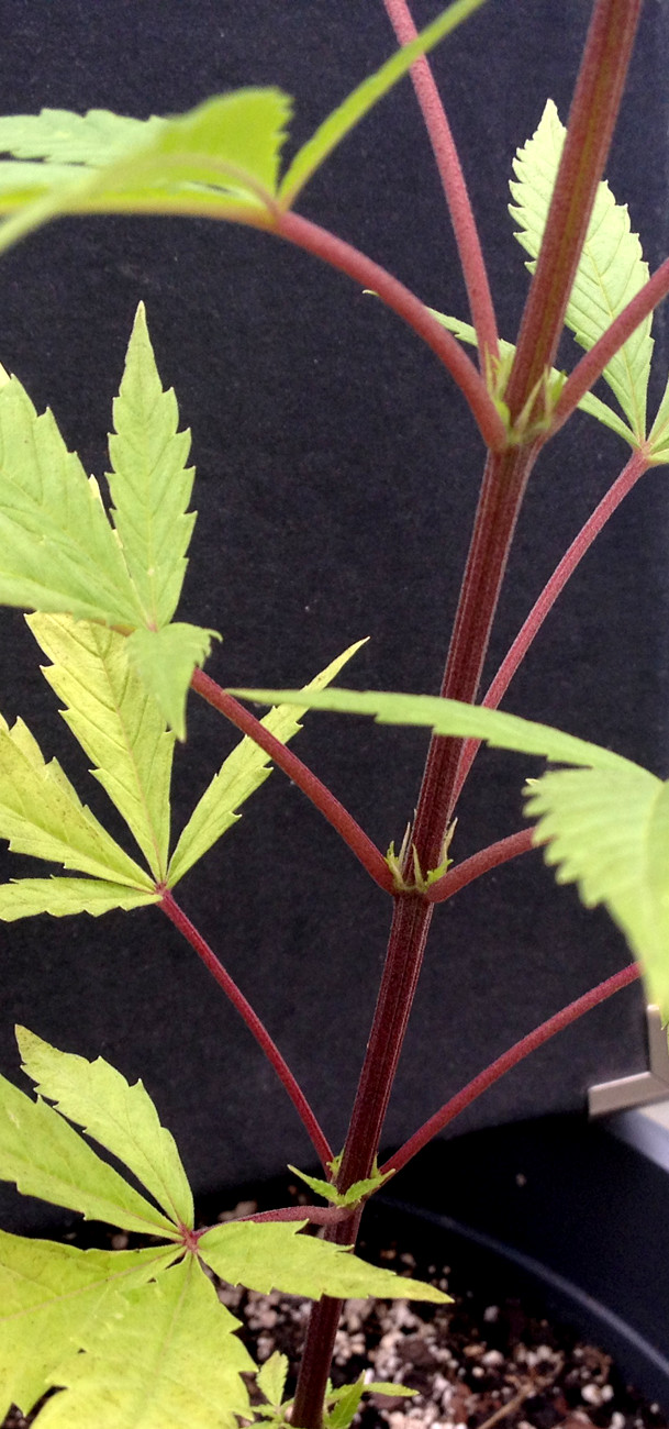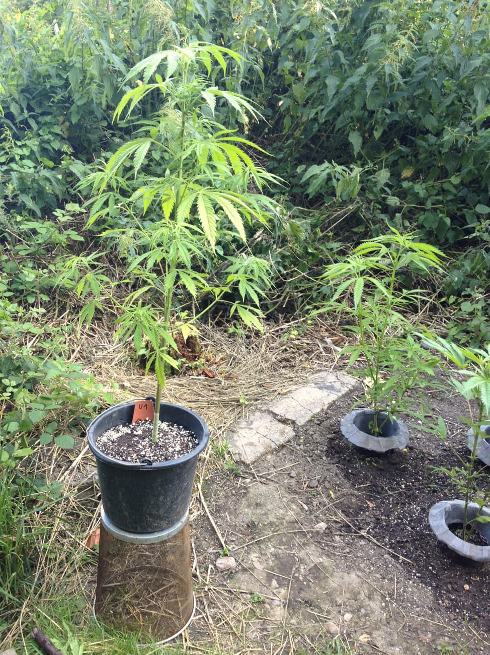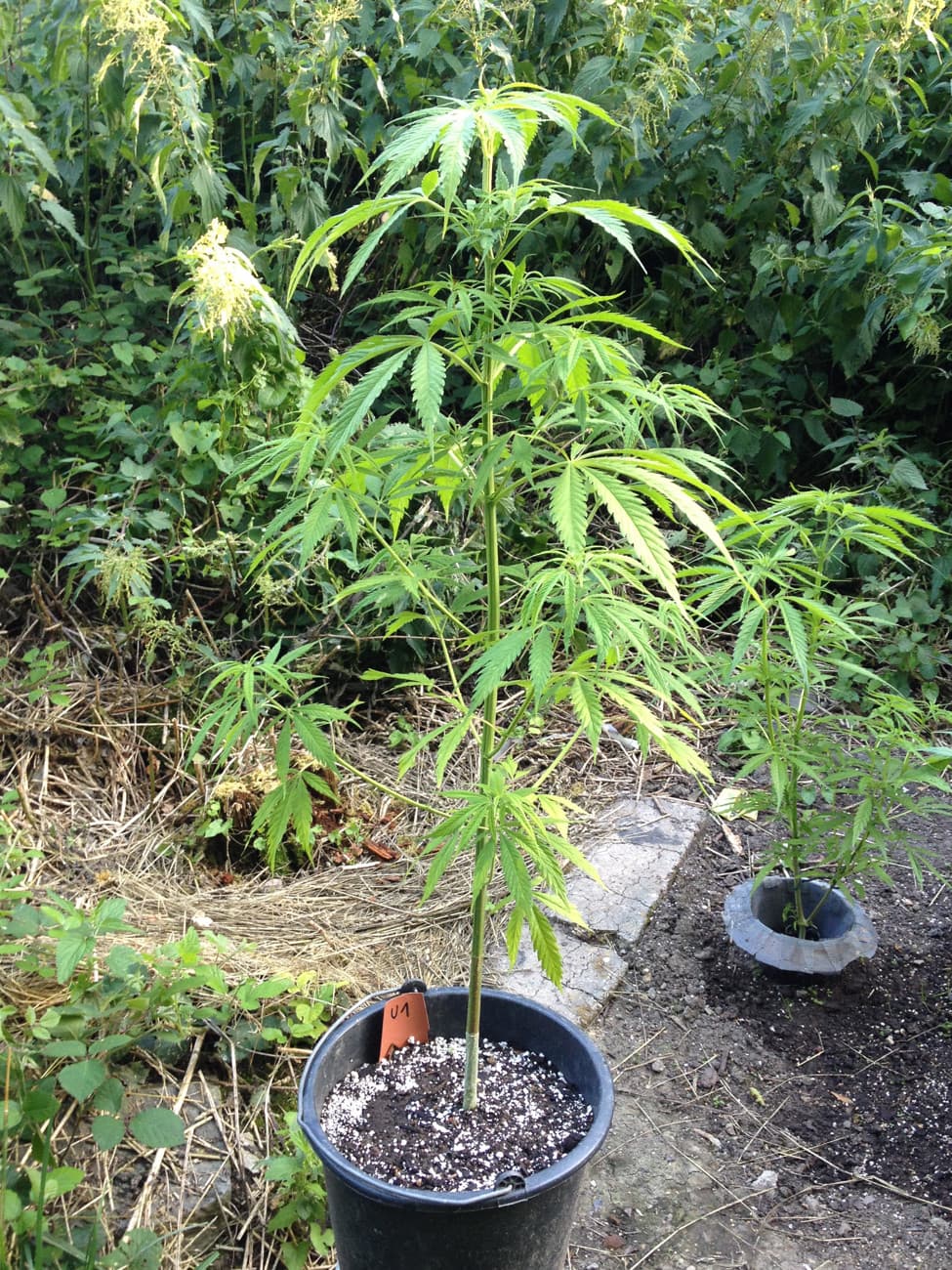 AuĂerdem gab es fĂŒr alle 3 Eimerpflanzen (U1-3, 11 Liter) eine standesgemĂ€Ăe, langsame GieĂung mit nem ordentlichen Schuss Brennesseljauche. Die anderen beiden haben auch helle BlĂ€tter untenrum (heute keine Fotos).