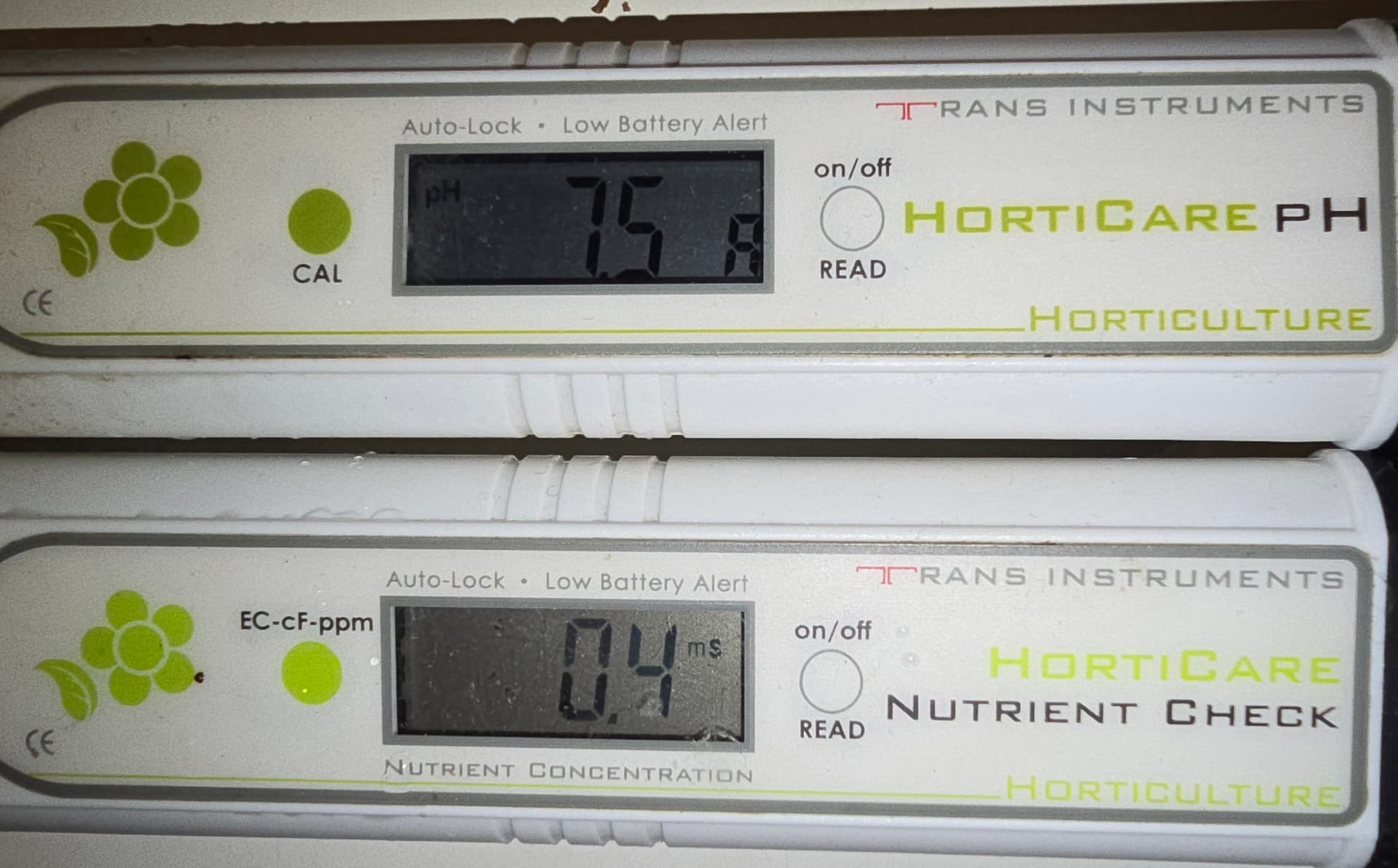 - Wasserwerte/Leitung: pH 7,5 EC 0,4