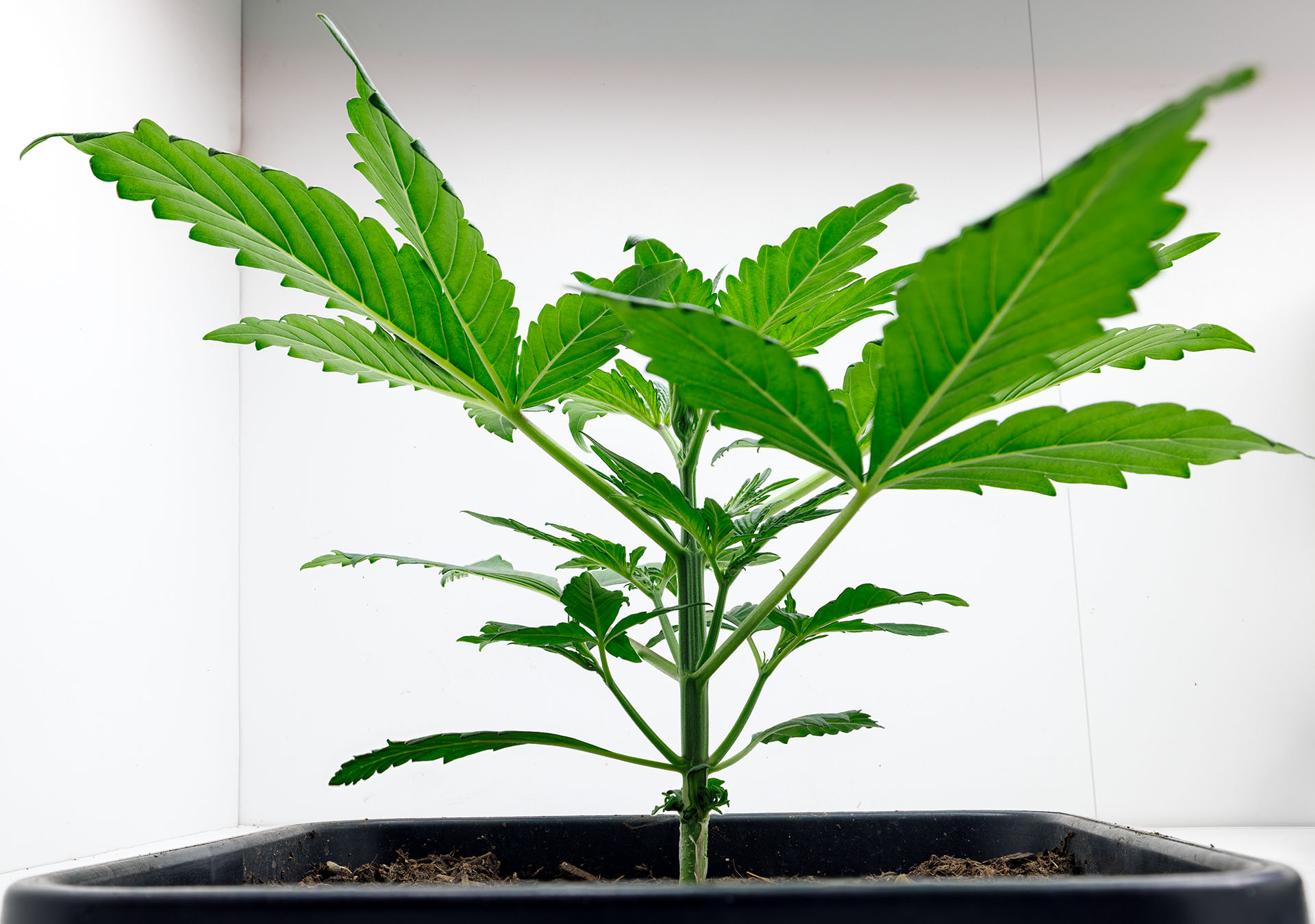 Dünger: Ersteinmal garkeinen. Die Erde ist vorgedüngt. Ich werde so ab der 4. Woche den EC-Wert im Drain messen und ggf. langsam mit der Düngerzugabe beginnen. (Spätestens mit einsetzen der Blüte)